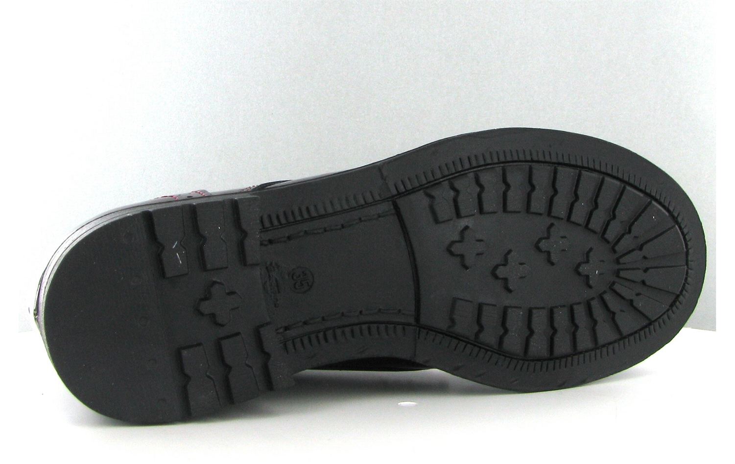 Première de propreté en cuir et semelle extérieure en elastomère.