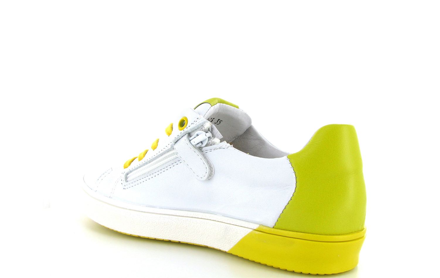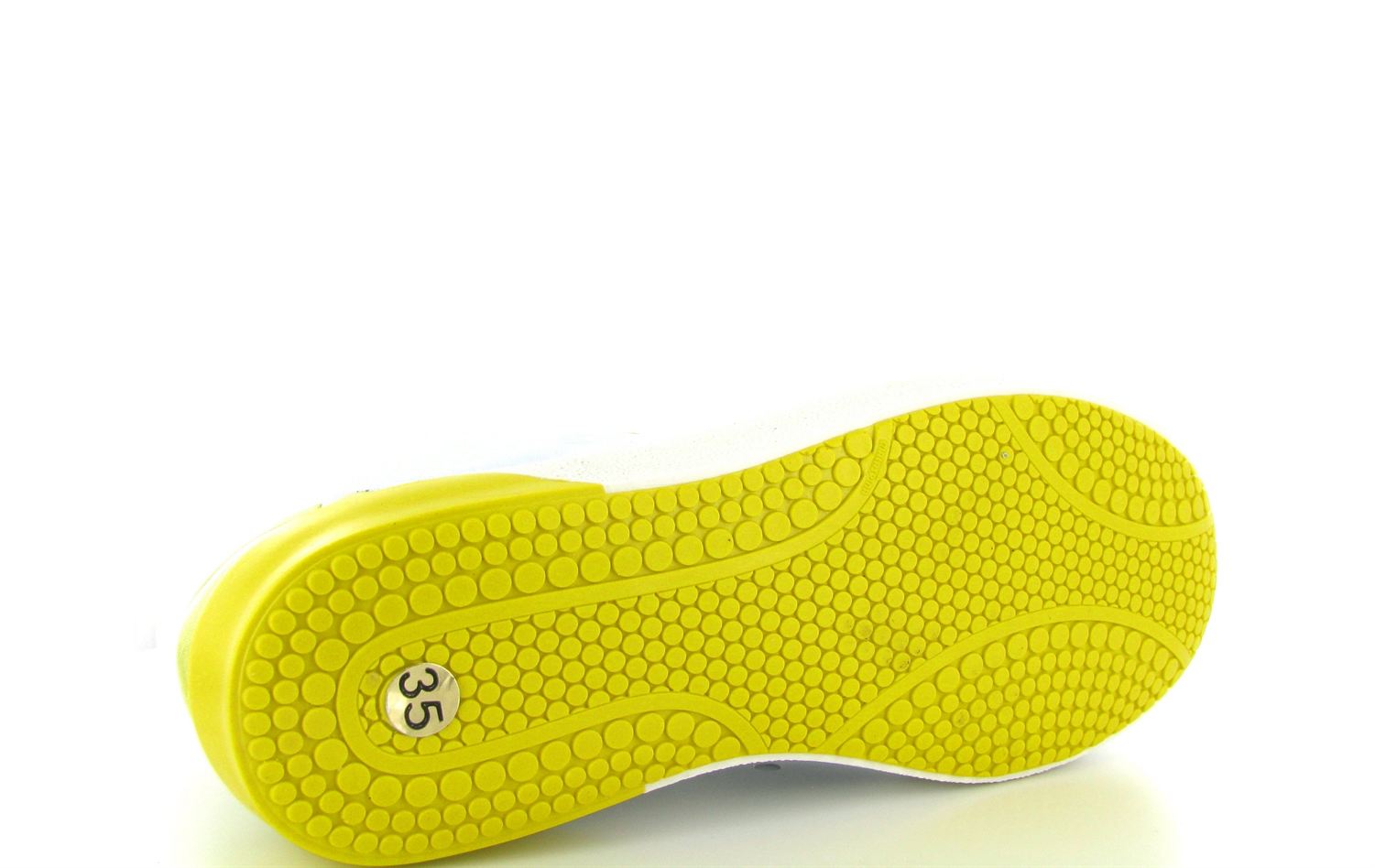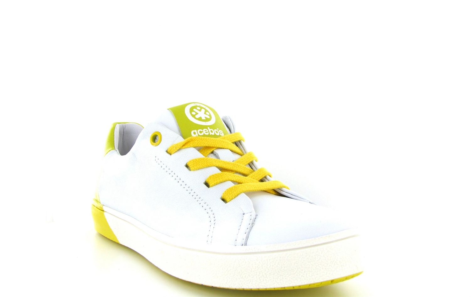 Sneakers garçon Acebos 9623 en cuir blanc parfait pour tous les jours. Avec sa semelle intérieure en cuir, ses lacets et son contrefort colorés, ce modèle est idéal pour bien commencer le printemps!!!