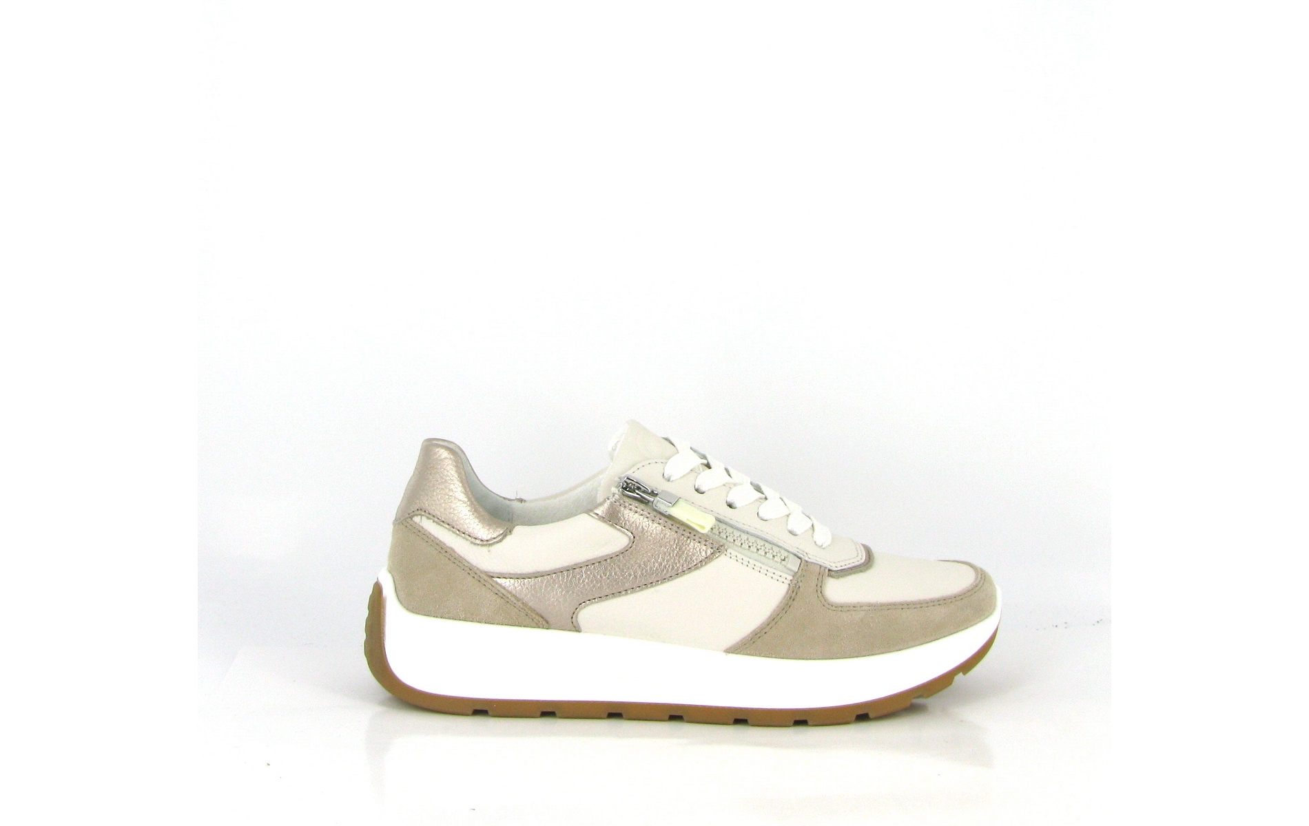 Rayon : FEMMECatégorie : CHAUSSURESFamille : TENNISType de Fermeture : ZIPChaussant : LARGEMatière : CuirCouleur : BeigeDoublure : TEXTILE+CUIRSemelle : ELASTOMERERéférence : E437401