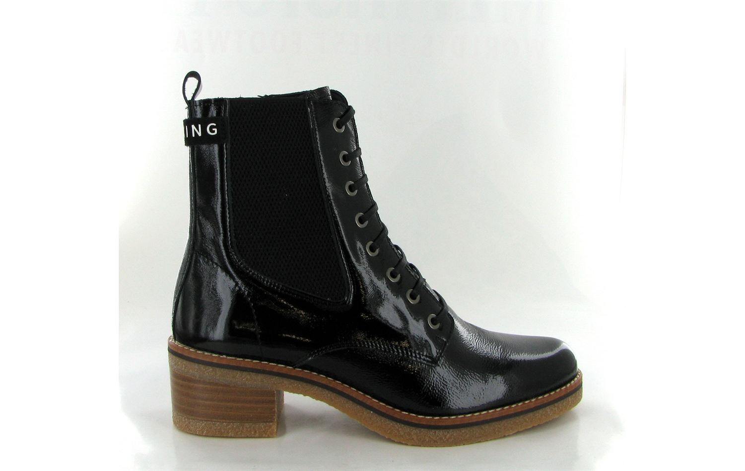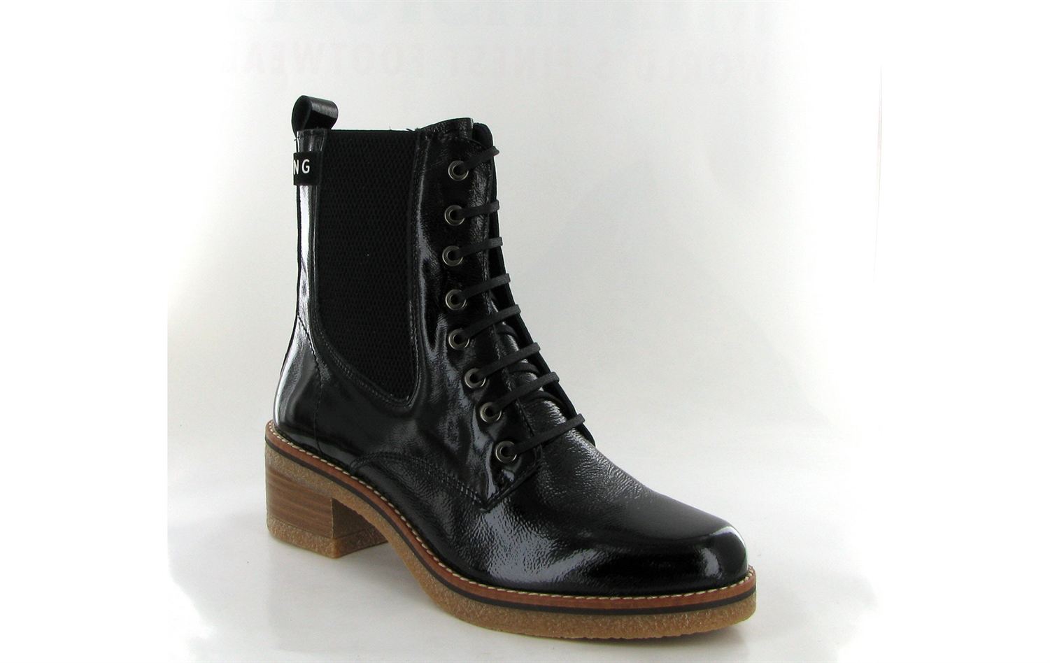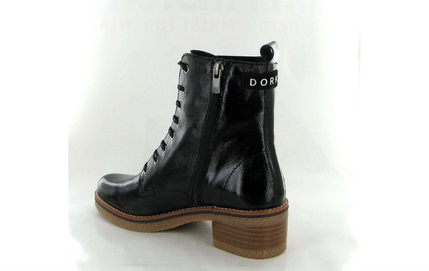 Bootine Dorking femme en cuir vernis noir avec talon découpé de 5 cm,