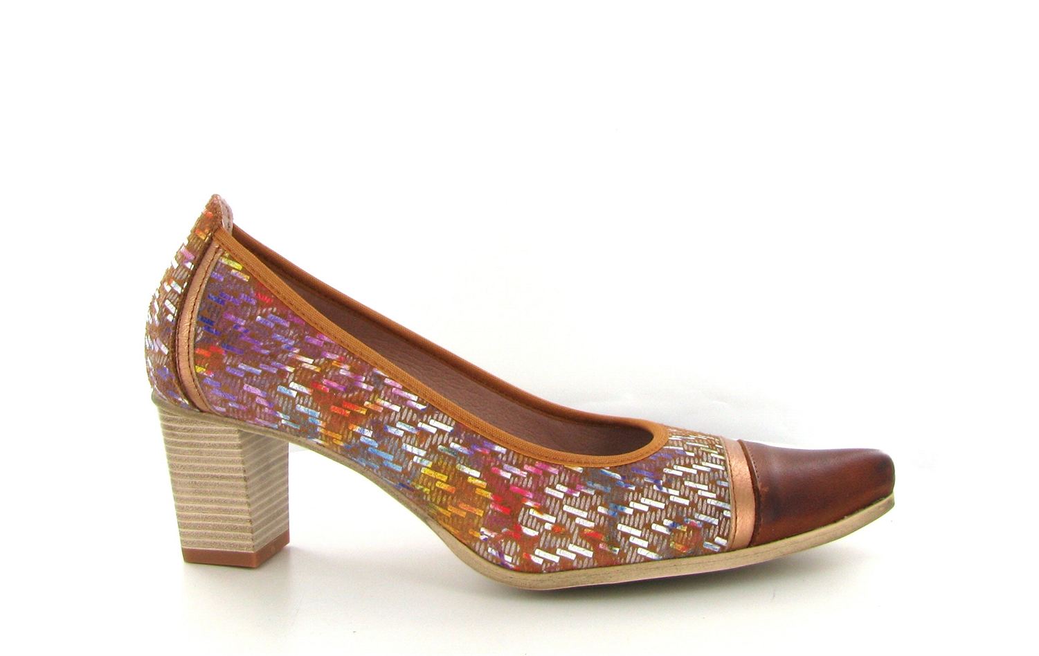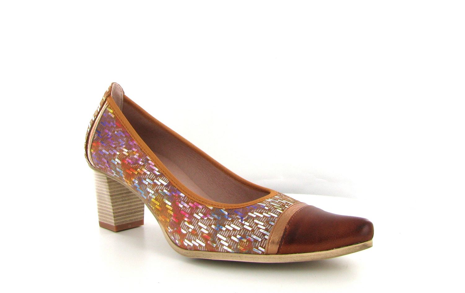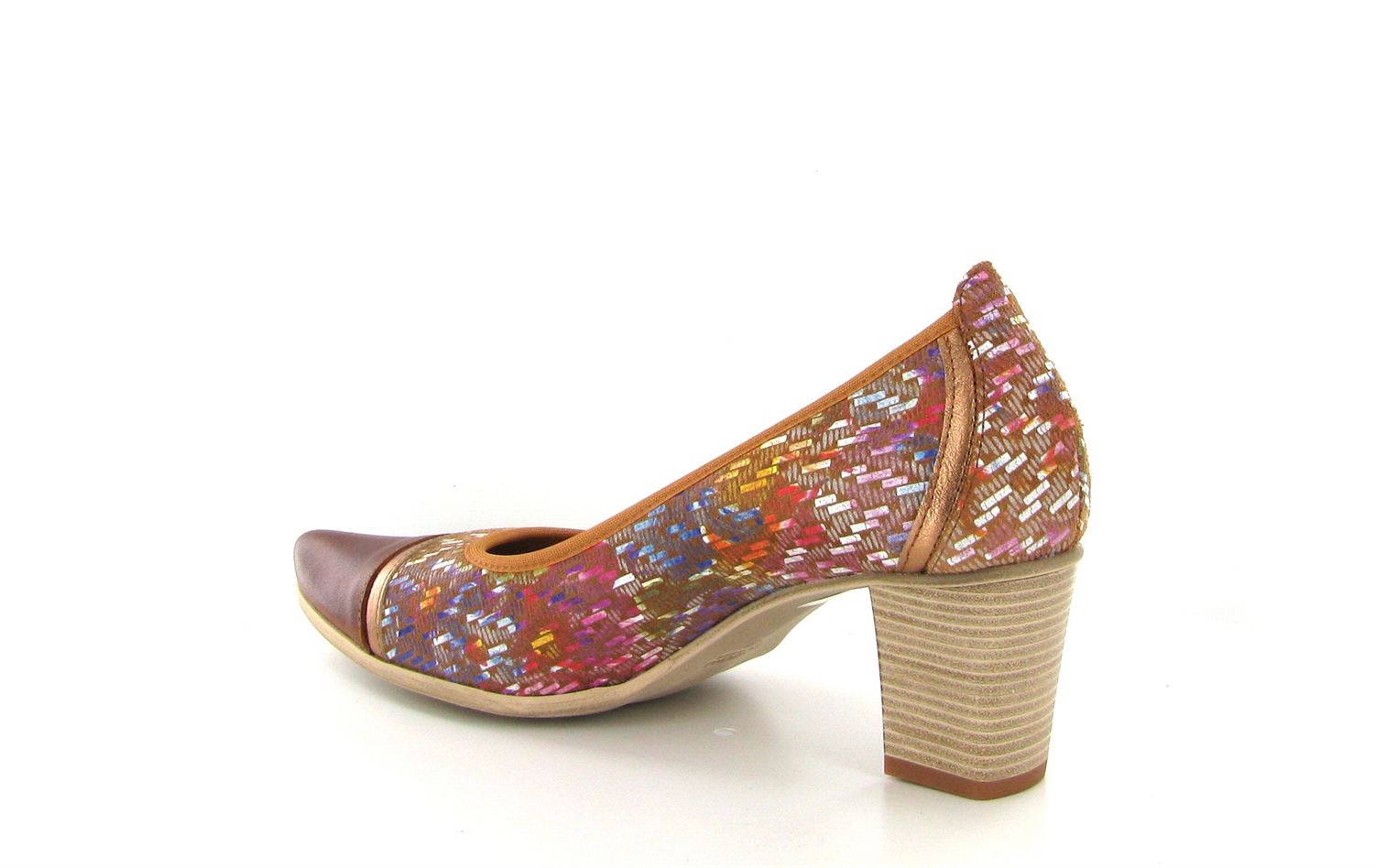 Escarpin femme en cuir et textile marron, sa doublure interieure est en microfibre anti-transpirante pour une hygiène parfaite du pied.