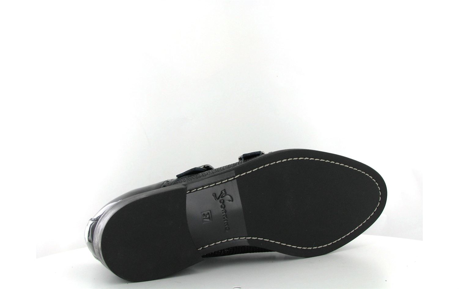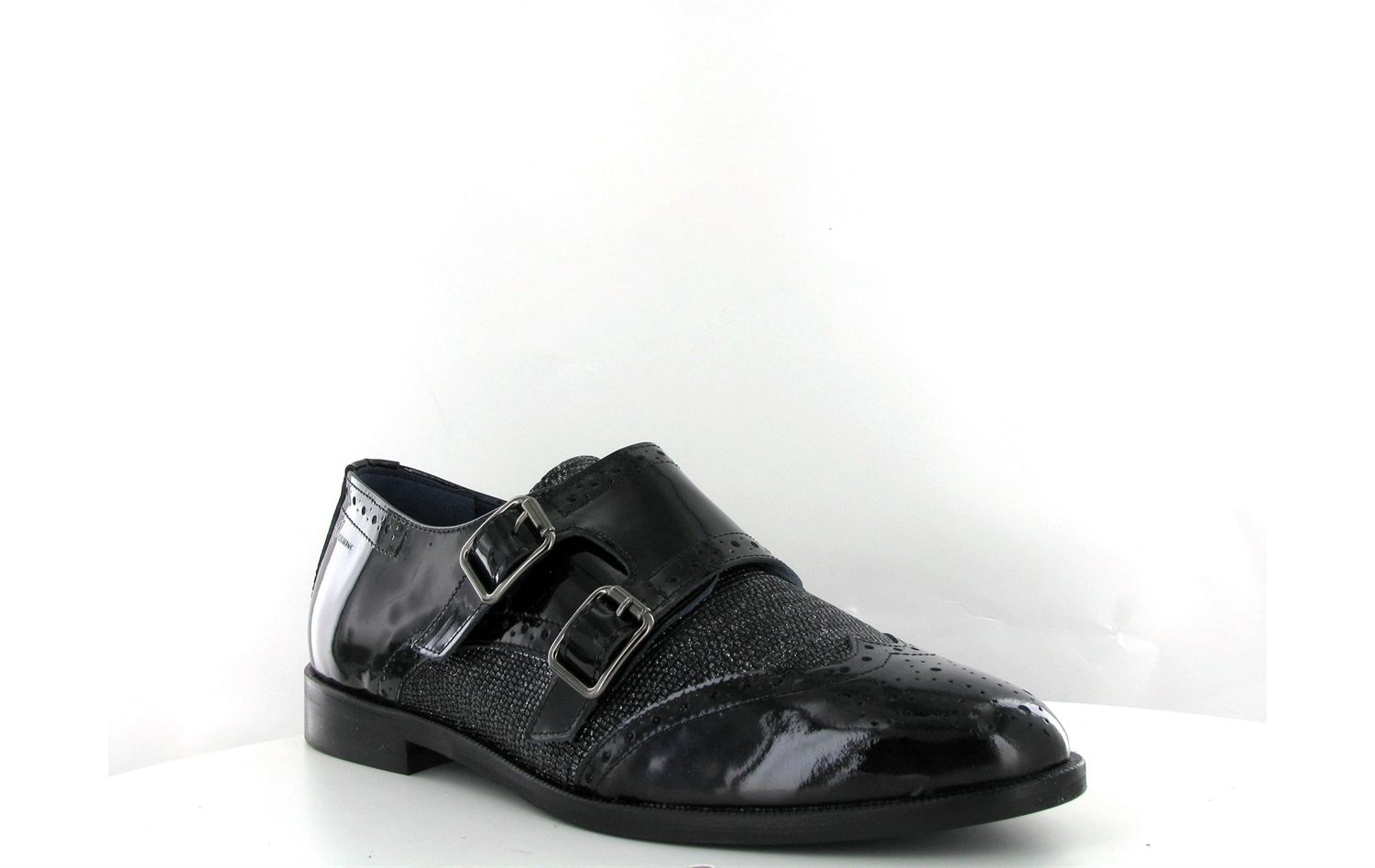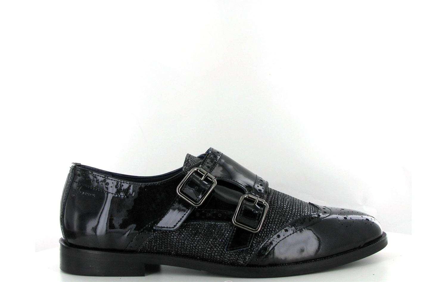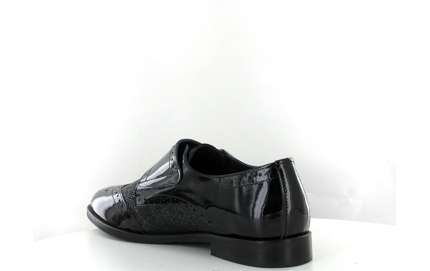 Mocassin à double brides vernis à très leger talon Dorking Raquel 6894 en cuir vernis noir