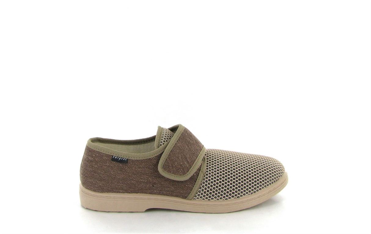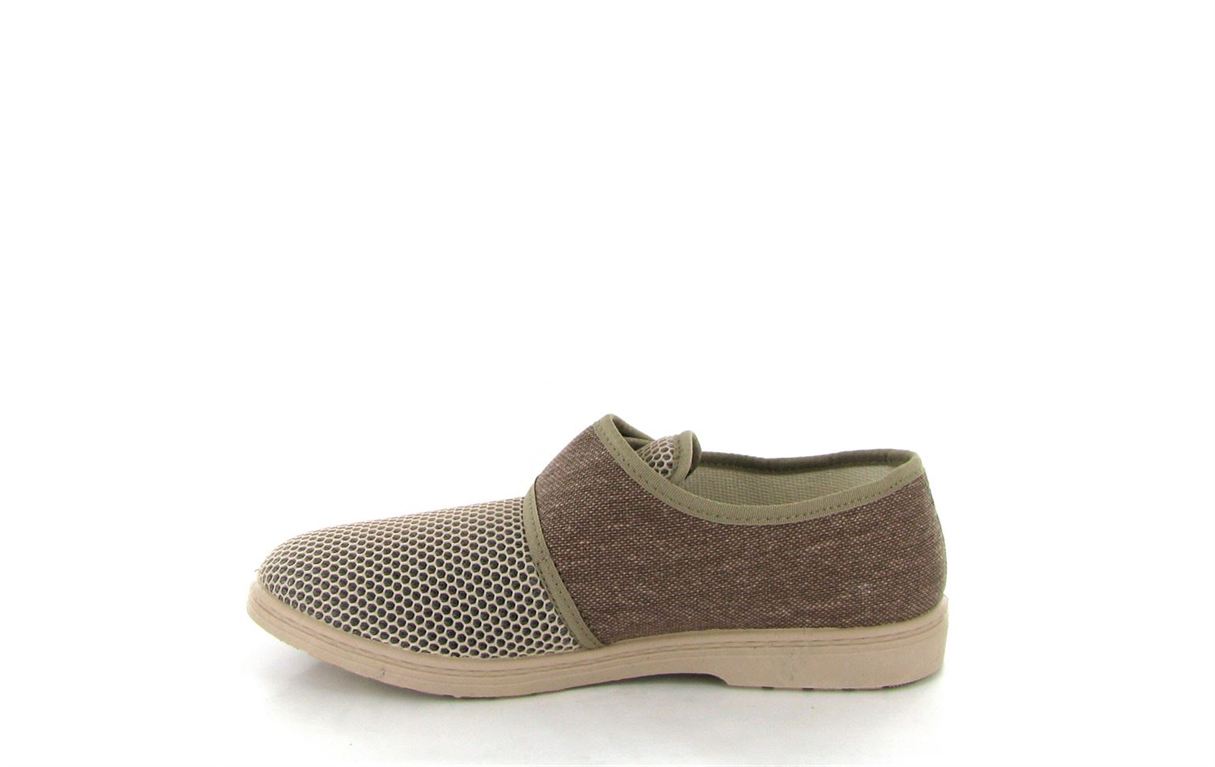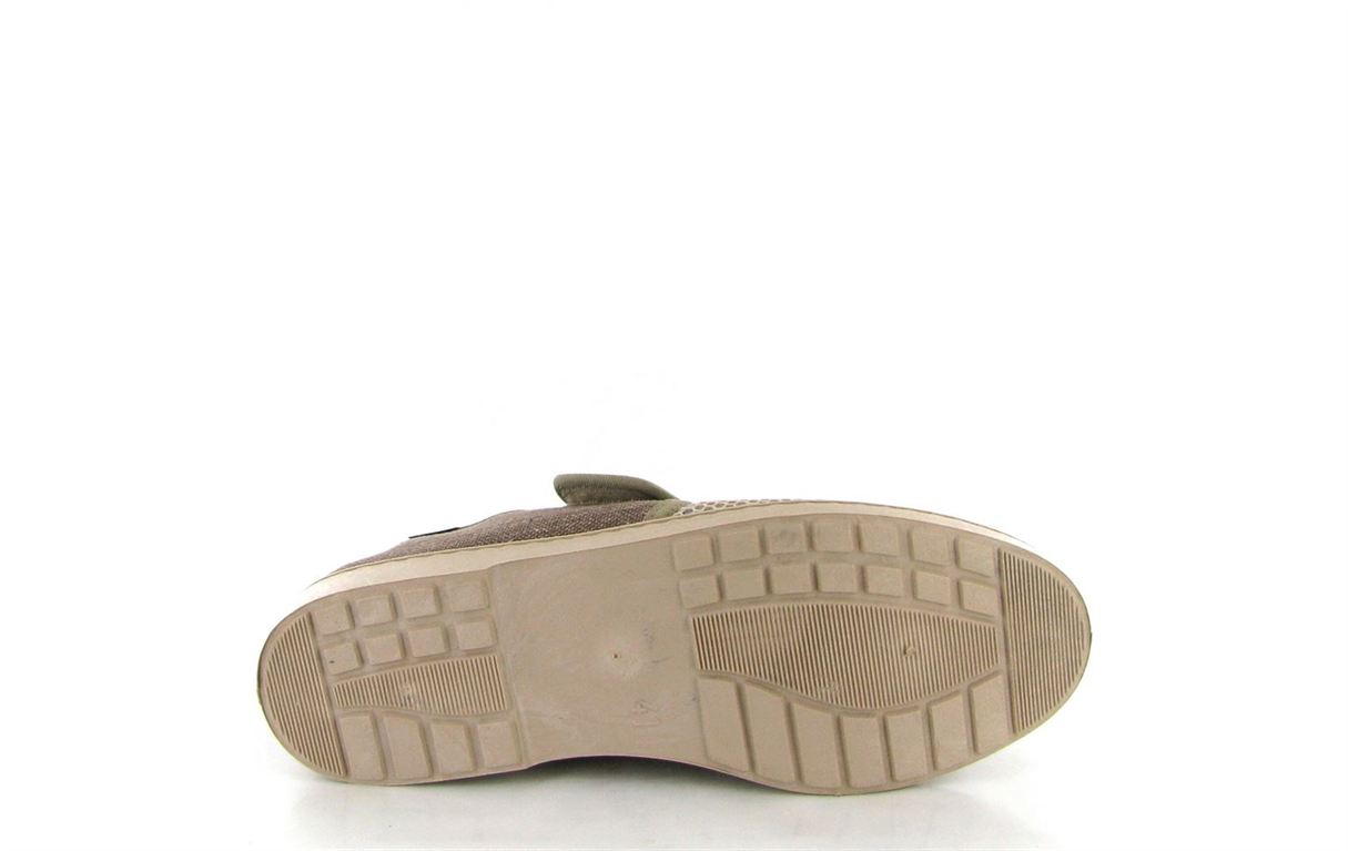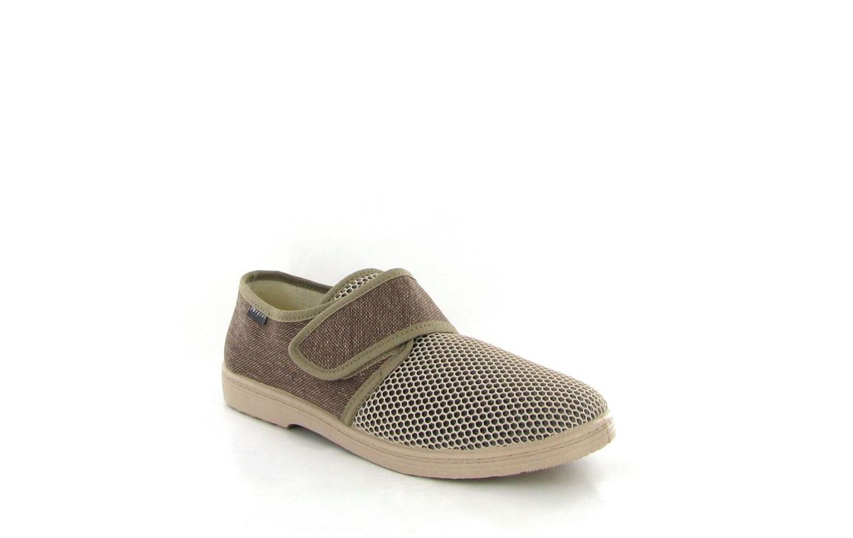 Grâce au système velcro, la chaussure s'ouvre très largement afin d'y glisser facilement le pied. Le tissu en fibre naturelle et aéré laisse votre pied respire