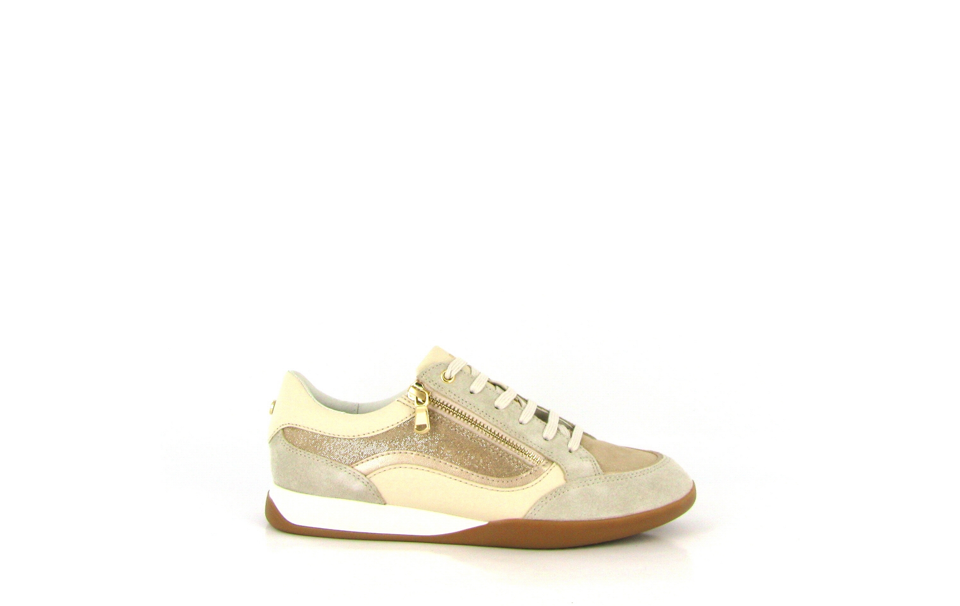 Votre tennis GEOX femme en cuir et textile beige vous accompagne au quotidien.