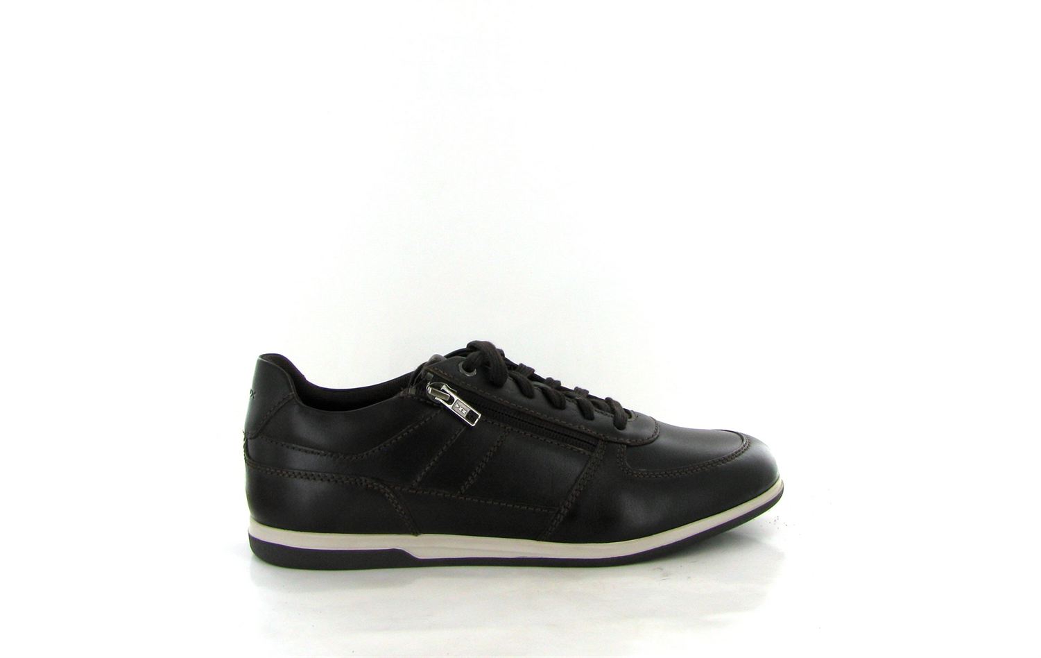- Tennis GEOX homme en cuir et tissu marron foncé,
