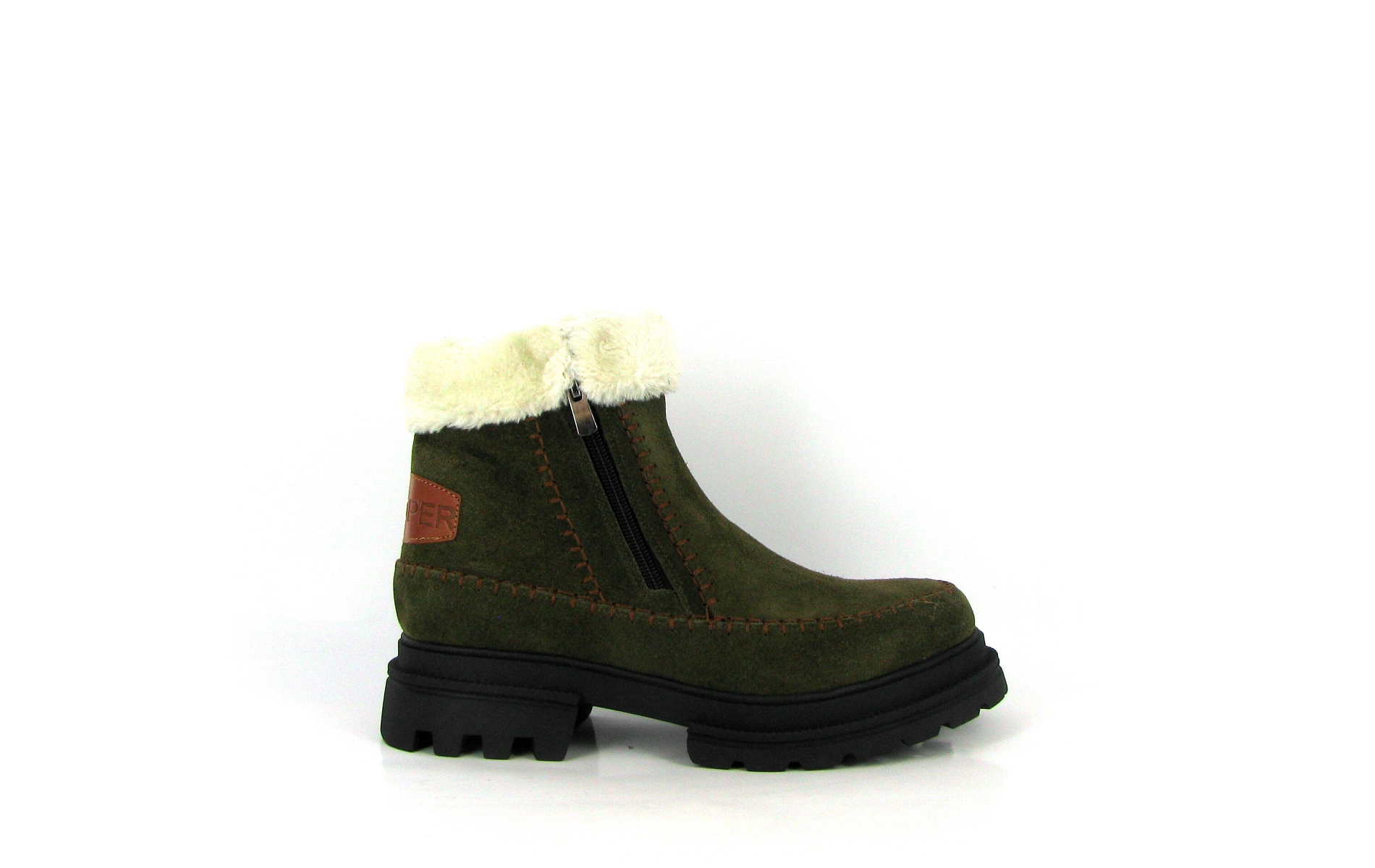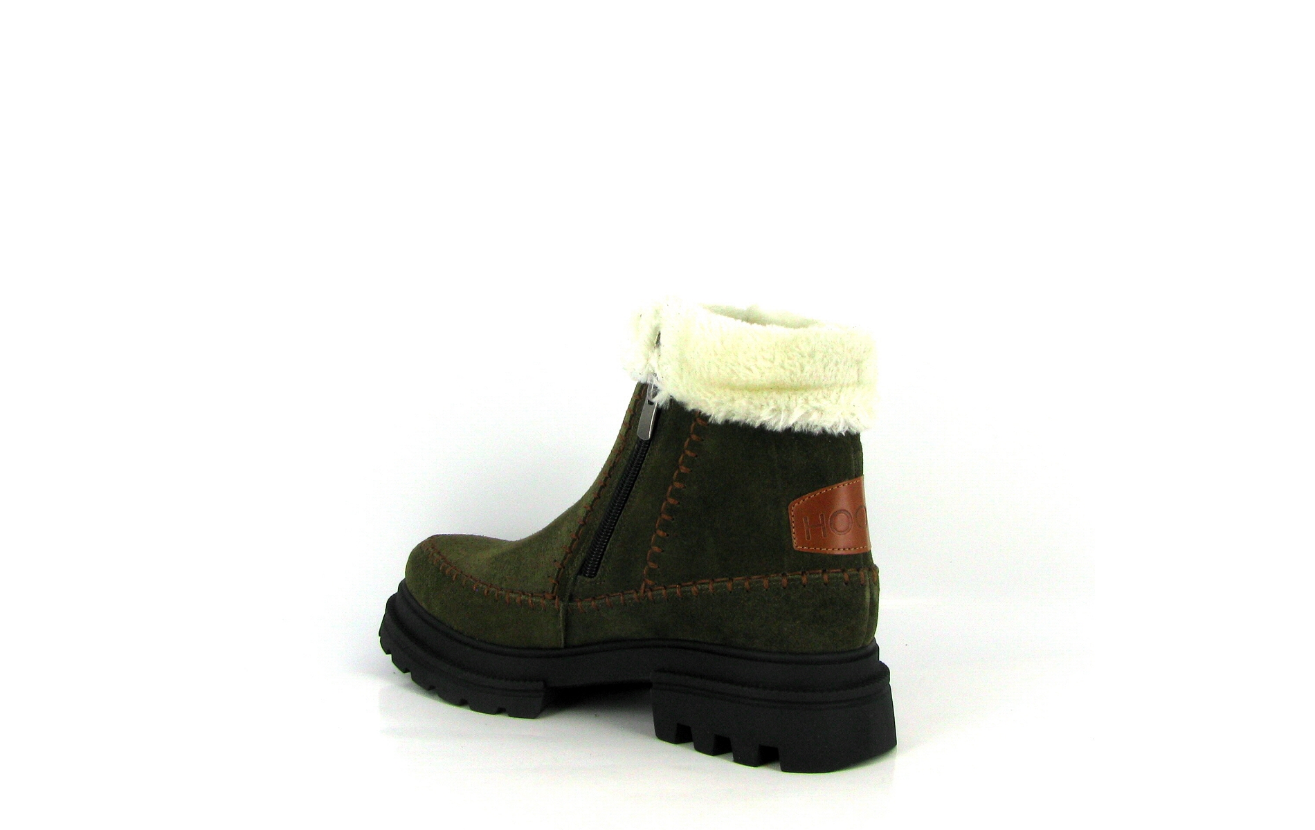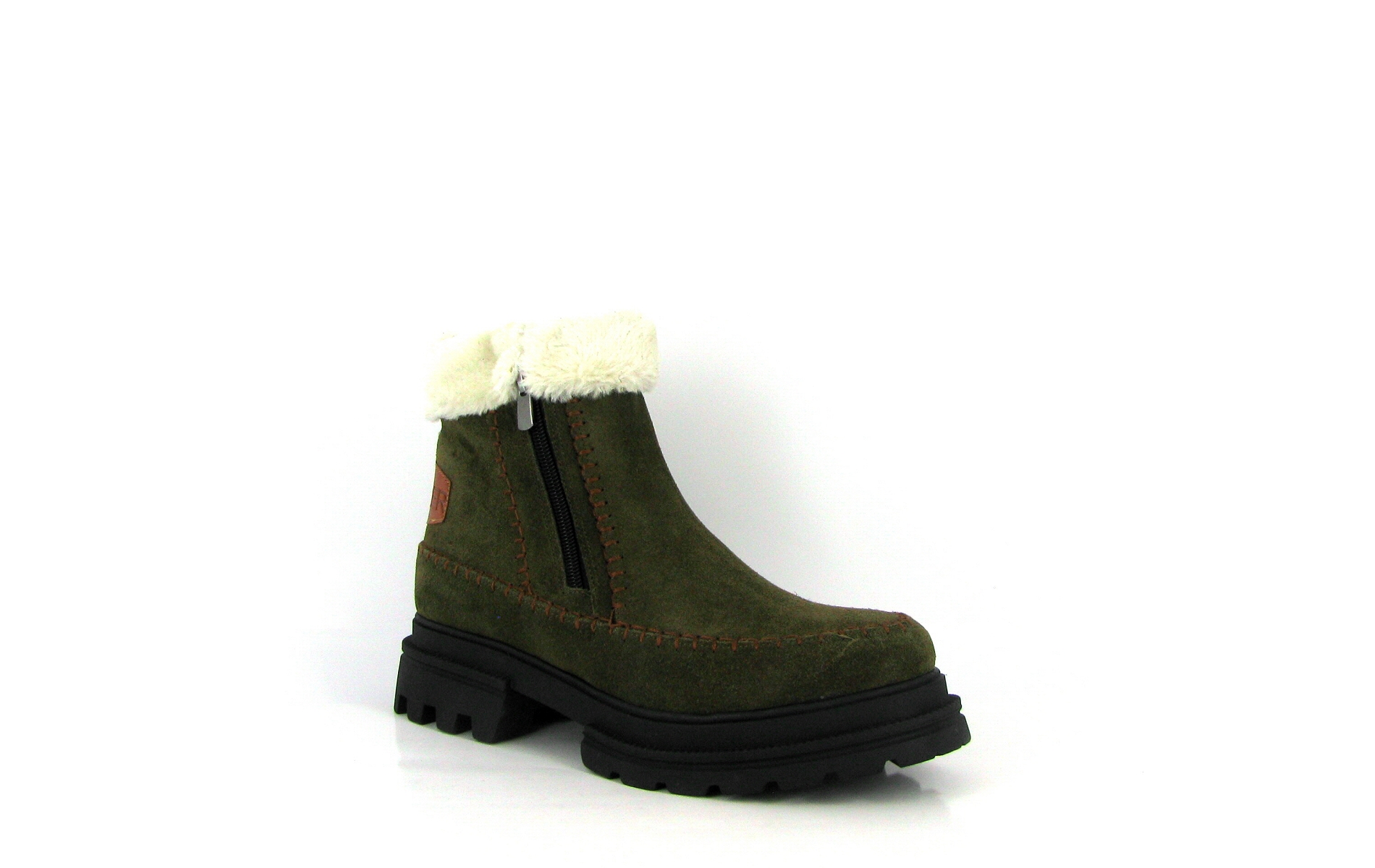 - Bottine femme en cuir nubuck kaki,