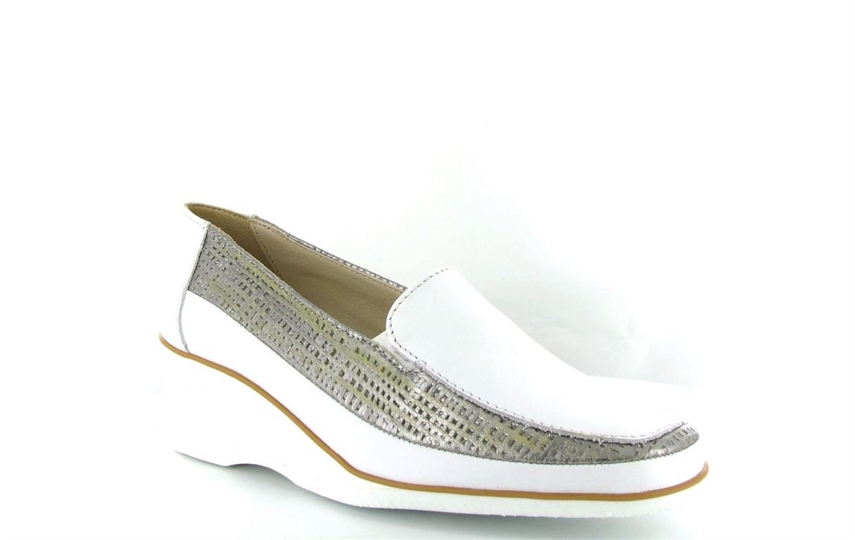 Mocassins compensé Sophora blanc en cuir souple pour femme par Marco.