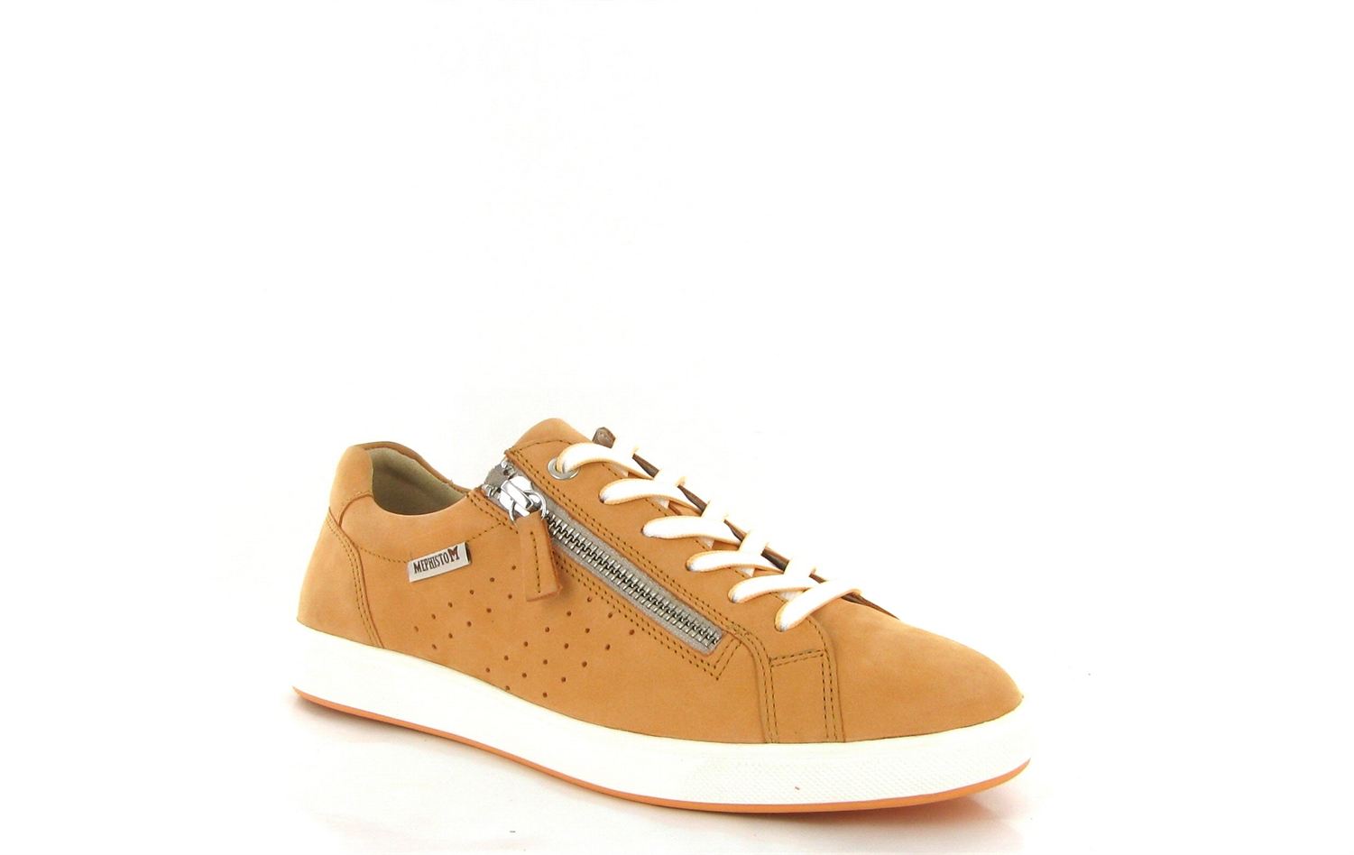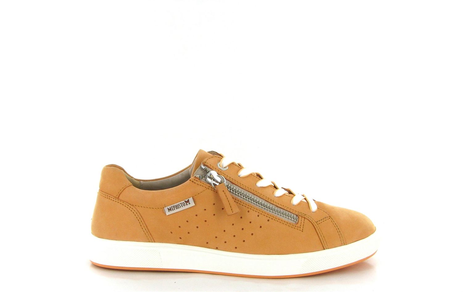 Votre Mephisto tennis femme en nubuck jaune ajustable avec un lacet et une fermeture éclair vous acompagnera au quotidien.