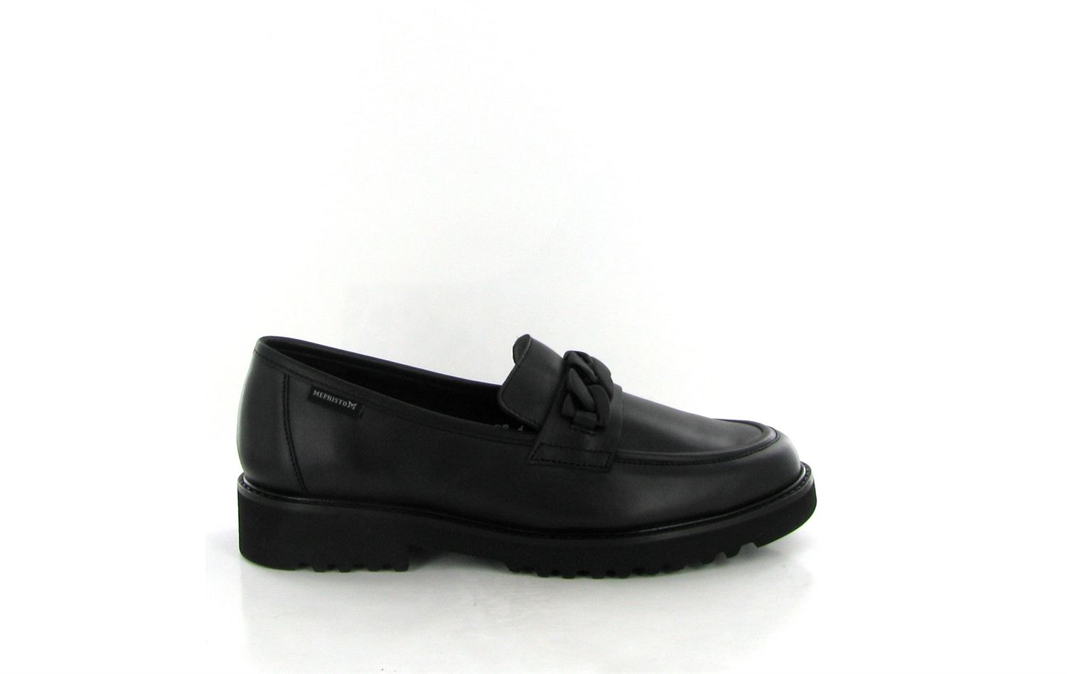 Votre Mephisto mocassin femme en cuir lisse noir.