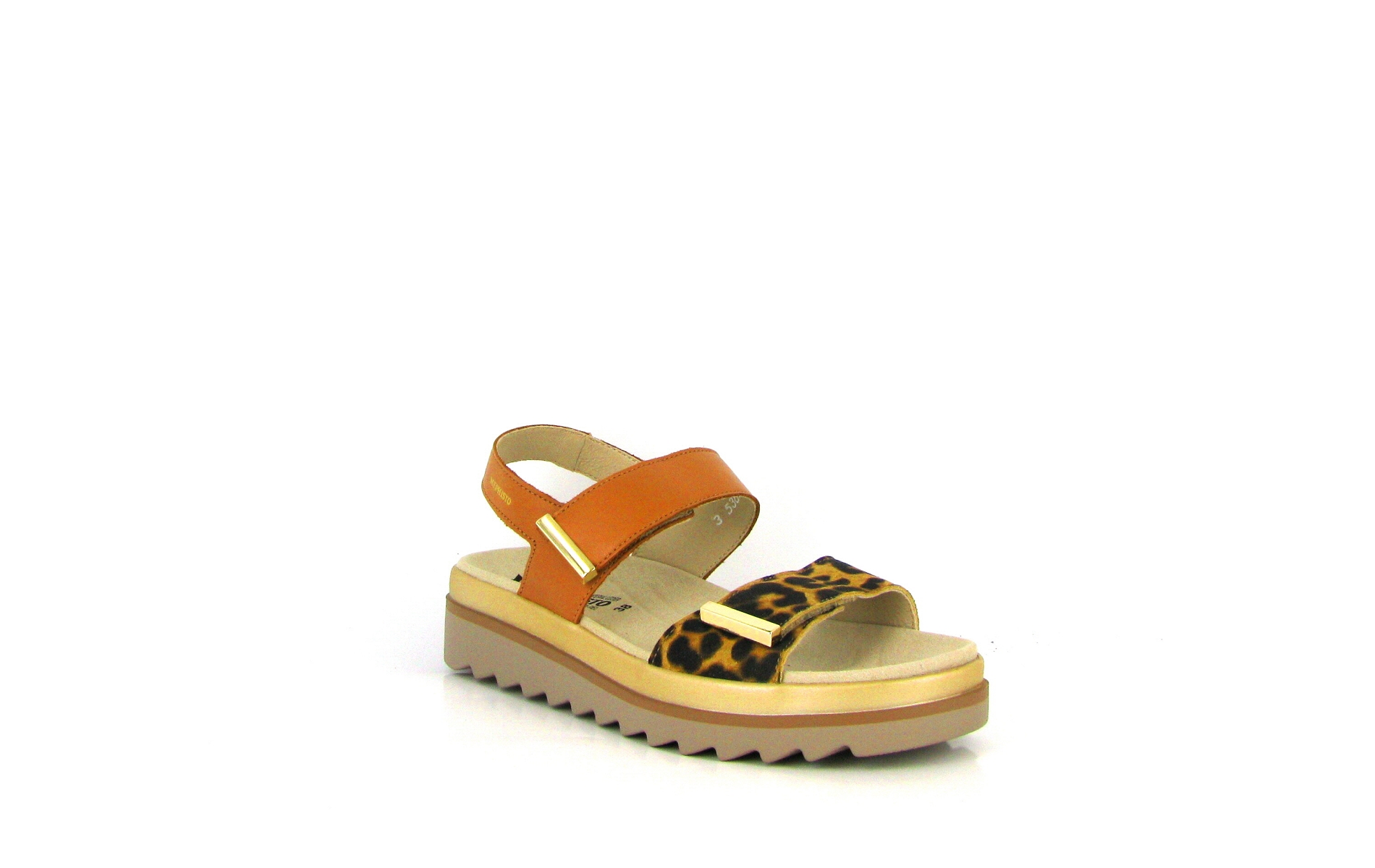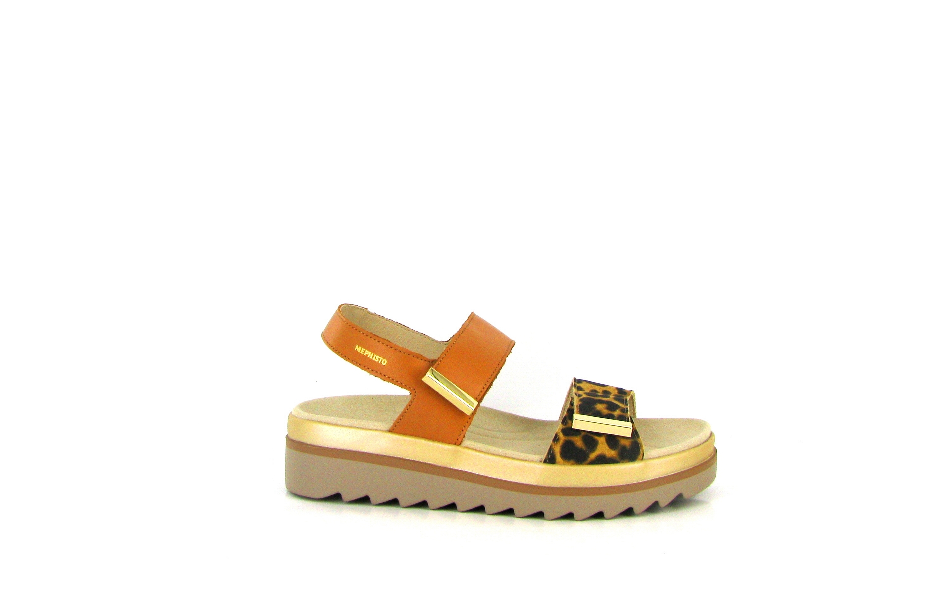 Votre Mephisto nu-pieds femme en cuir leopard disposant de deux velcros ajustables, vous accompagne au quotidien.