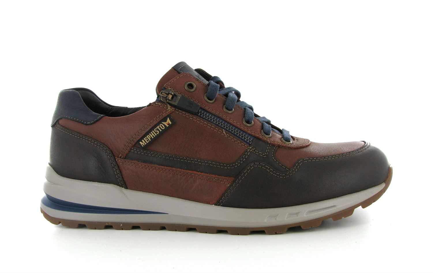 Votre Mephisto tennis homme en cuir marron ajustable avec un lacet et une fermeture éclair.