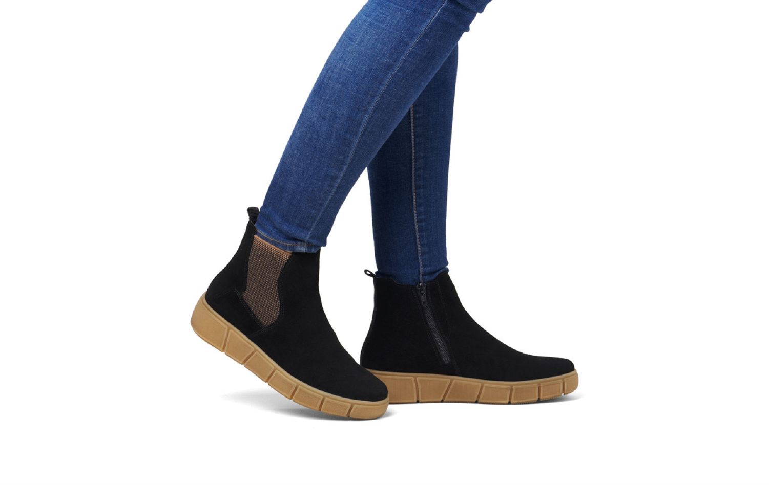 Ce modèle de bottine Remonte est doté d'une semelle amovible soft et d'une doublure velour peluche.