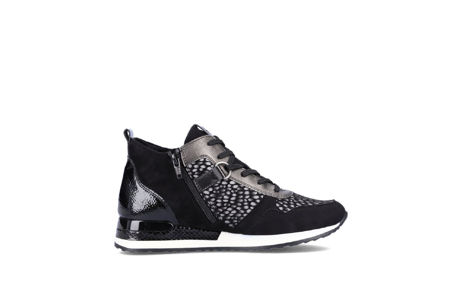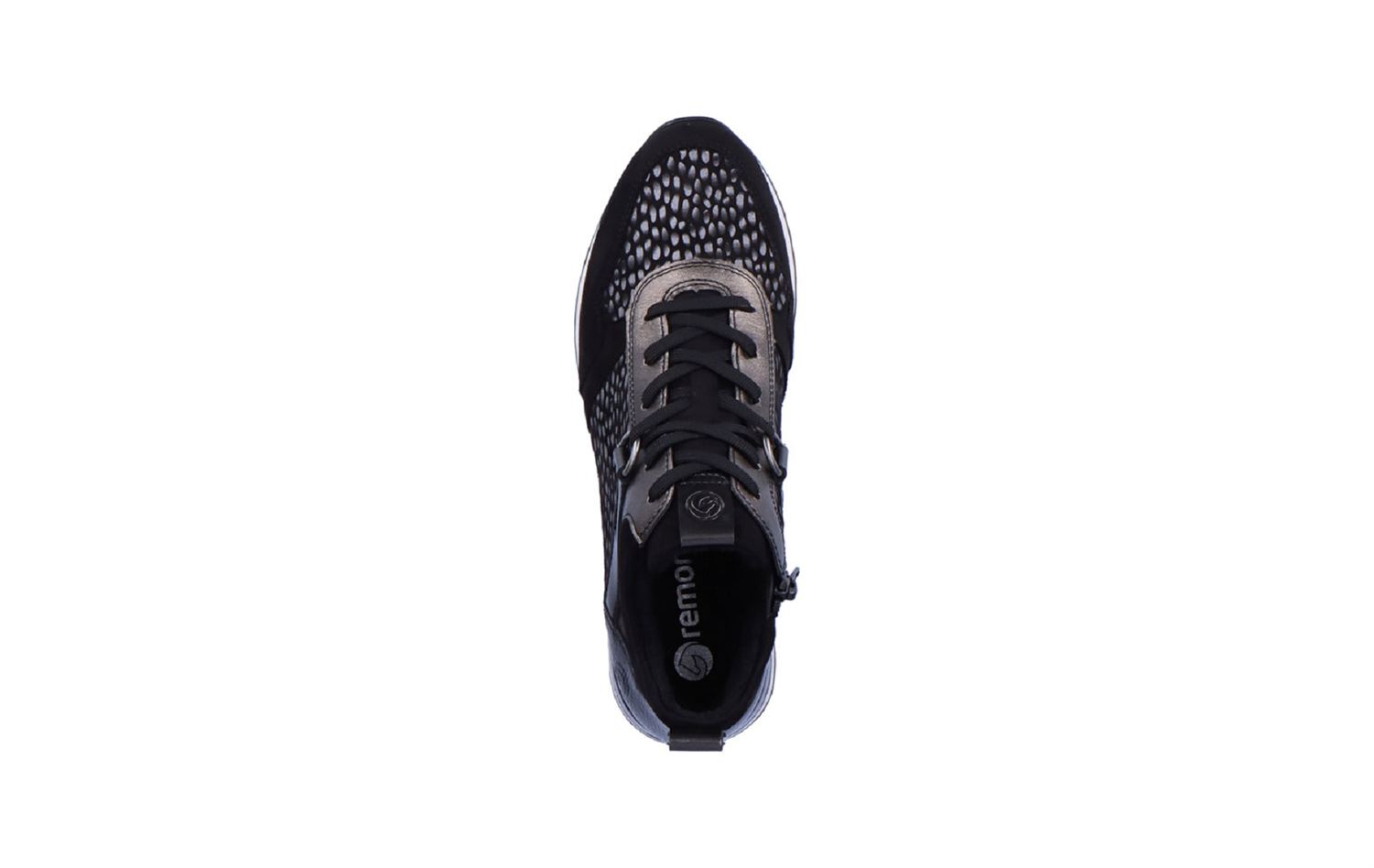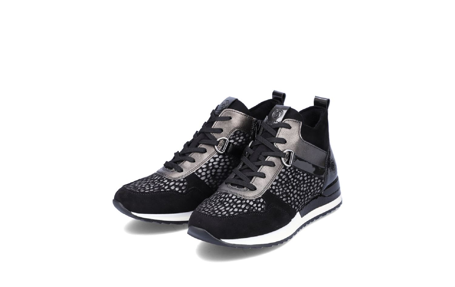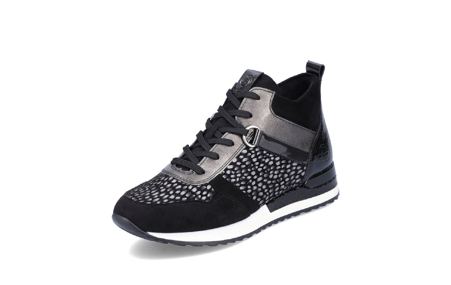 Remonte R2574 03 est une tennis montante femme en textile noir et gris.