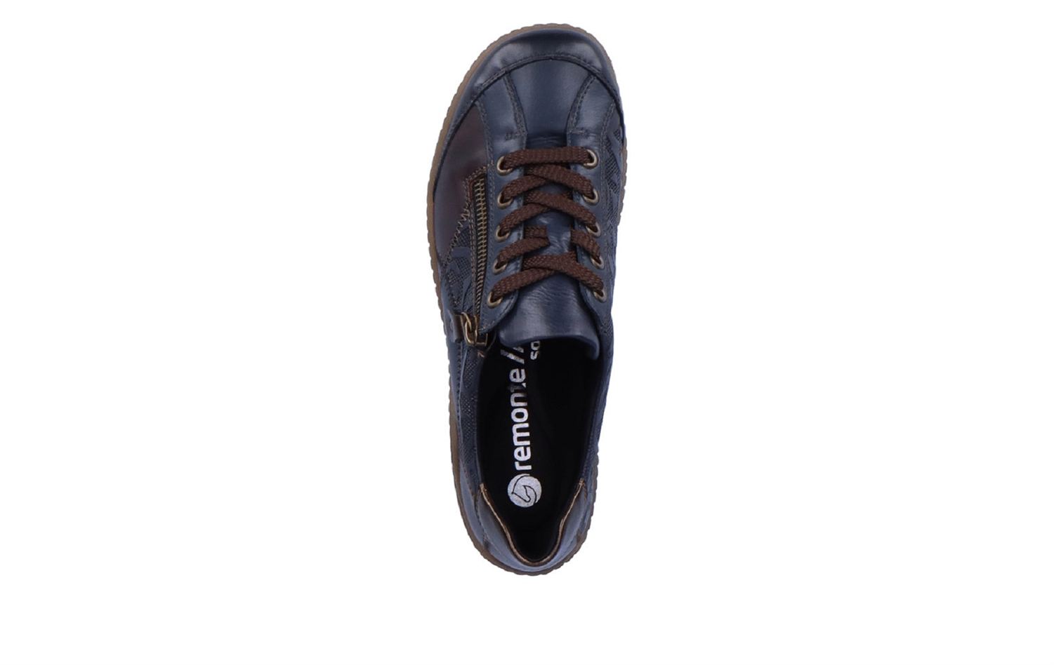 Remonte R1430 14 est une tennis femme en cuir et textile bleu.