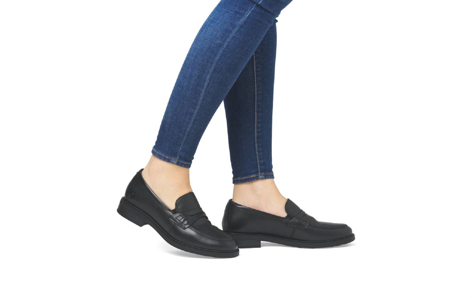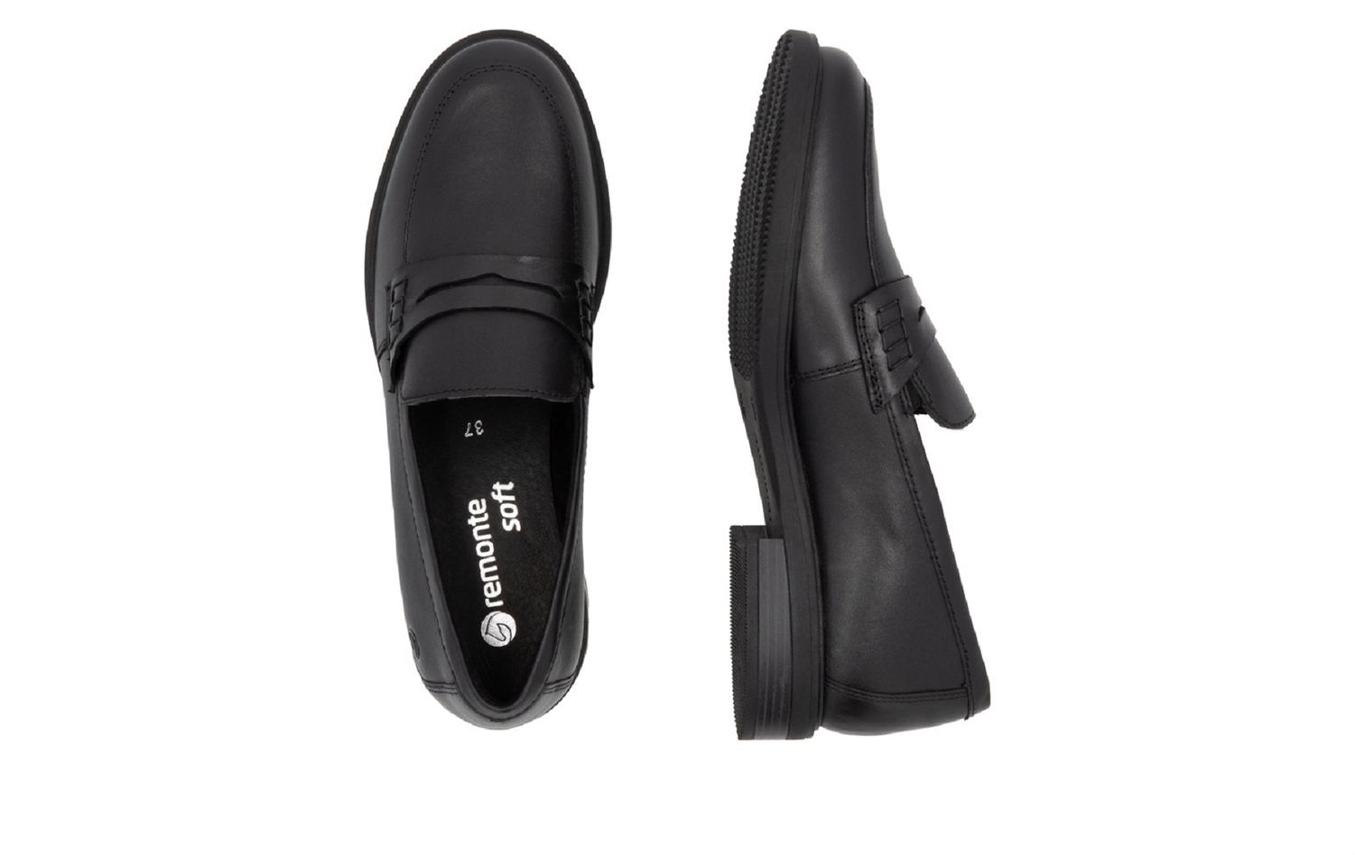 Remonte D1U01 01 est un mocassin femme en cuir noir.