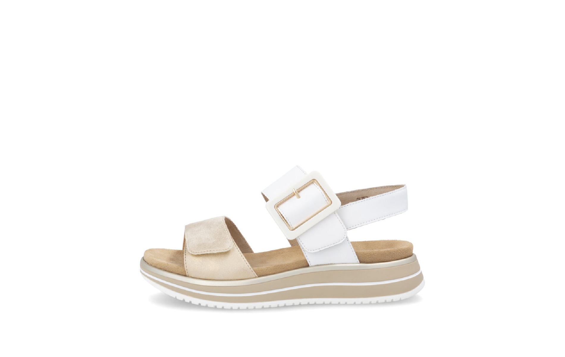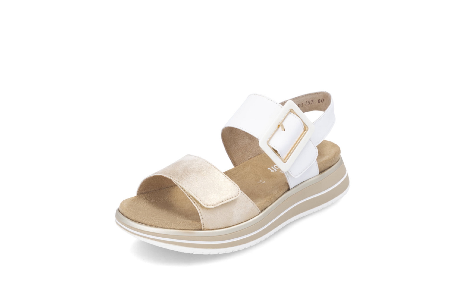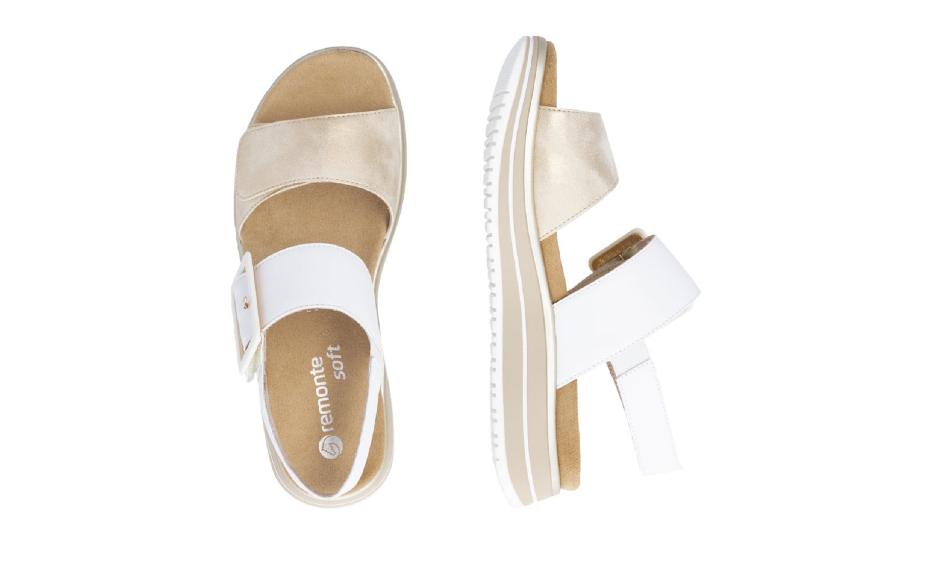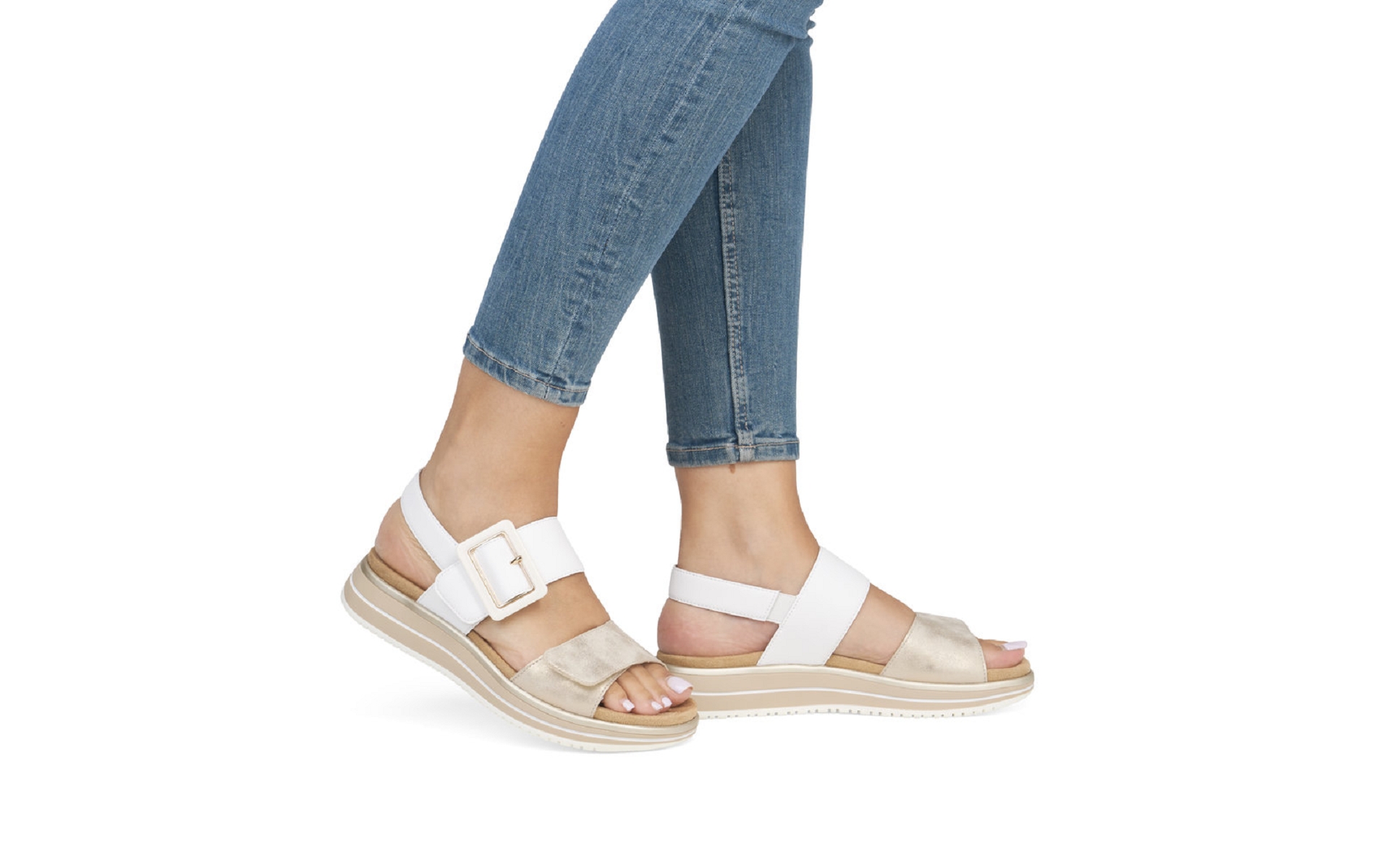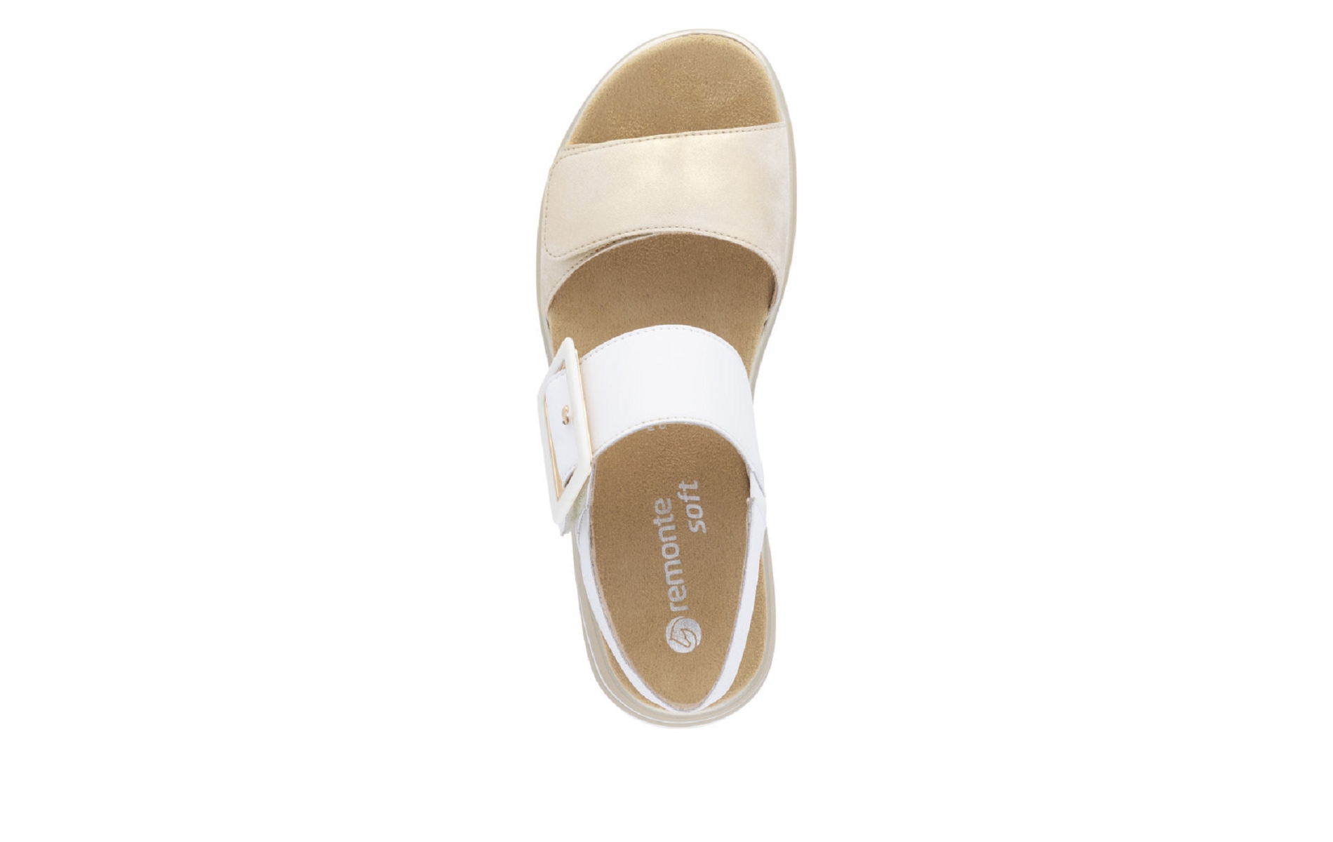 Remonte D1J53 80 est un nu pieds femme en cuir enduit blanc et platine.