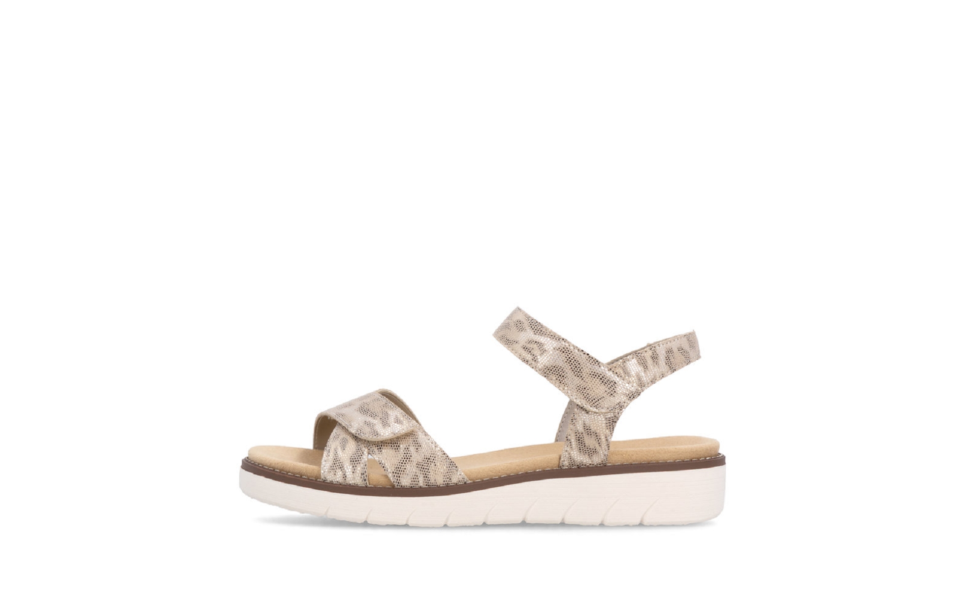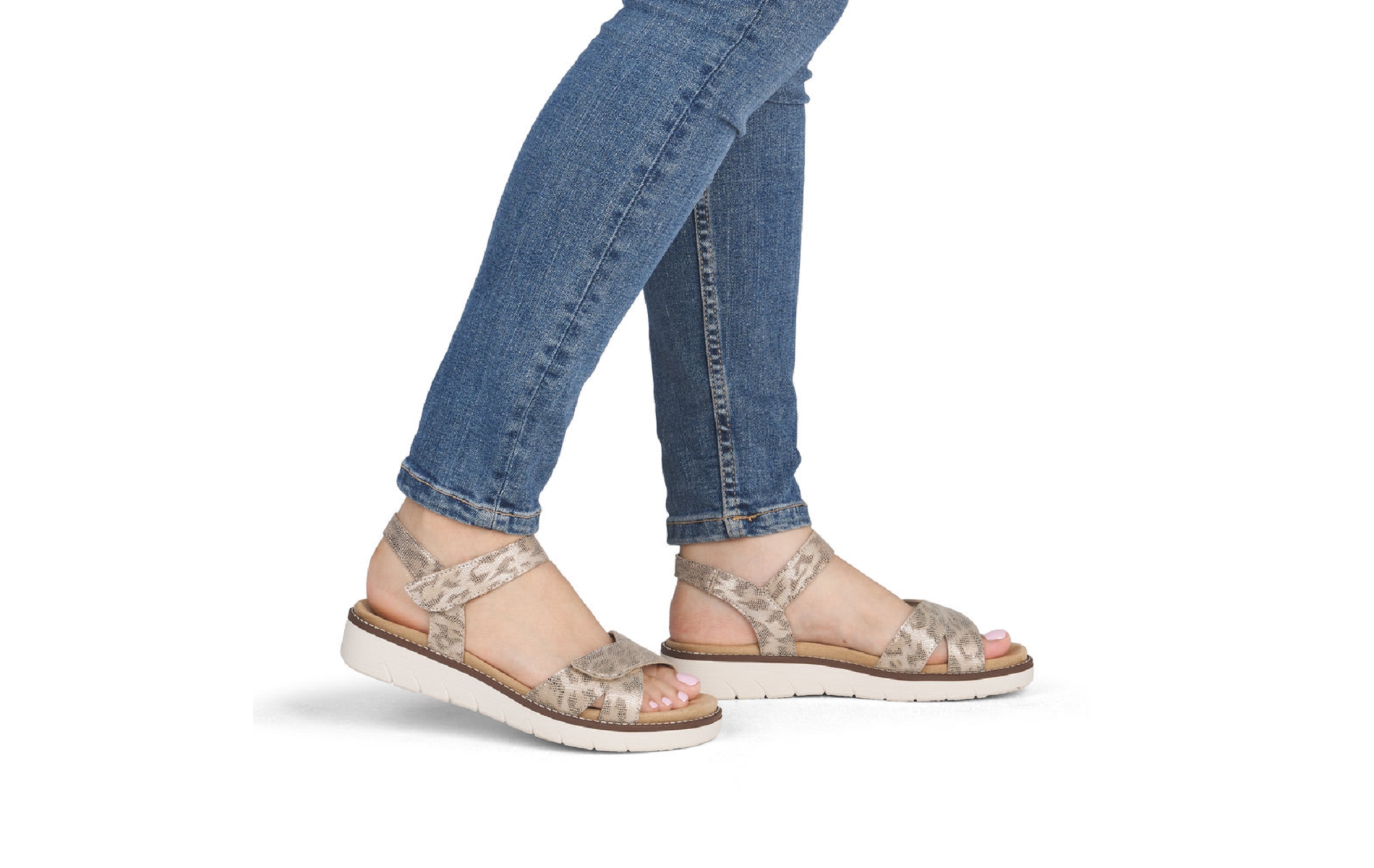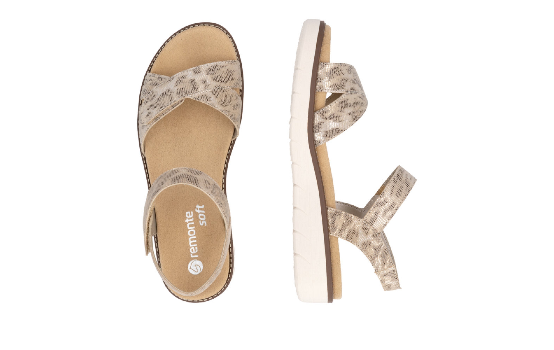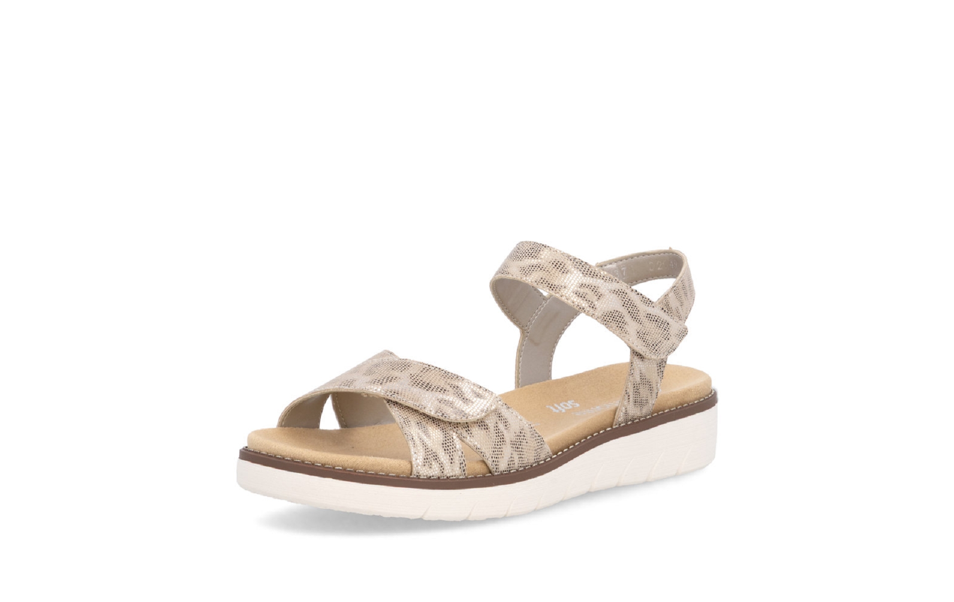 Remonte D2049 91 est un nu pieds femme en cuir métallique imprimé serpent.