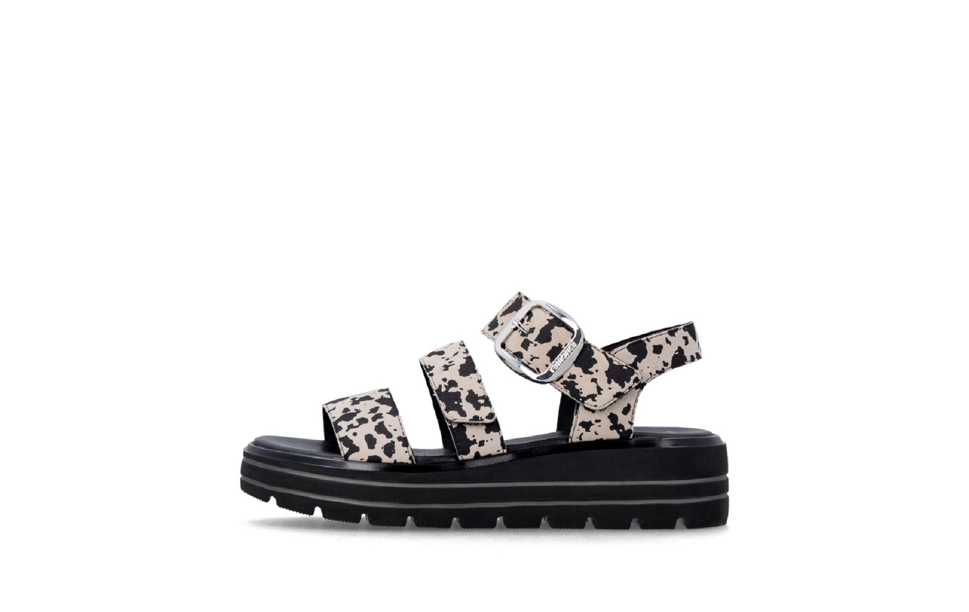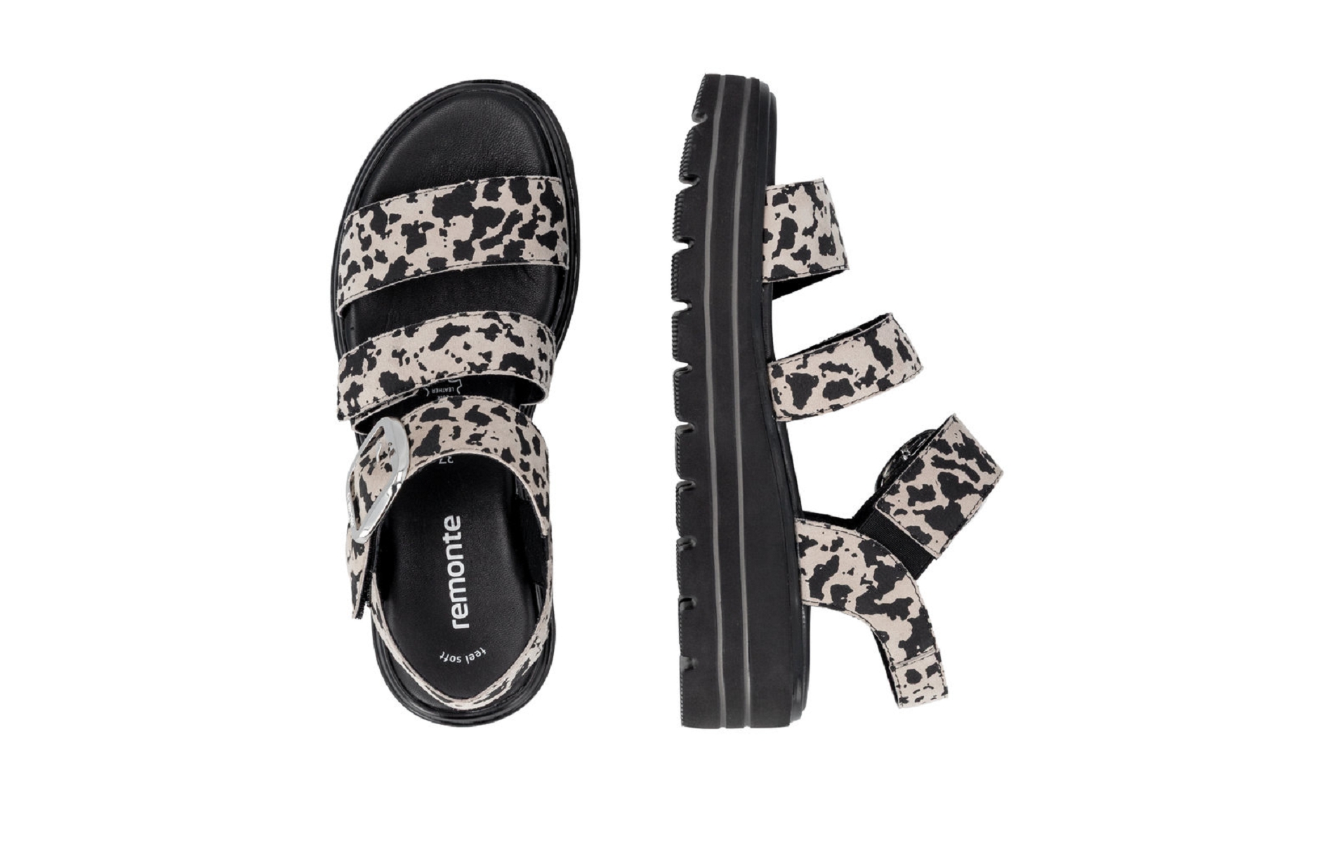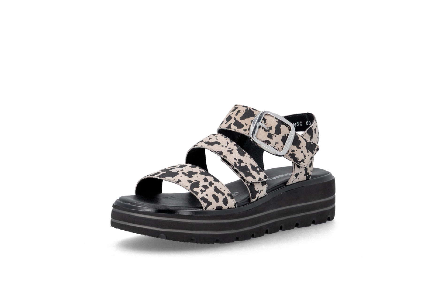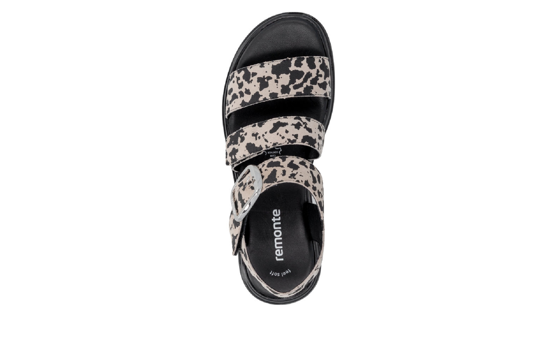 Remonte D3N50 60 est un nu pieds femme en cuir beige imprimé vache.