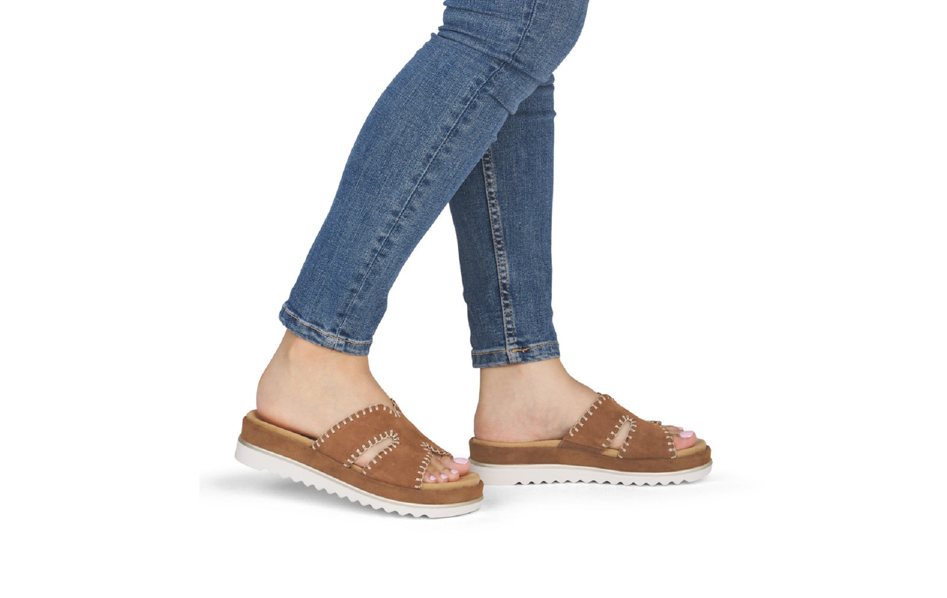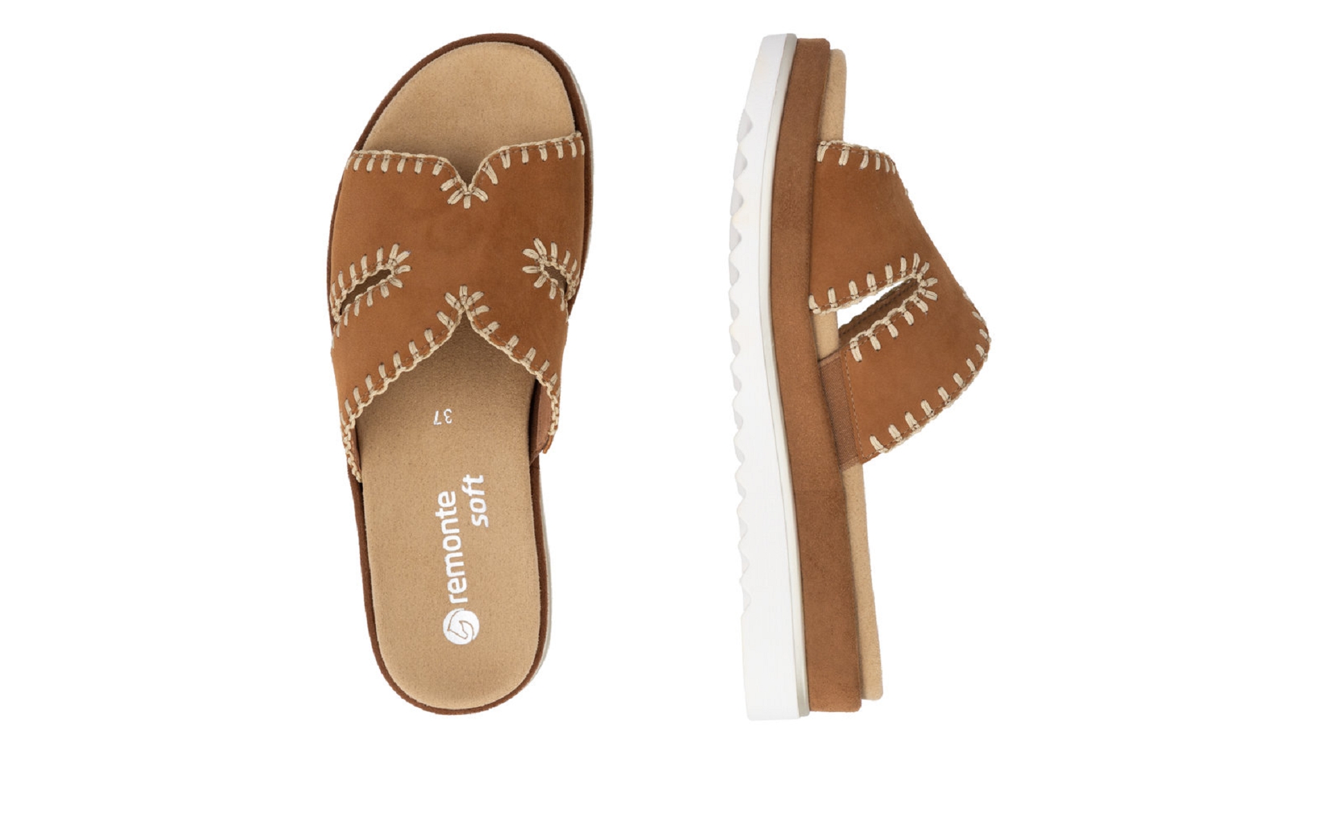 Remonte D3P51 22 est une mule femme en cuir marron.