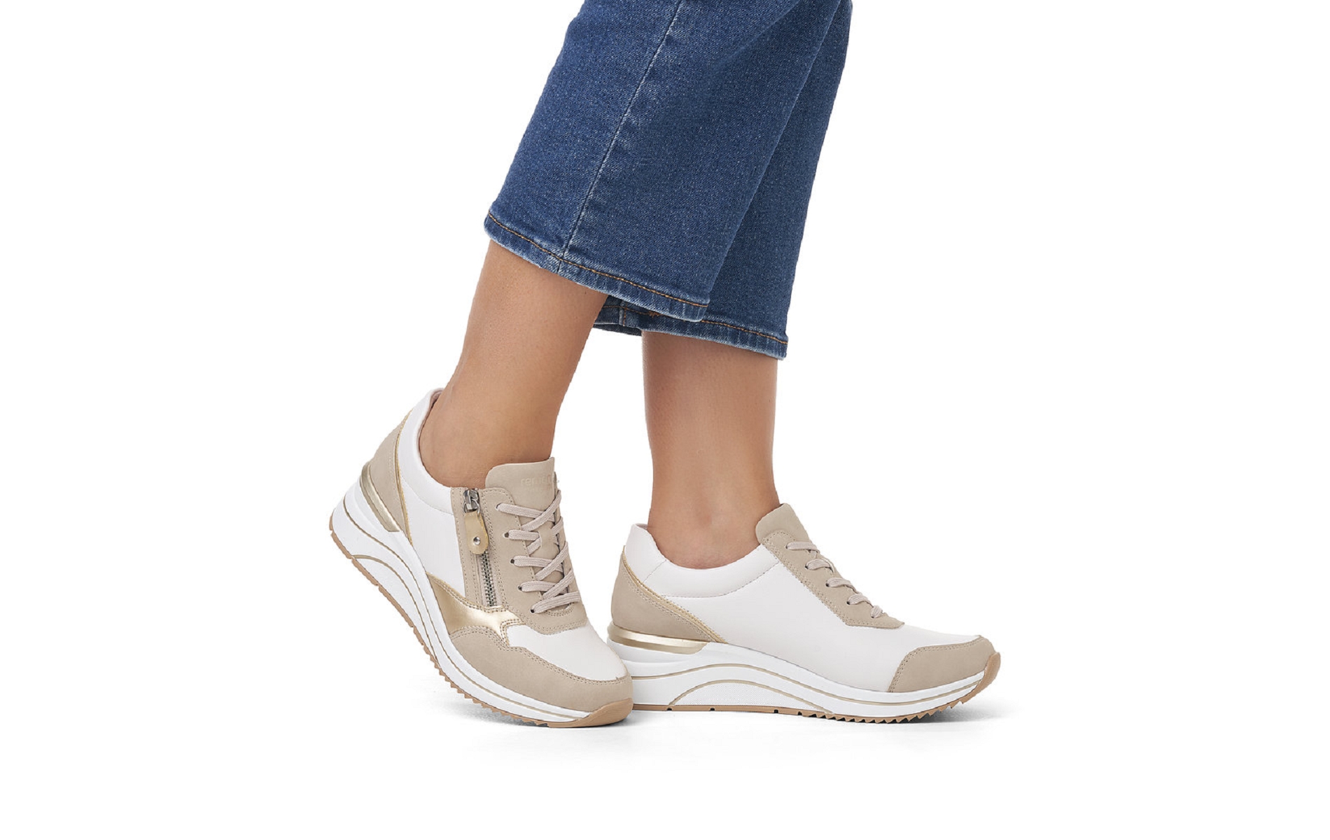 Remonte D0T01 80 est une tennis femme stretch beige.