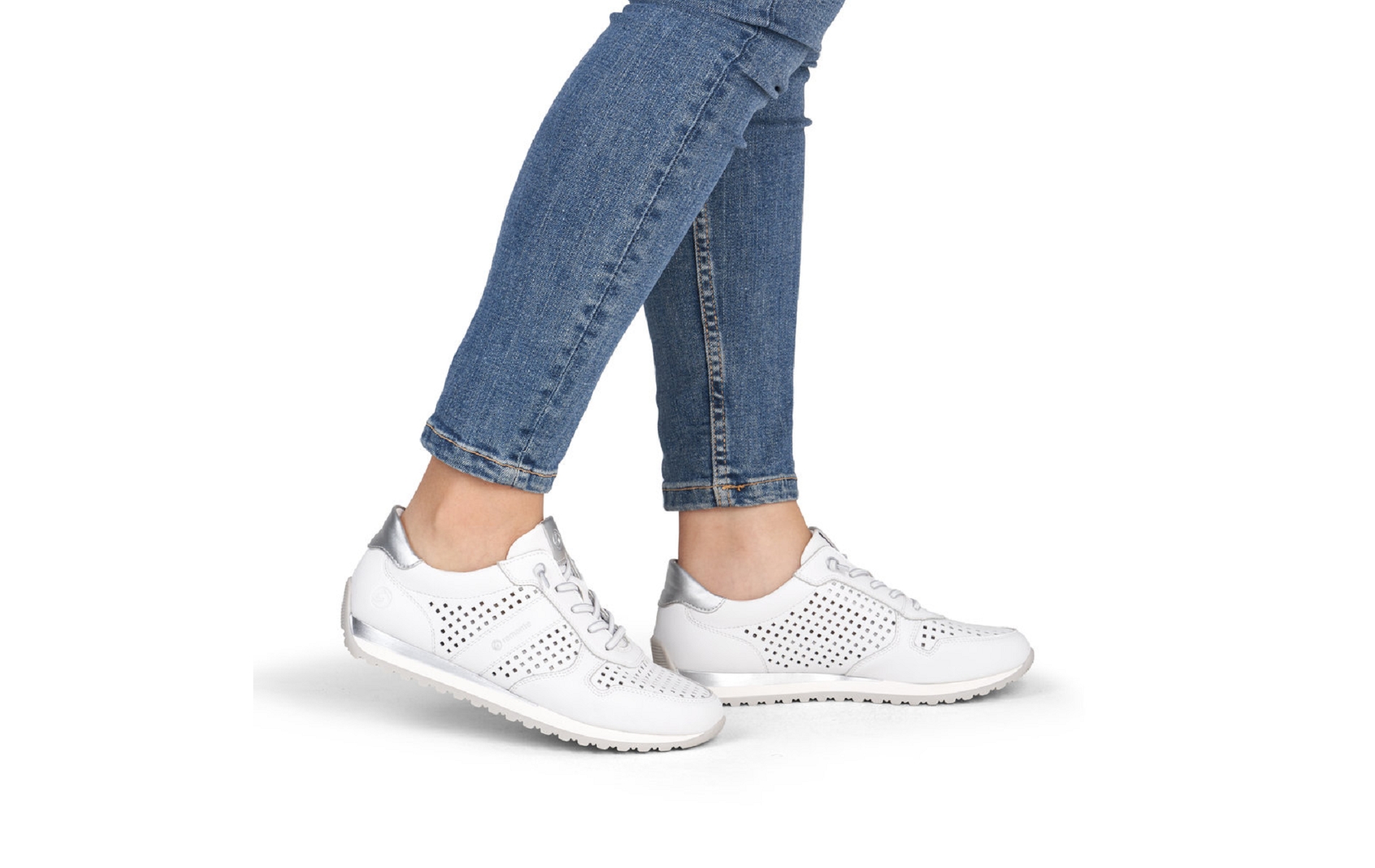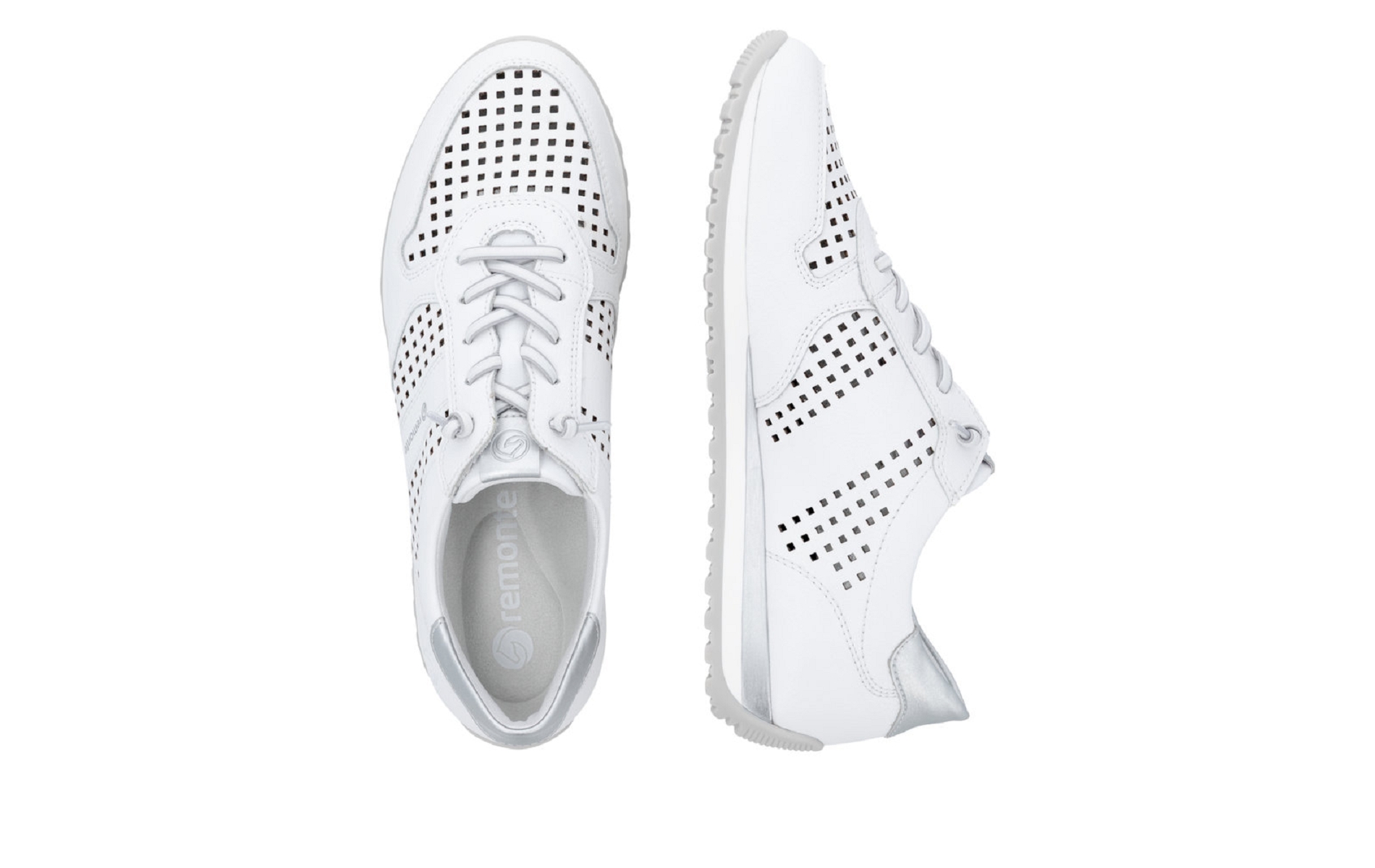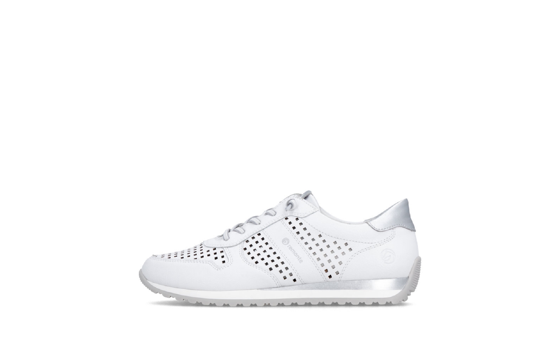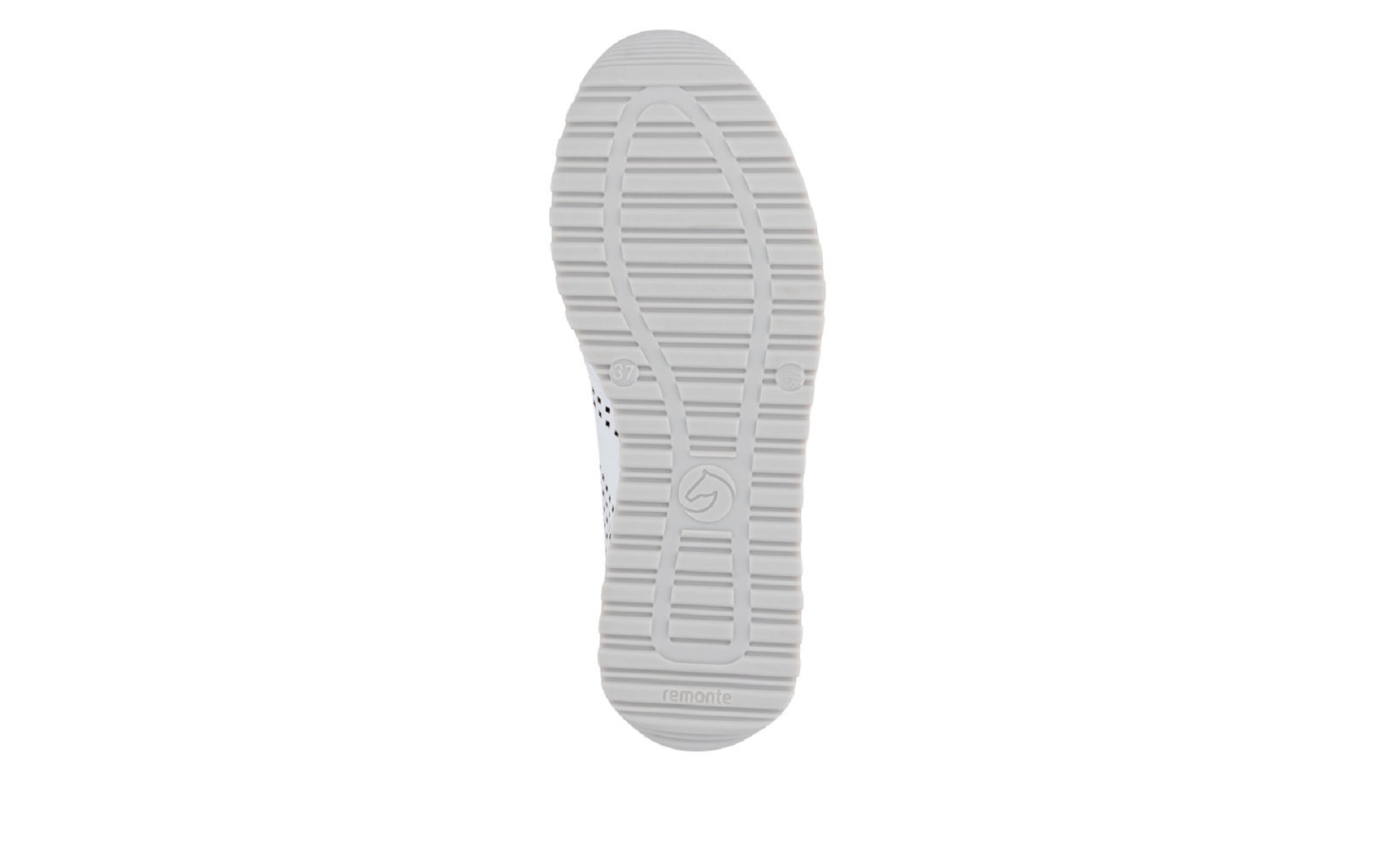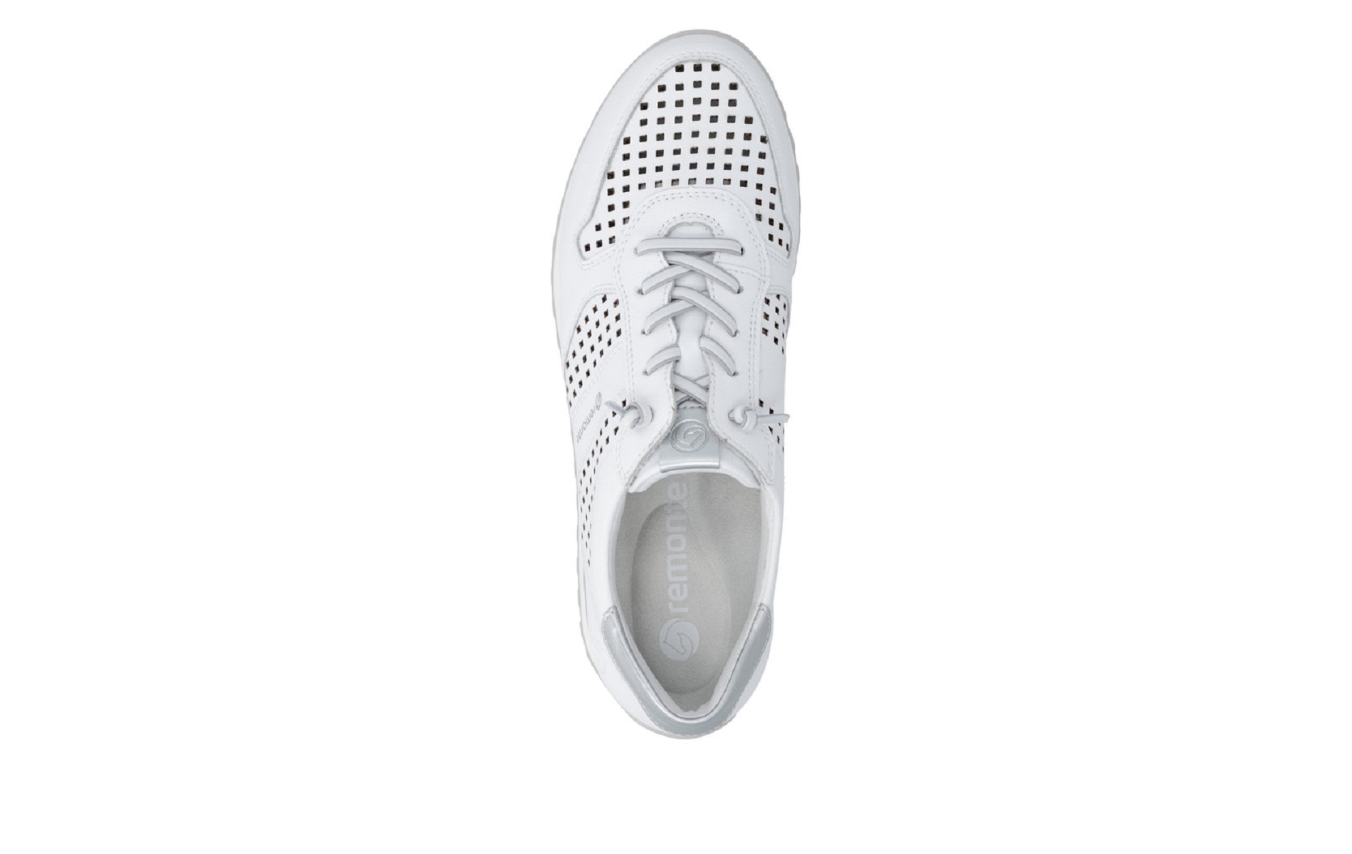 Remonte D3h03 80 est une tennis femme en cuir enduit blanc perforé.