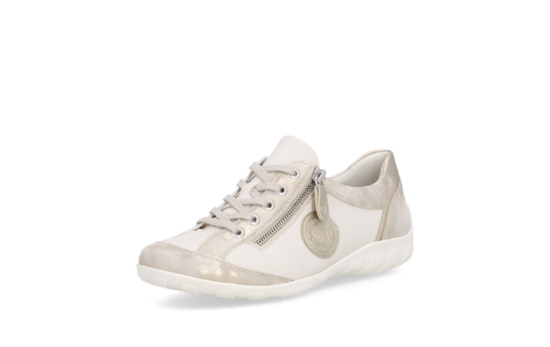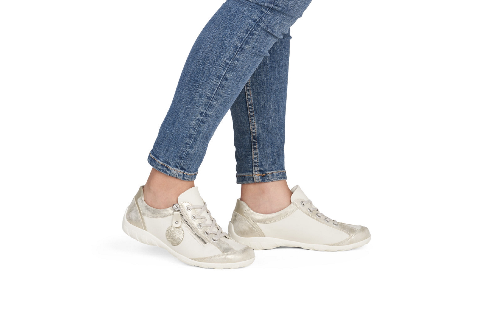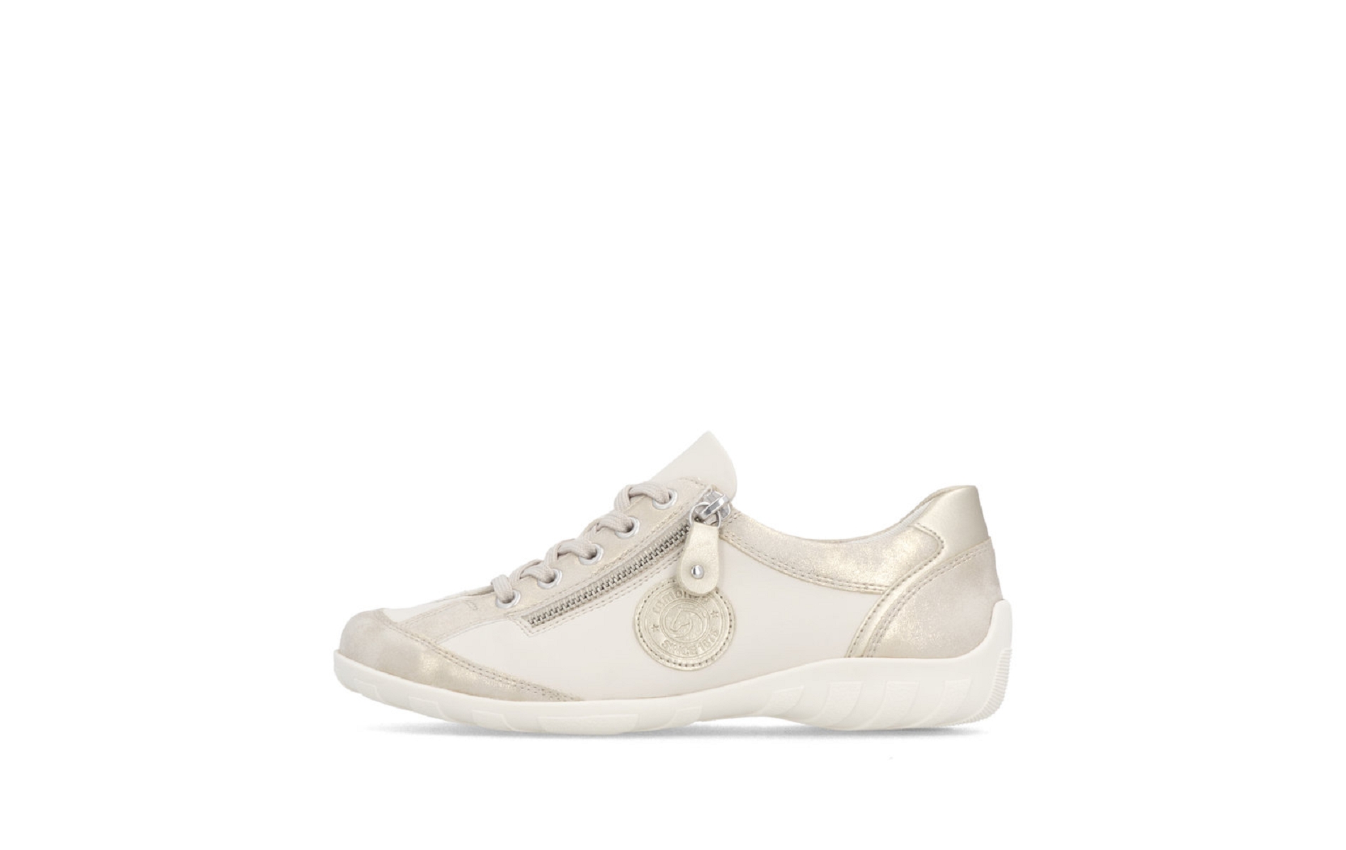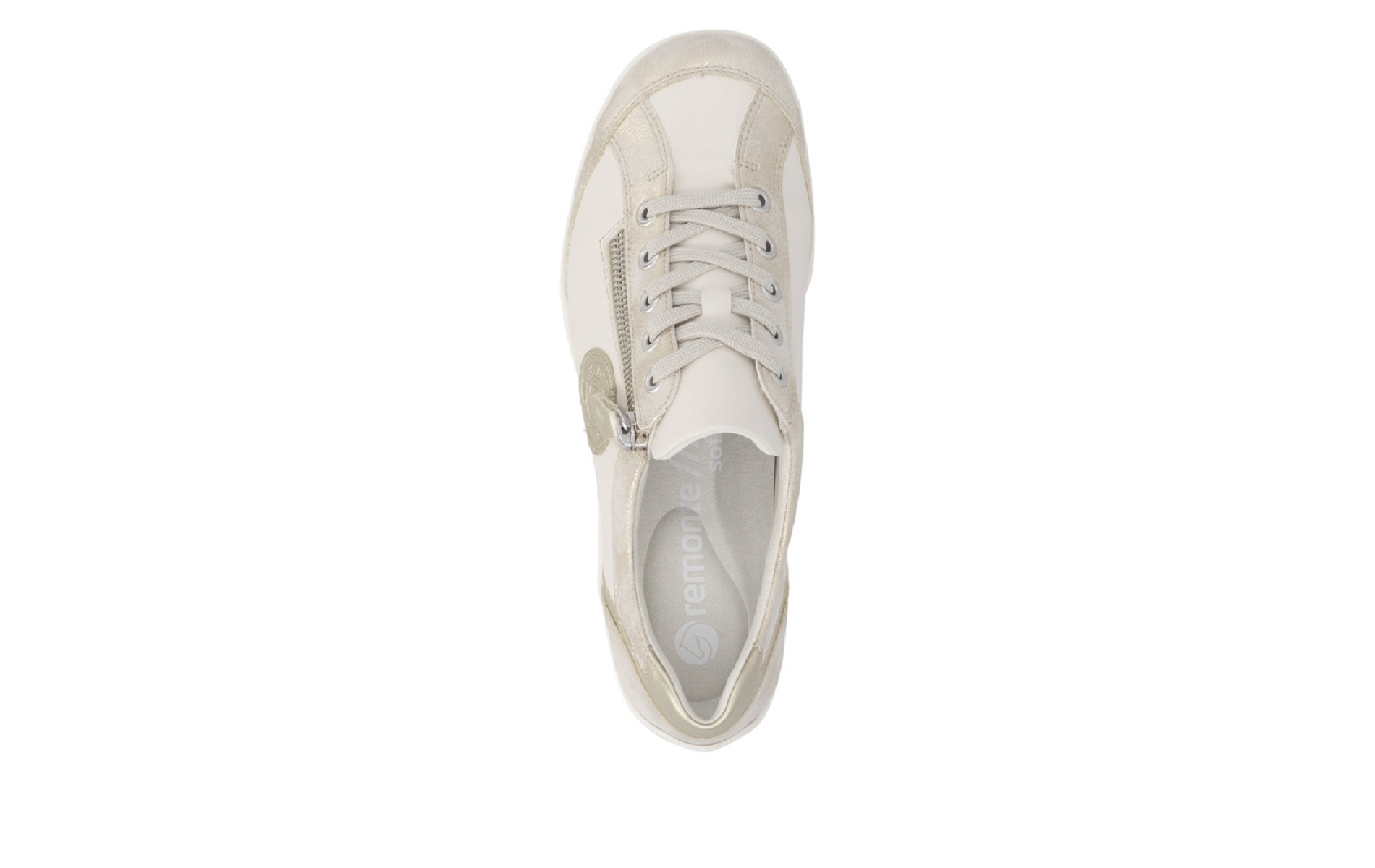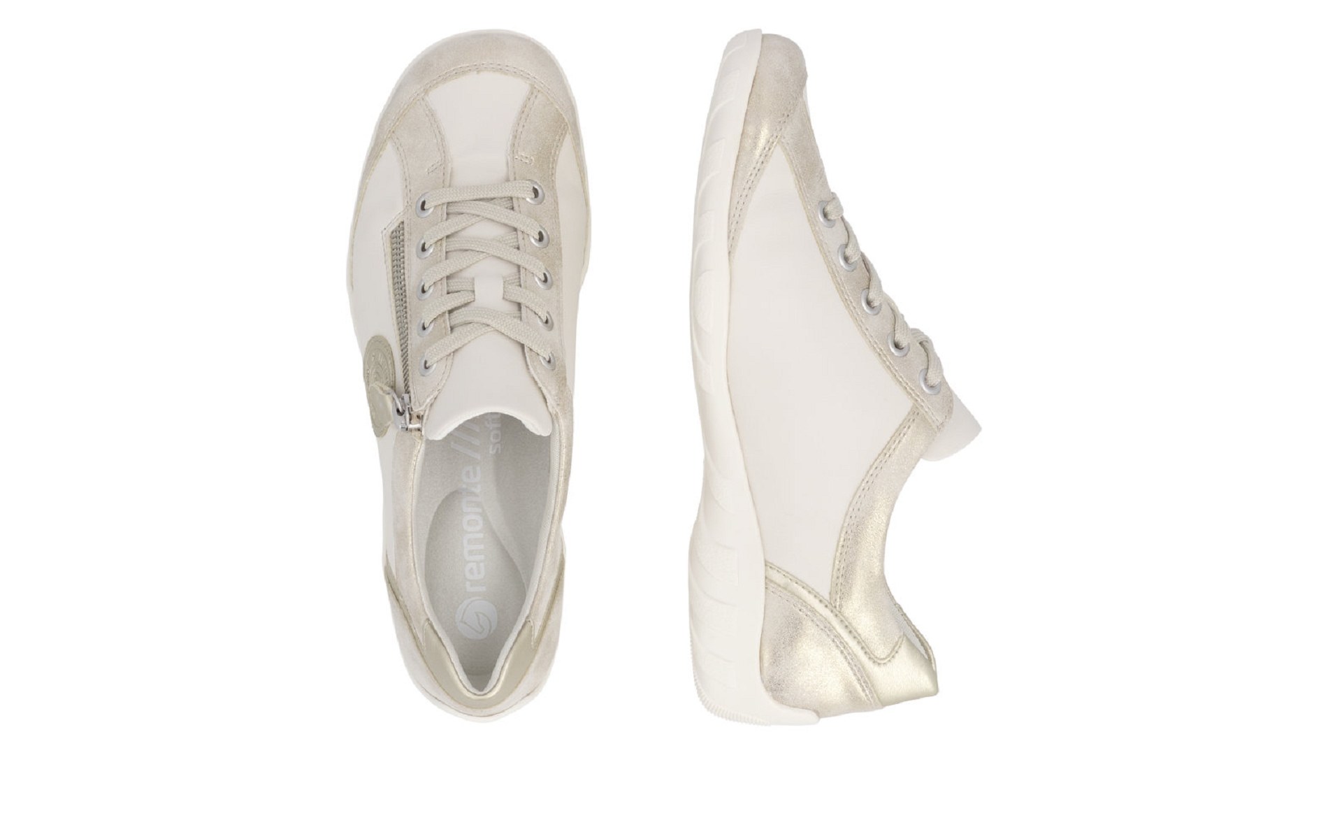 Remonte R3408 61 est une tennis femme en cuir vegan beige, or.