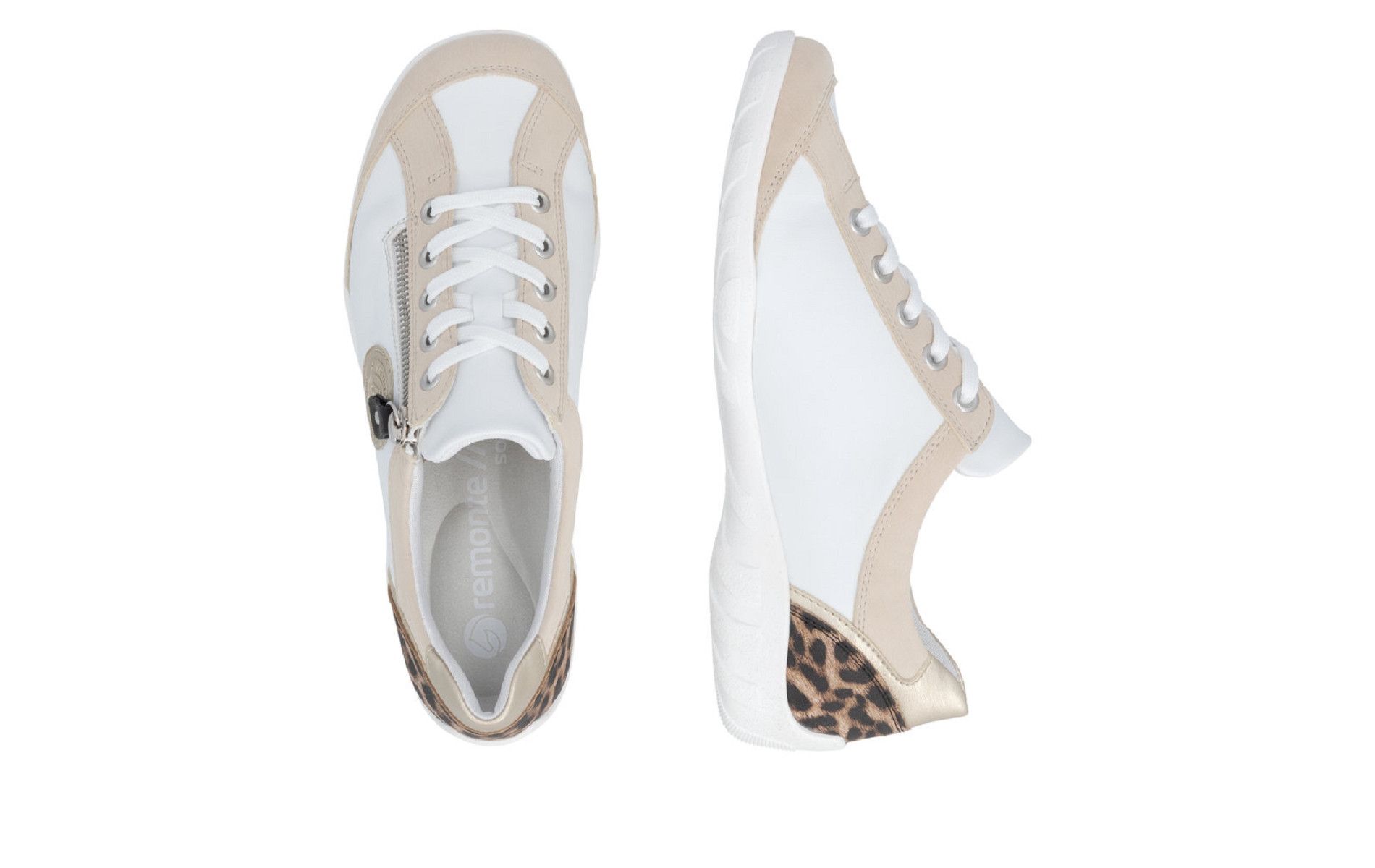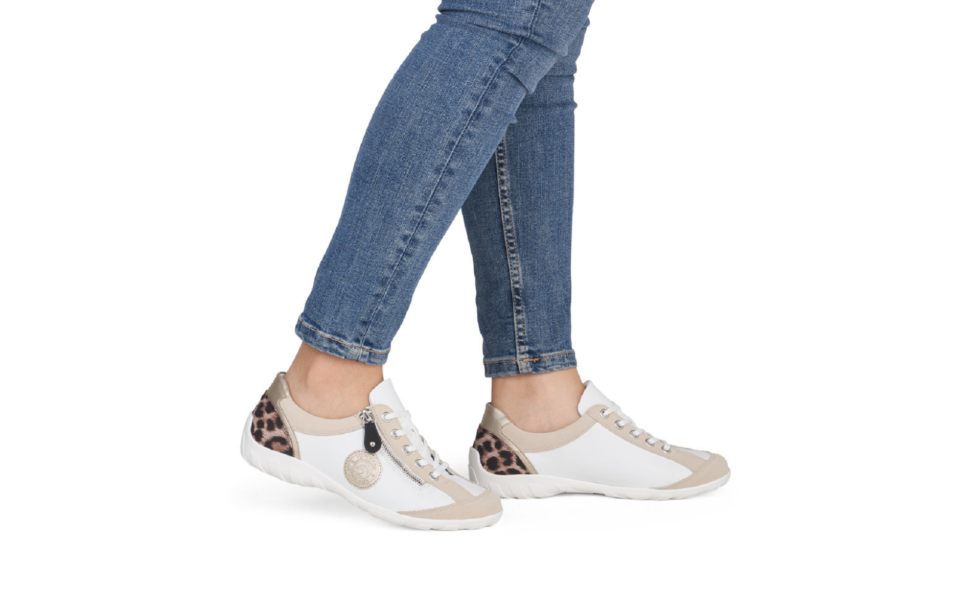 Remonte R3408 83 est une tennis femme en cuir vegan blanc ,léopard.