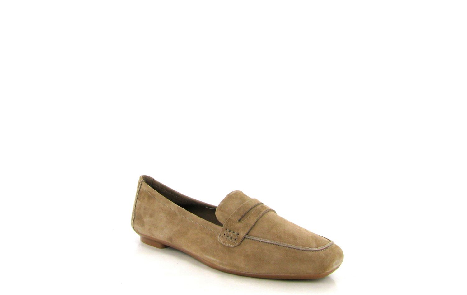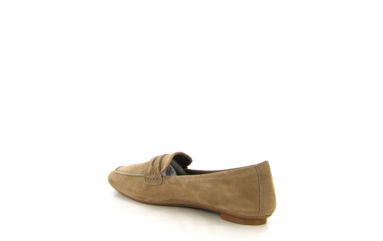Mocassin femme HEMA en cuir/nubuck taupe.
