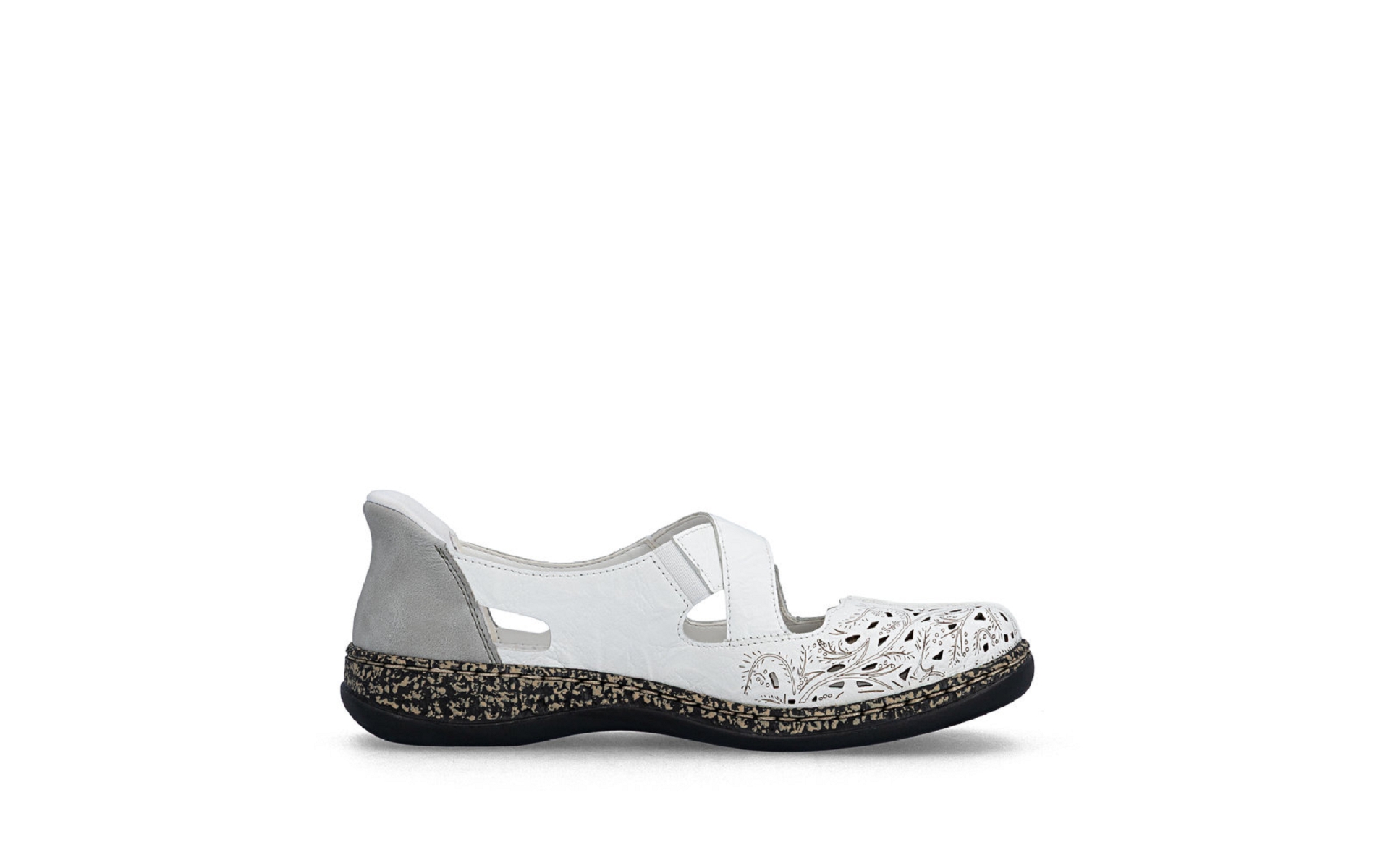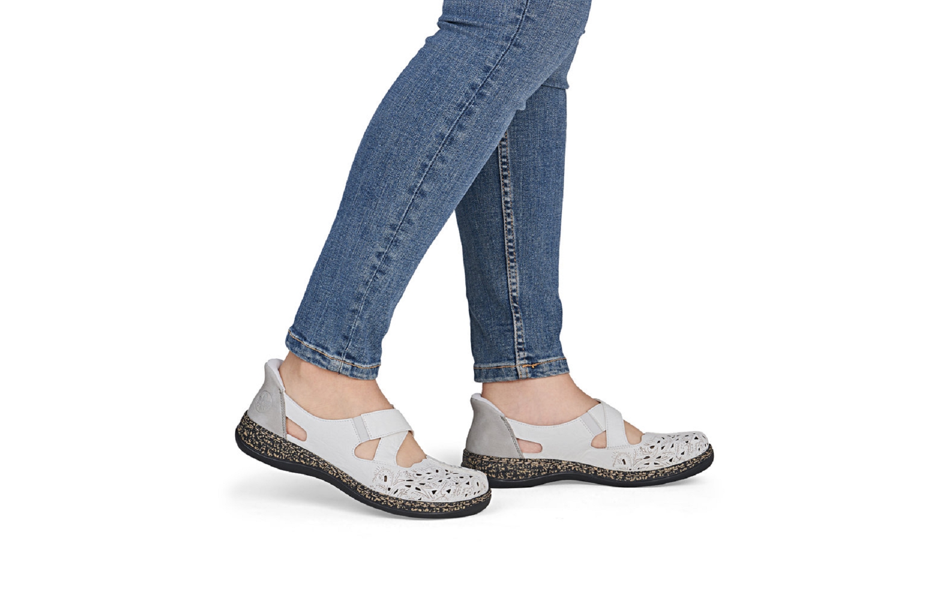 Cette chaussure qui est un mix entre une tennis et une ballerine avec son velcros sur le coup de pied est à découvrir chez Rieker-webstore.fr sera facile à chausser avec sa tige chausse pied.