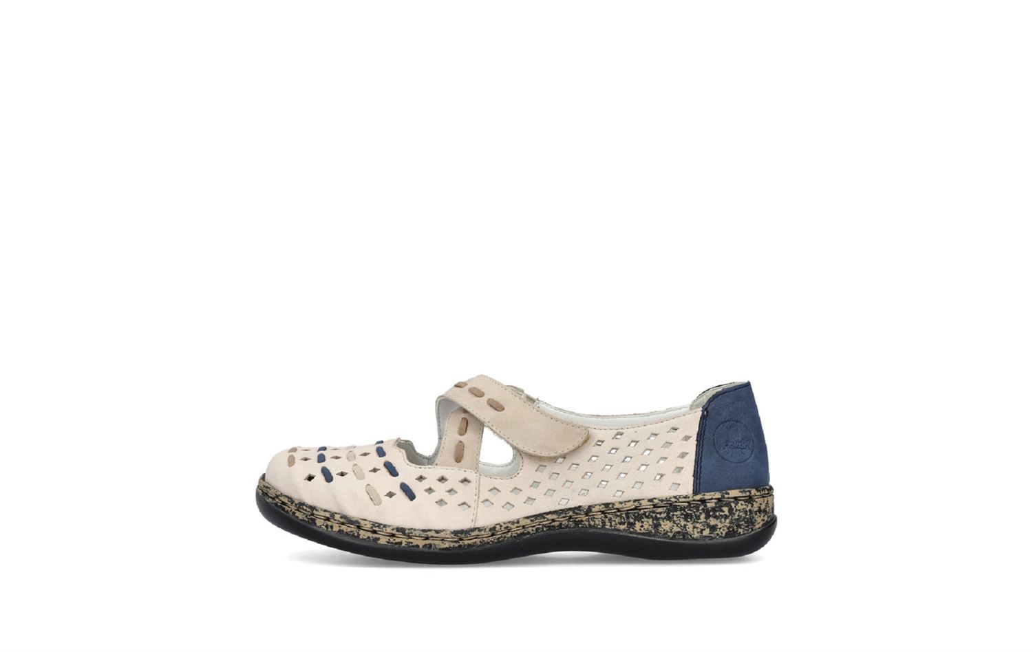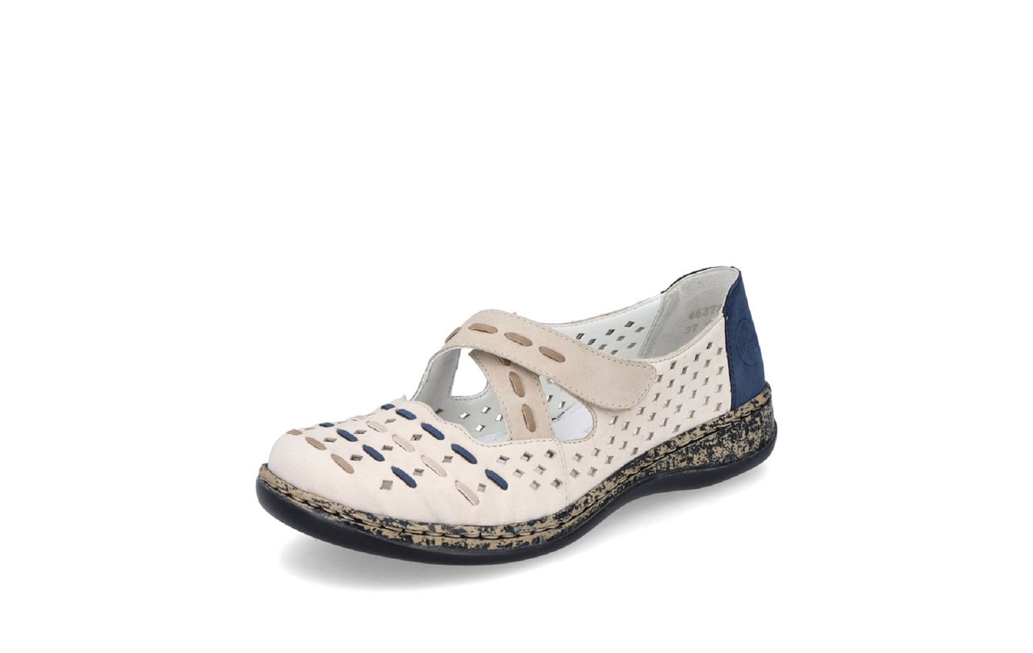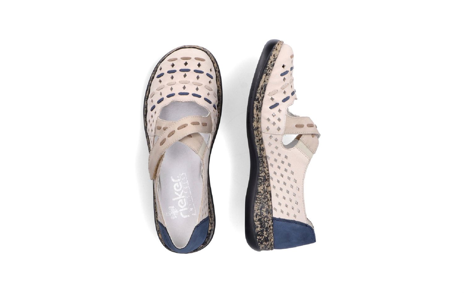 RIEKER 46378 90 est une sandale femme en cuir et etxtile ecru.