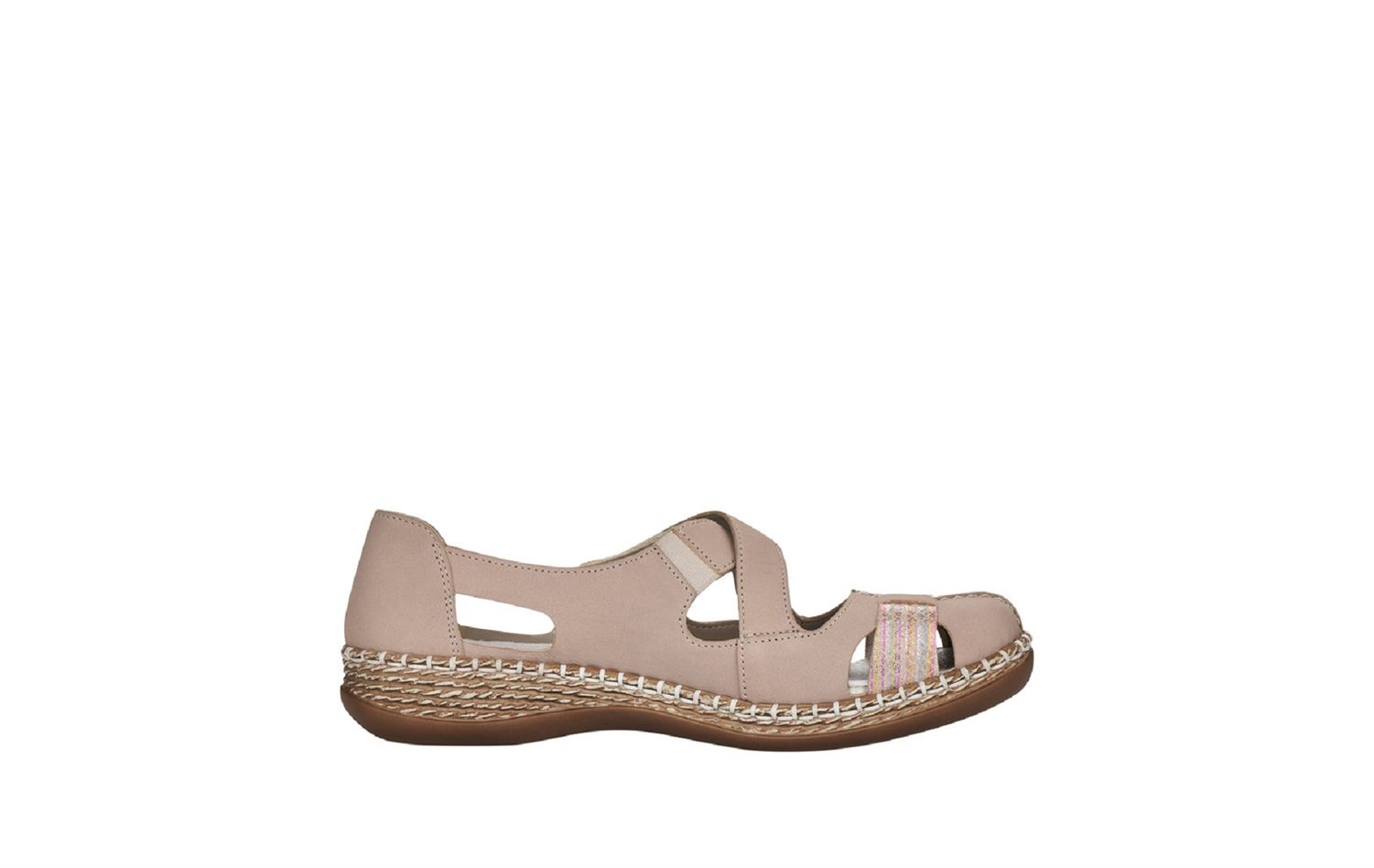 Sandale femme RIEKER 46451- 60 en cuir beige.