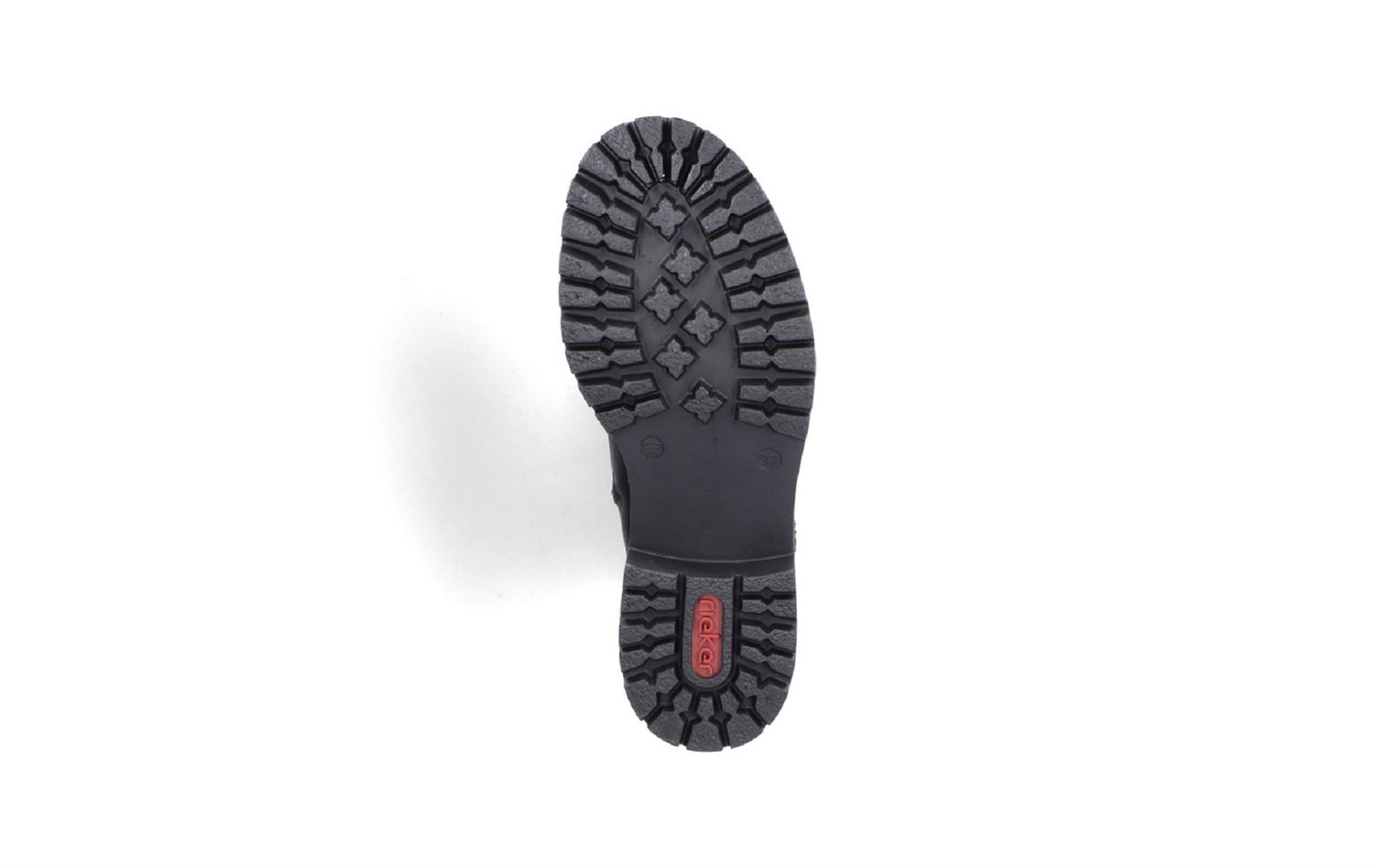 Cette bottine Rieker est munie d'un talon détaché pour un confort optimal et un amorti remarquable ainsi que d'ne semelle crantée.