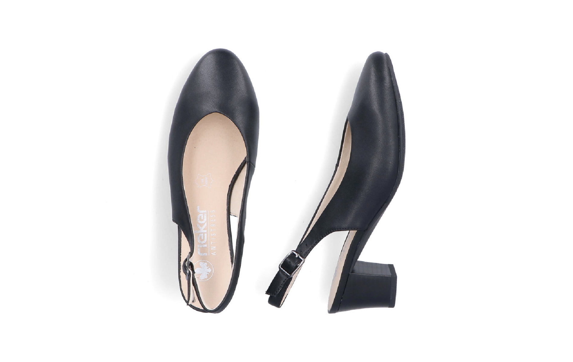 escarpin à talon femme RIEKER 44651 00 en cuir noir.