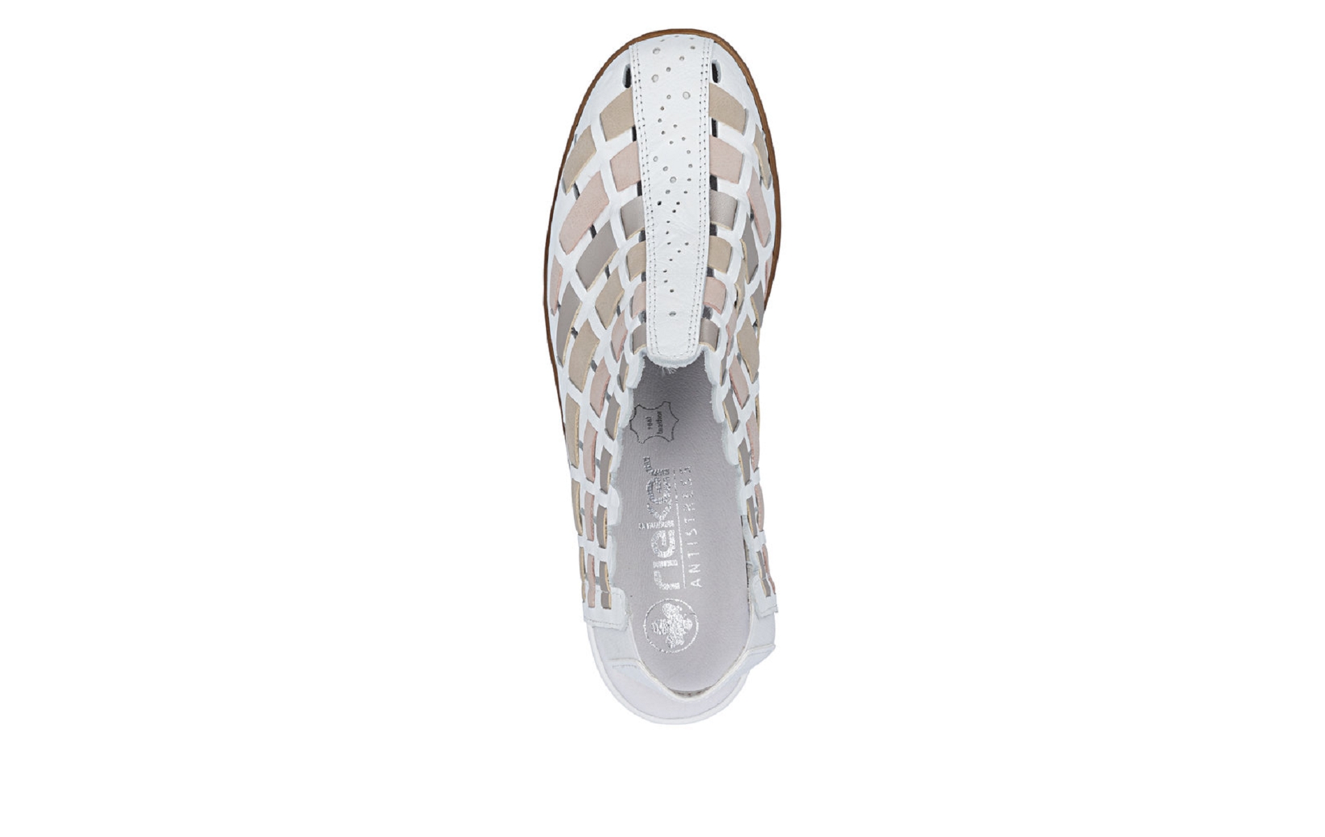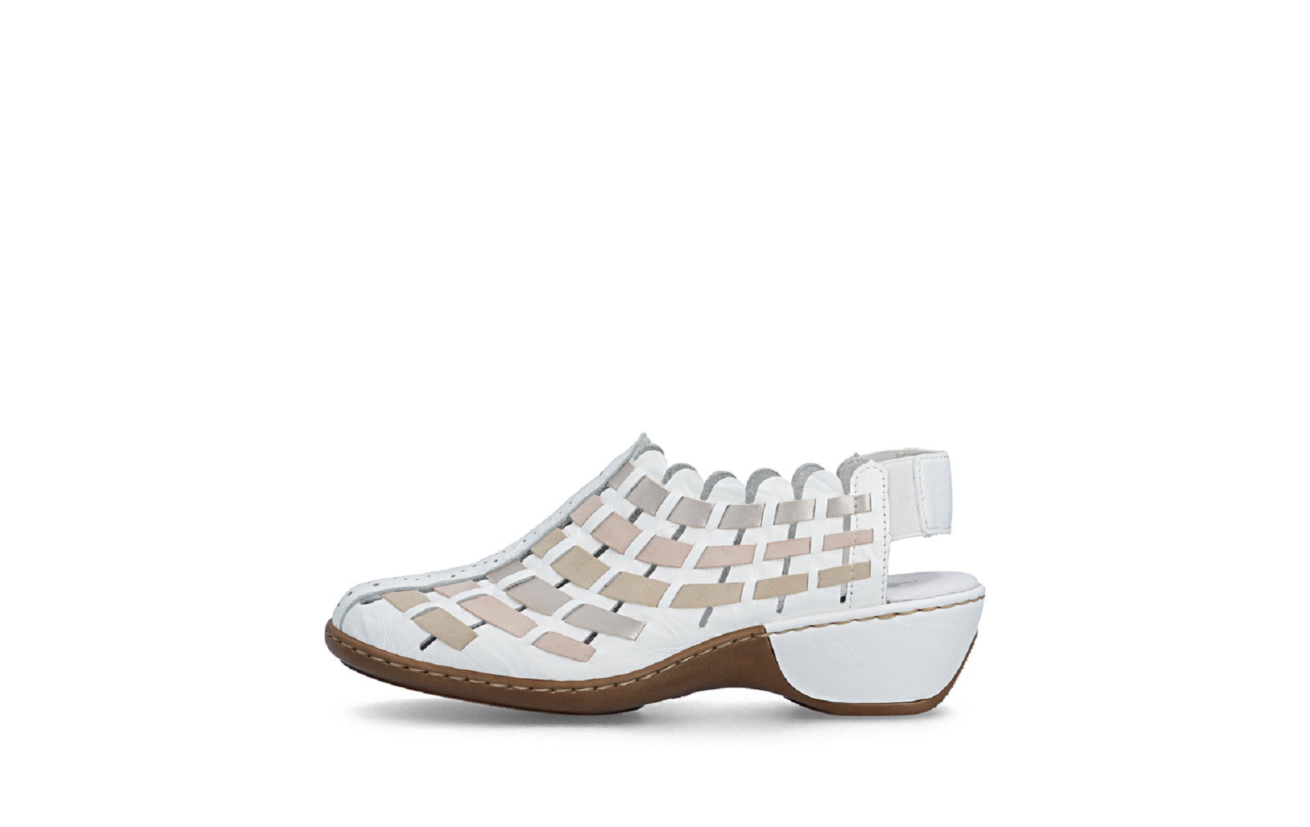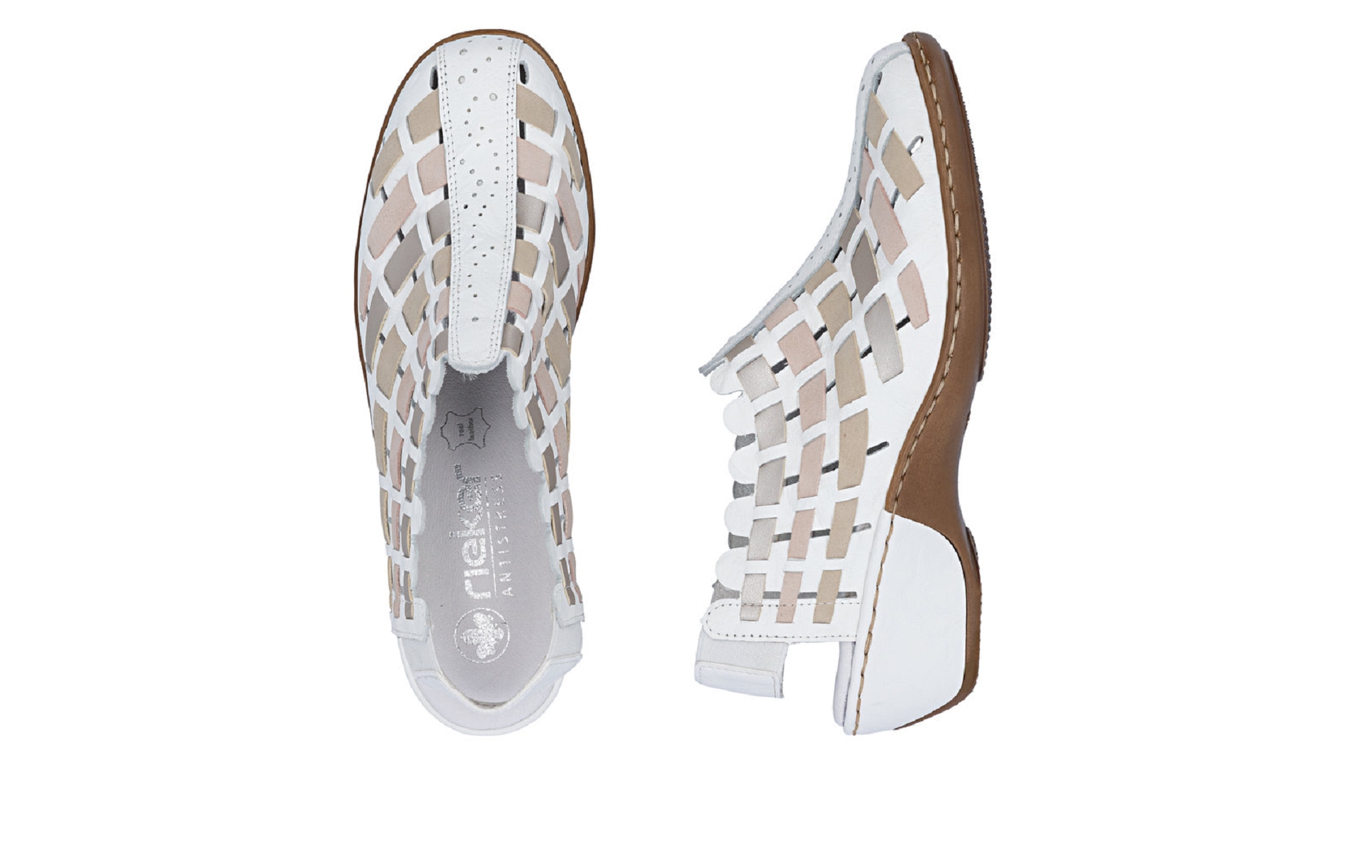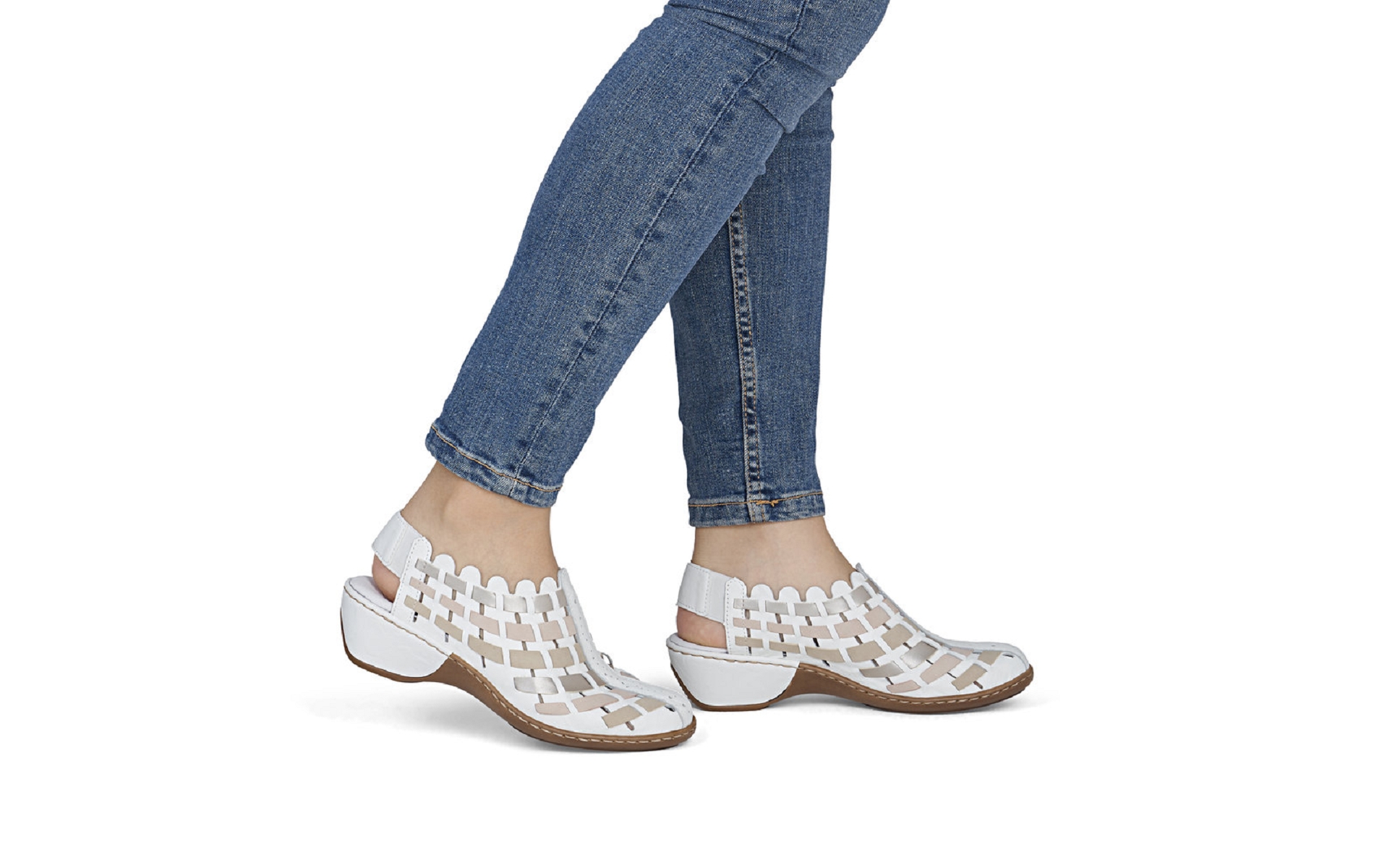 Cette escarpin ajouré à découvrir sur Rieker-webstore.fr est munie d'un petit talon pour rendre vos tenues plus féminines et d'un cuir tréssé pour un chaussant parfait et d'un grand confort.