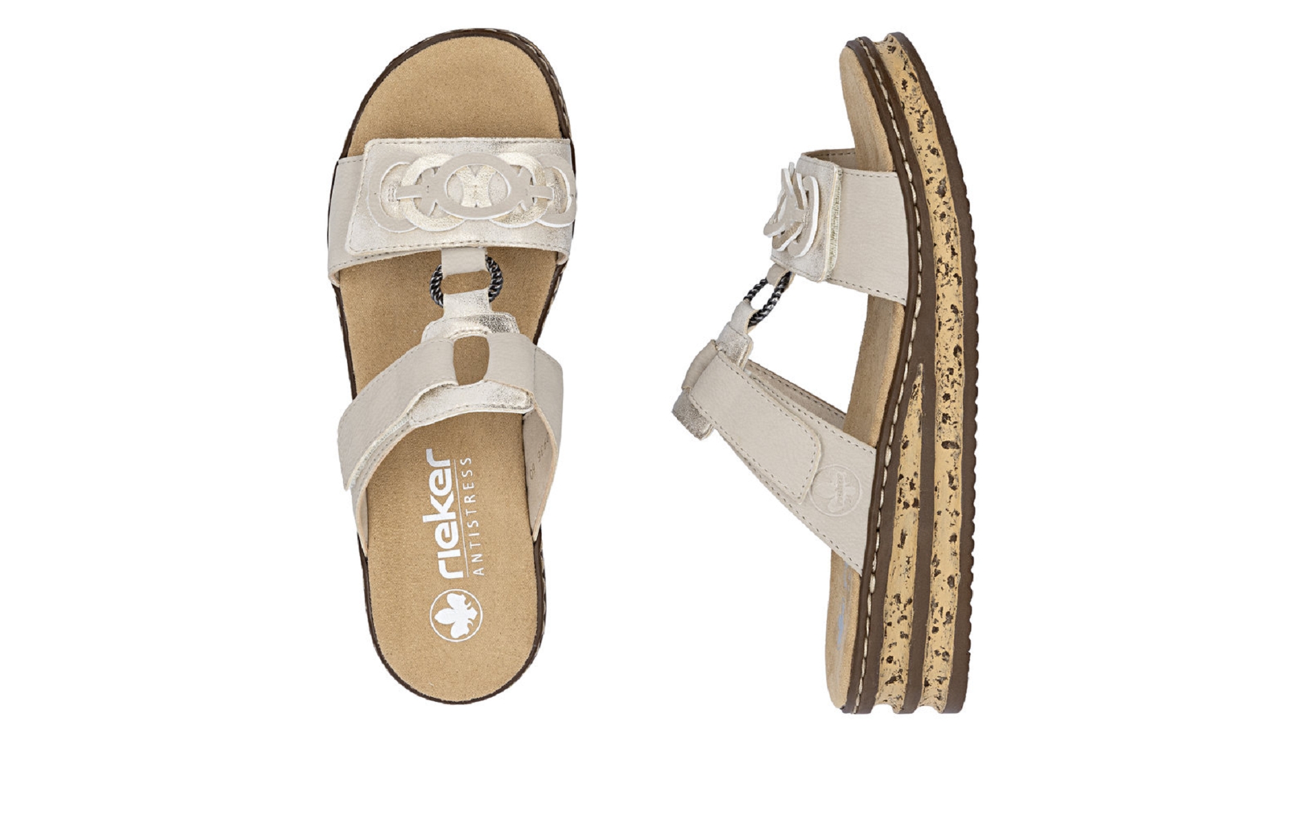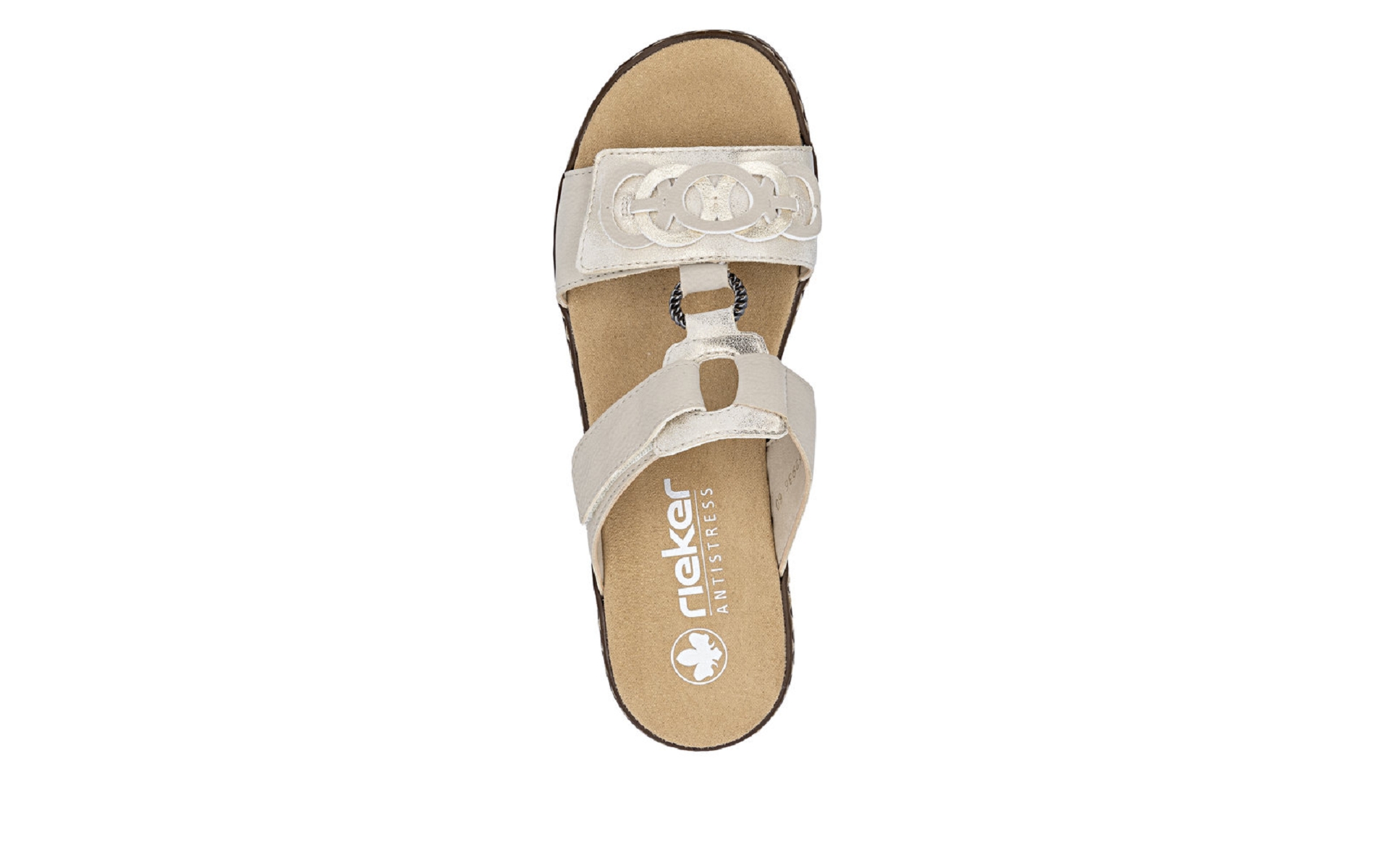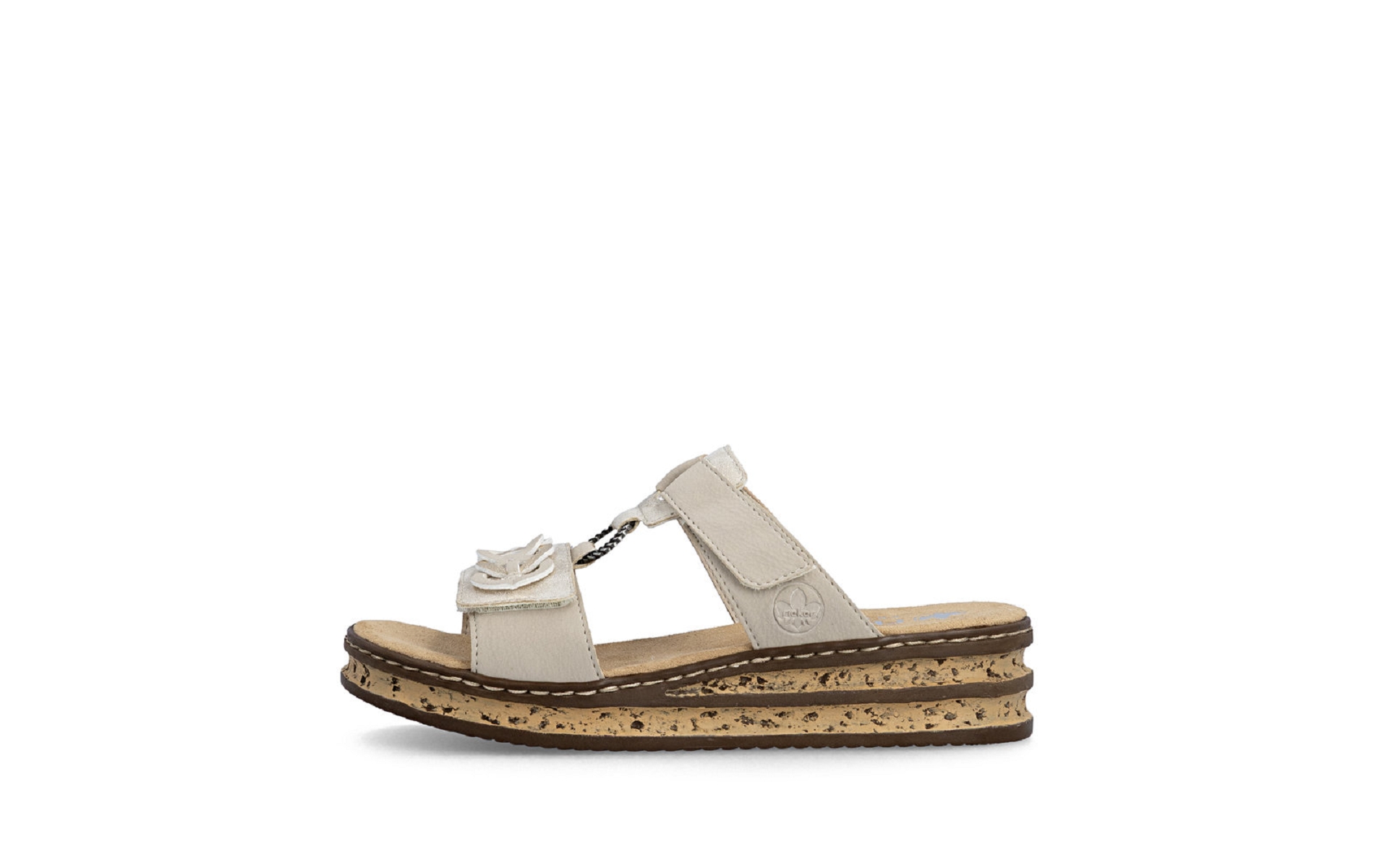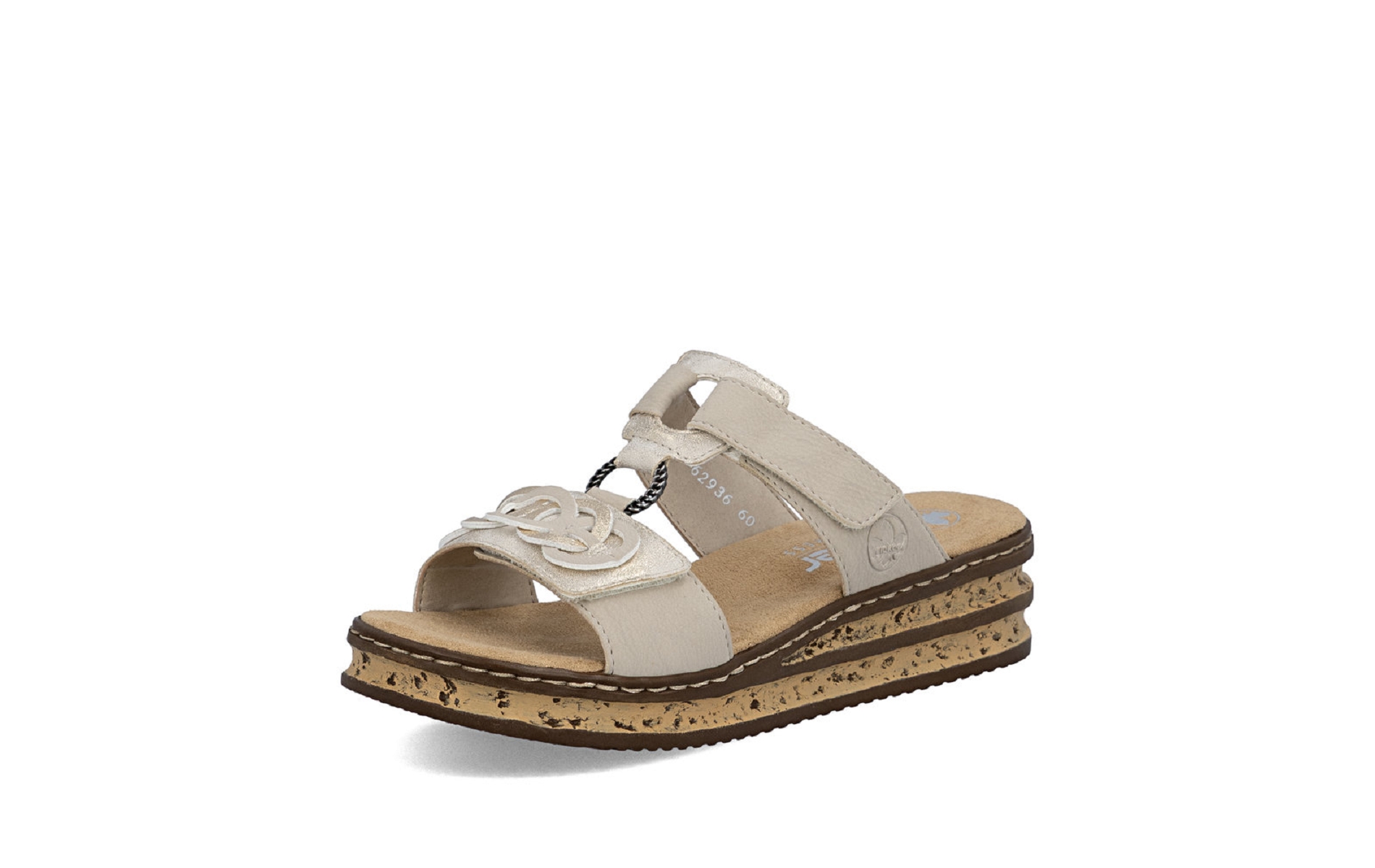 Cette mule Rieker entièrement réglable avec deux brides velcro sur le cou-de-pied sera facile à chausser et idéale pour les beaux jours.