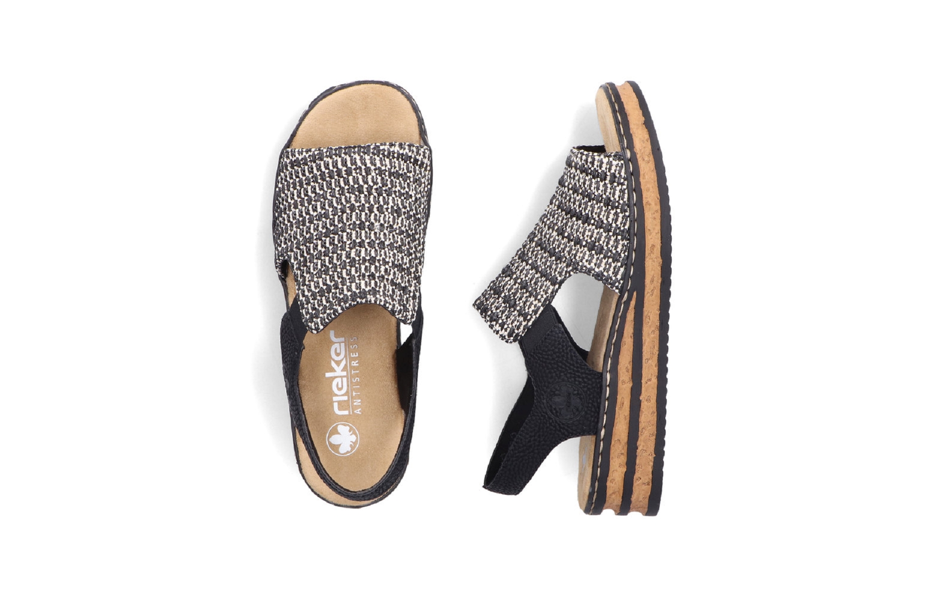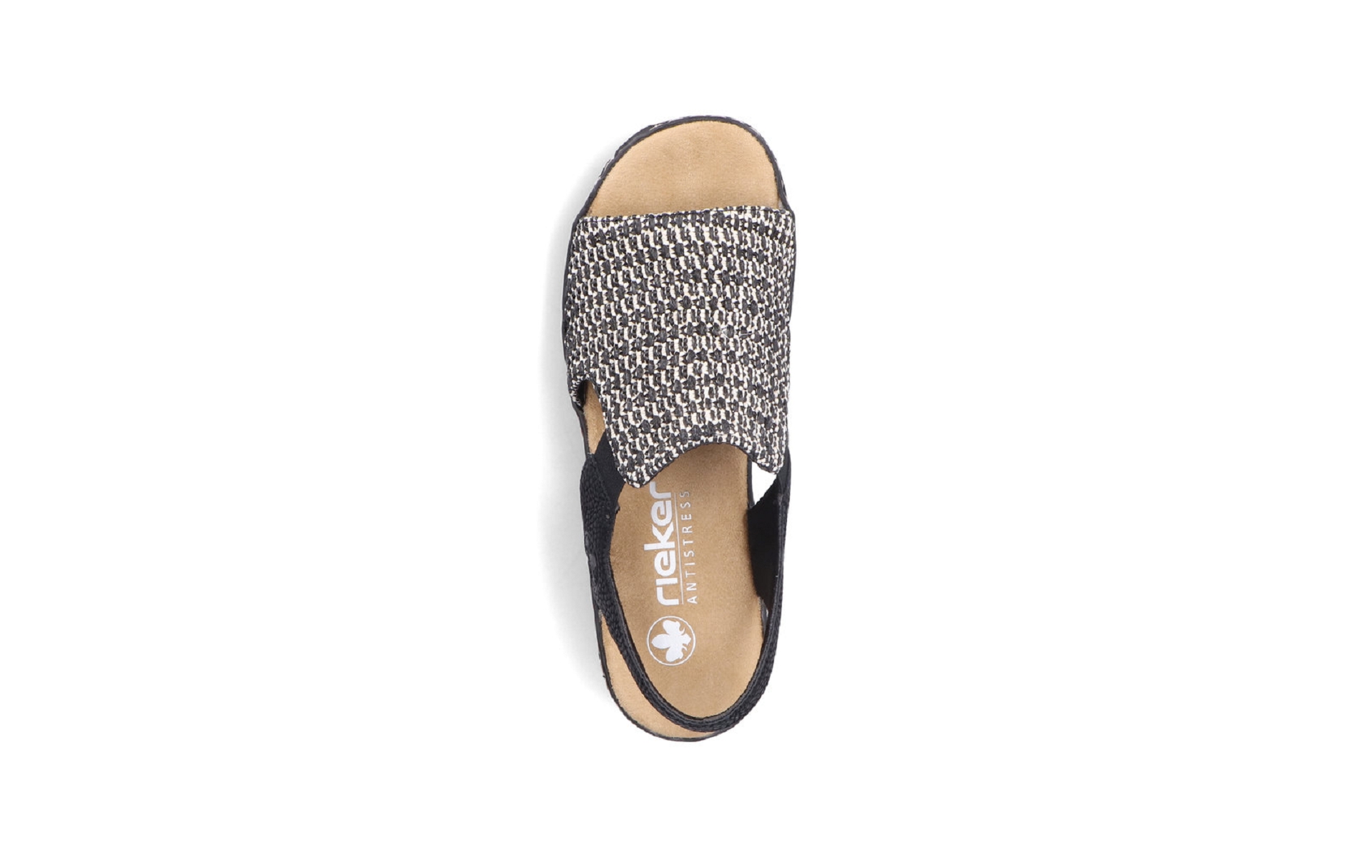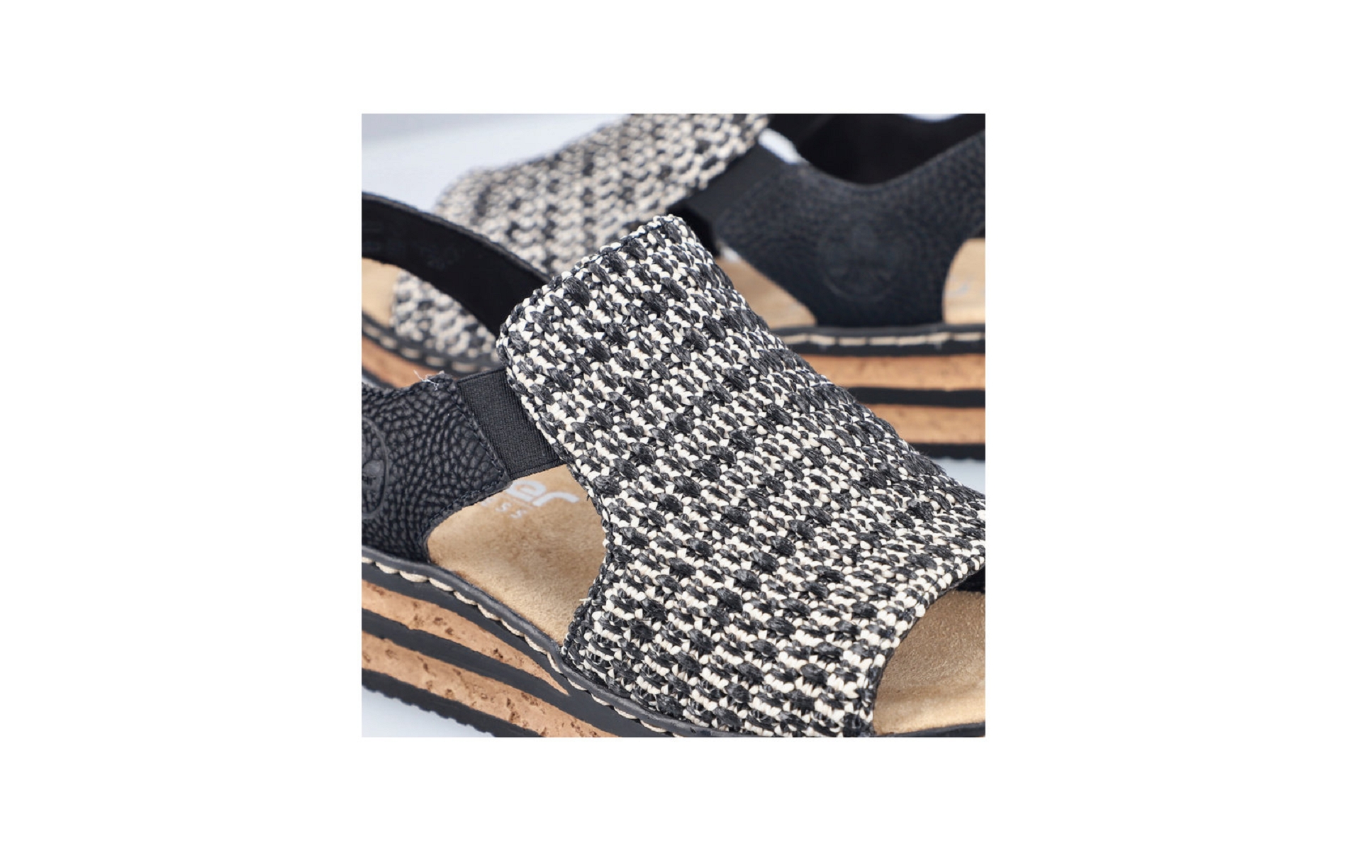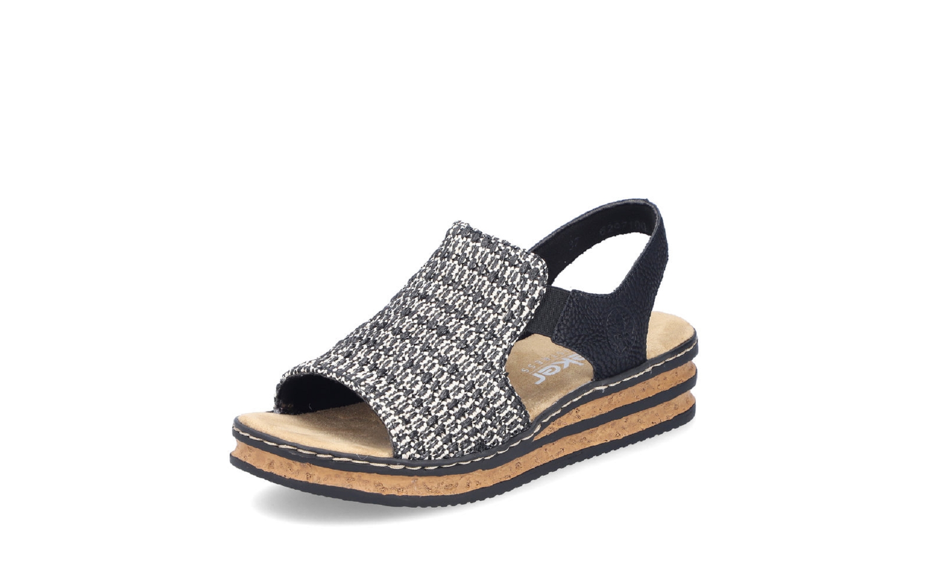 Nu-pieds femme RIEKER 62971 00 textile noir et blanc.