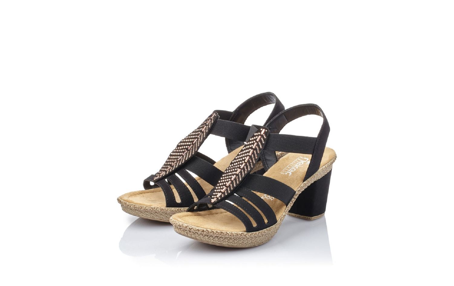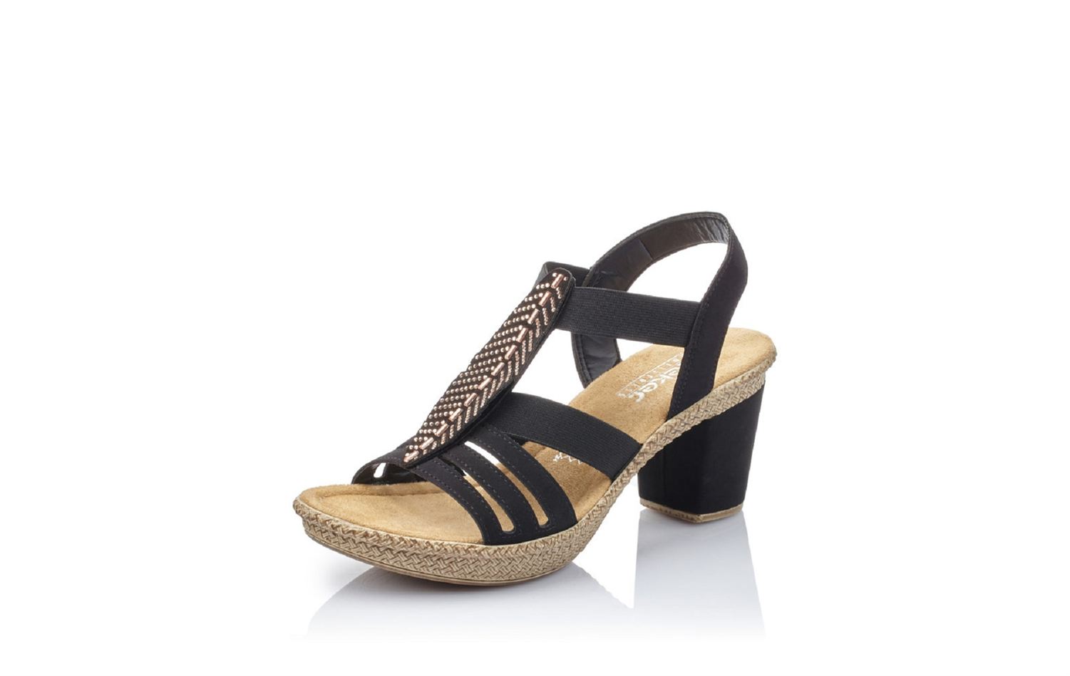 Nu-pieds à talon femme RIEKER 66526-00 en noir.