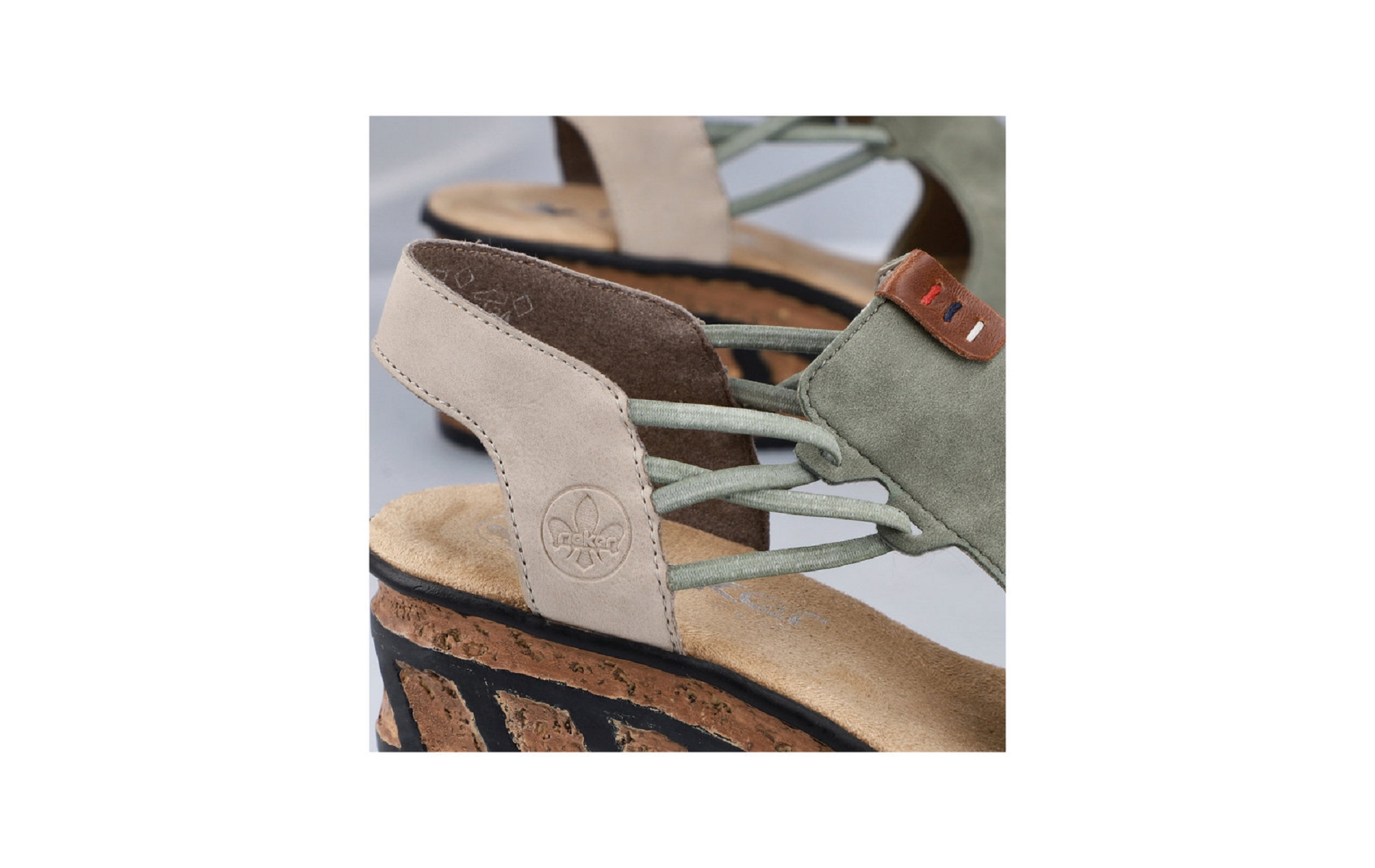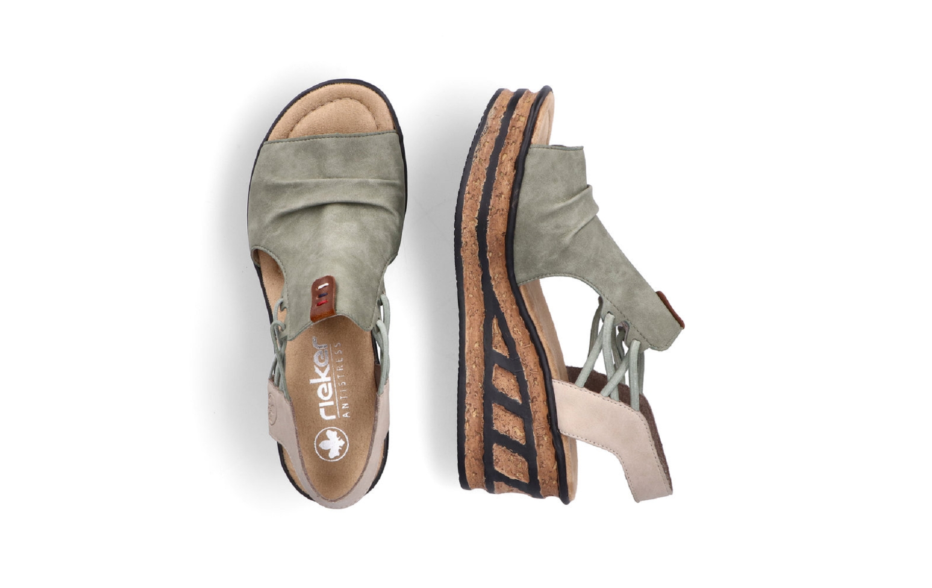 Nu-pieds femme RIEKER 68175 52vert et beige.