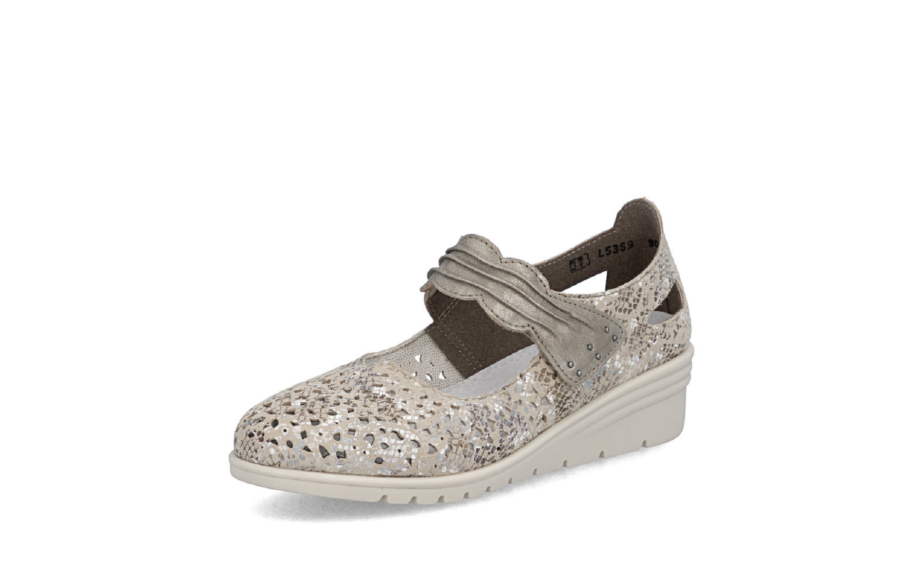 Sandale femme RIEKER L5359 90en cuir métallique.