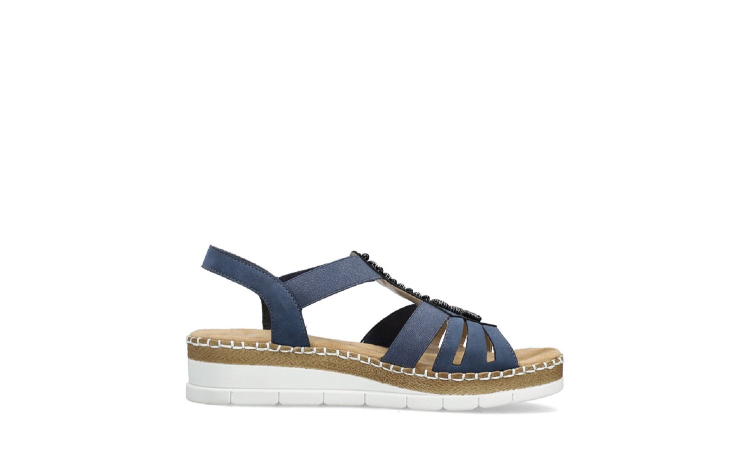 Cette sandale à découvrir sur Rieker-webstore.fr est munie d'un talon compensé et d'une semelle duveteuse pour améliorer votre confort.