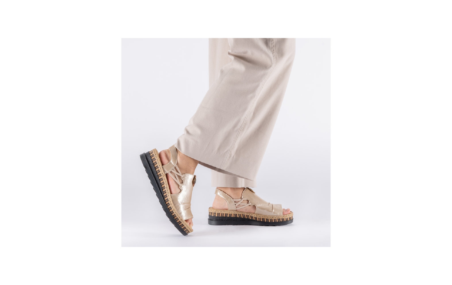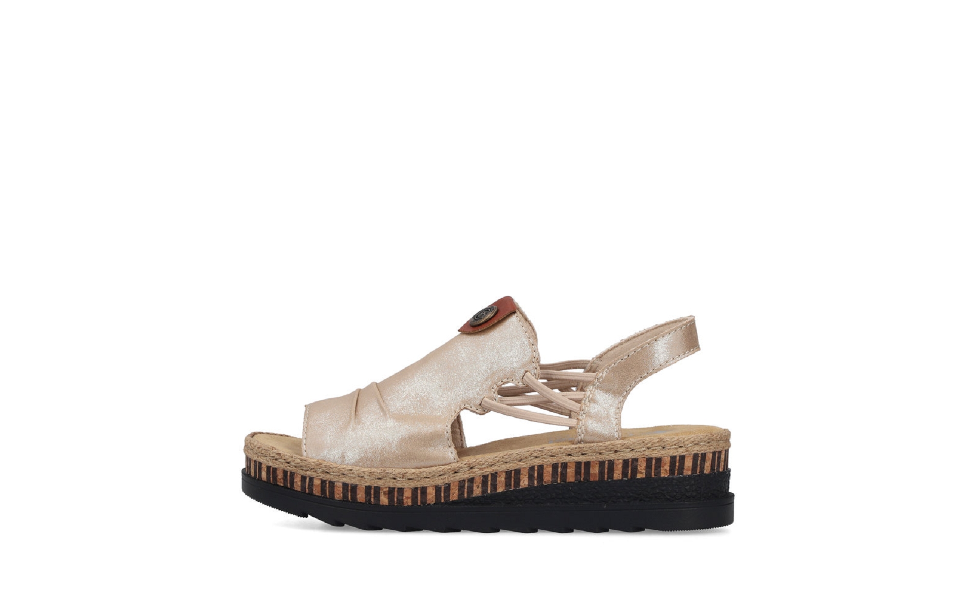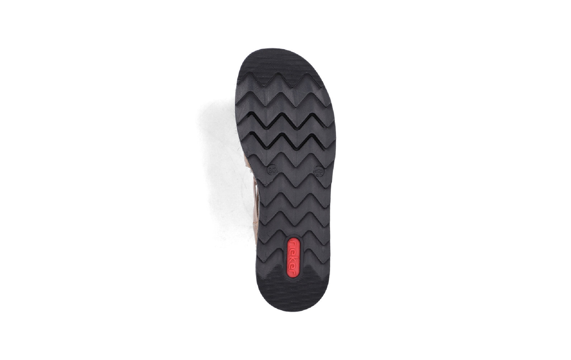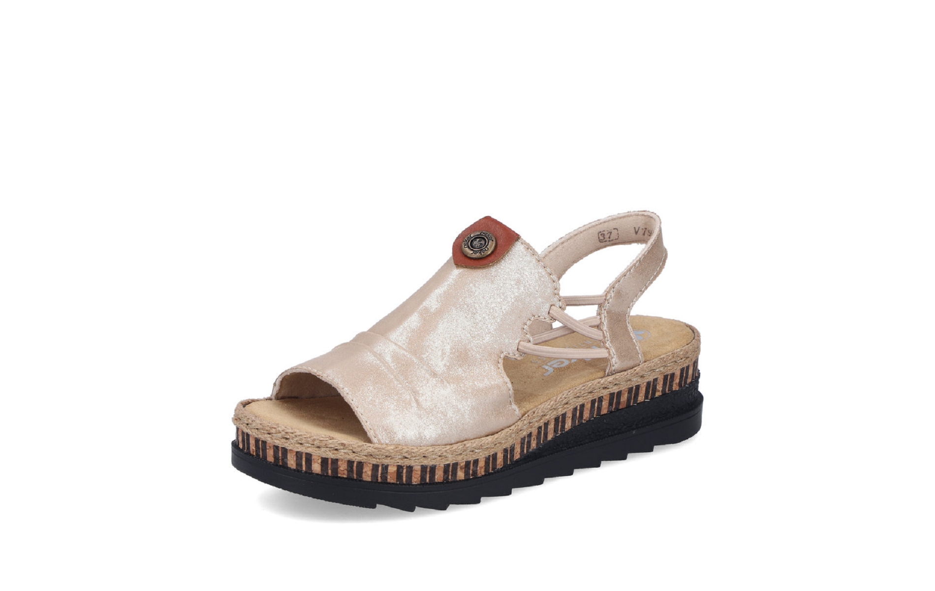 Cette sandale à découvrir sur Rieker-webstore.fr est munie d'un talon compensé et d'une semelle duveteuse pour améliorer votre confort.