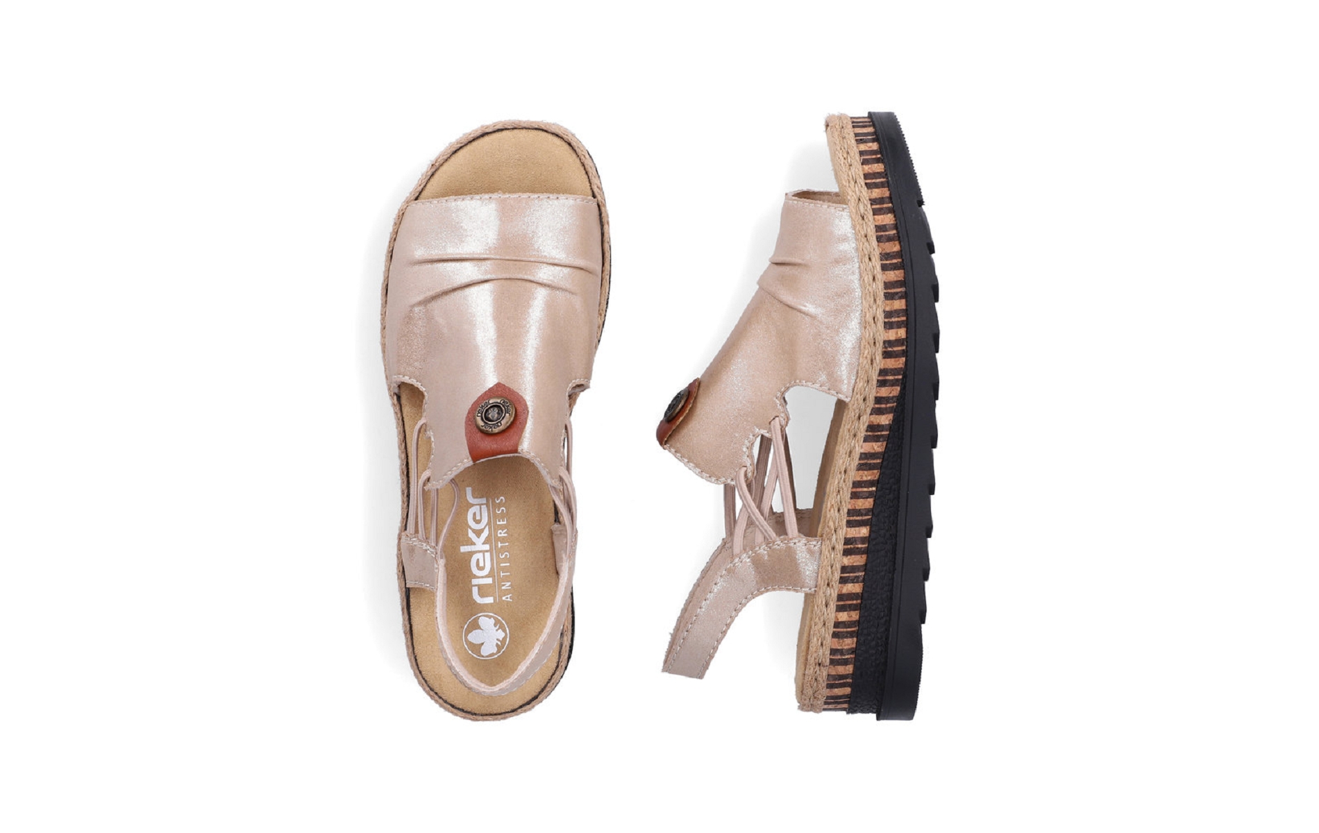 Nu-pieds femme RIEKER V7972 60textile beige irisé.