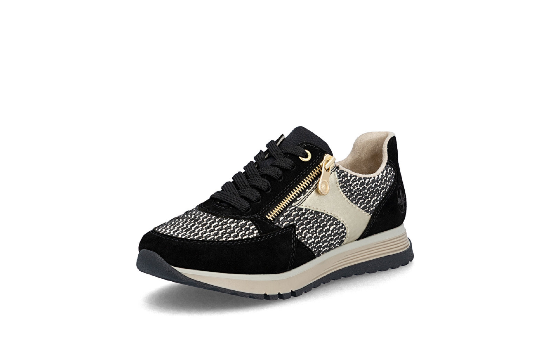 RIEKER 49010 01 est une tennis femme cuir et textile noir.