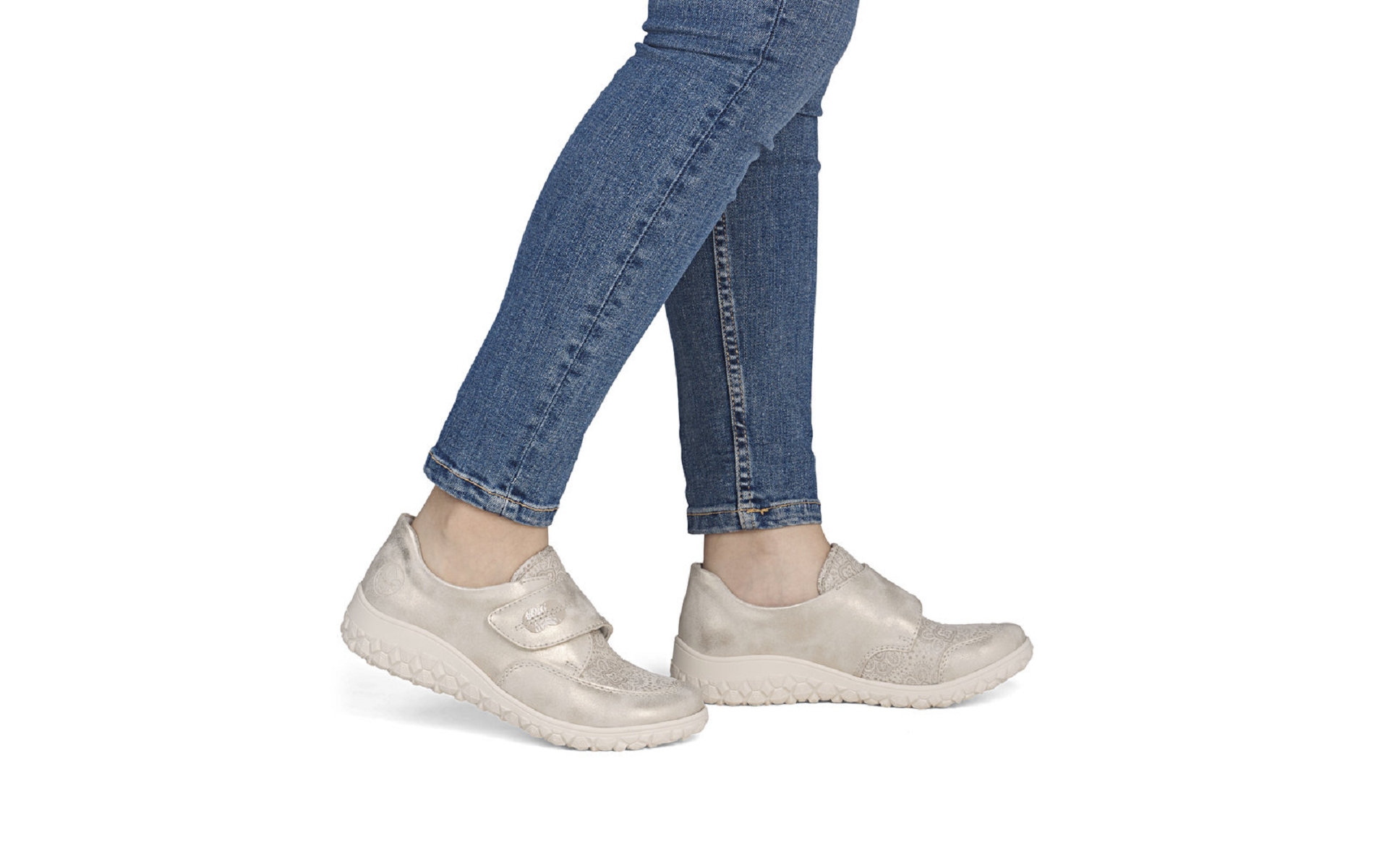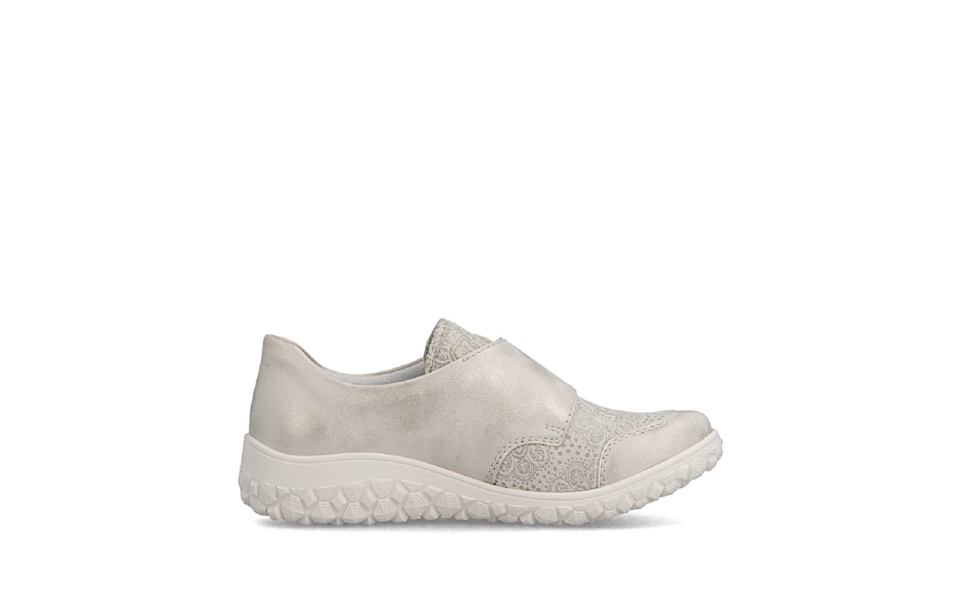 RIEKER 59552 62 est une tennis "extra large" femme en stretch beige irisé.