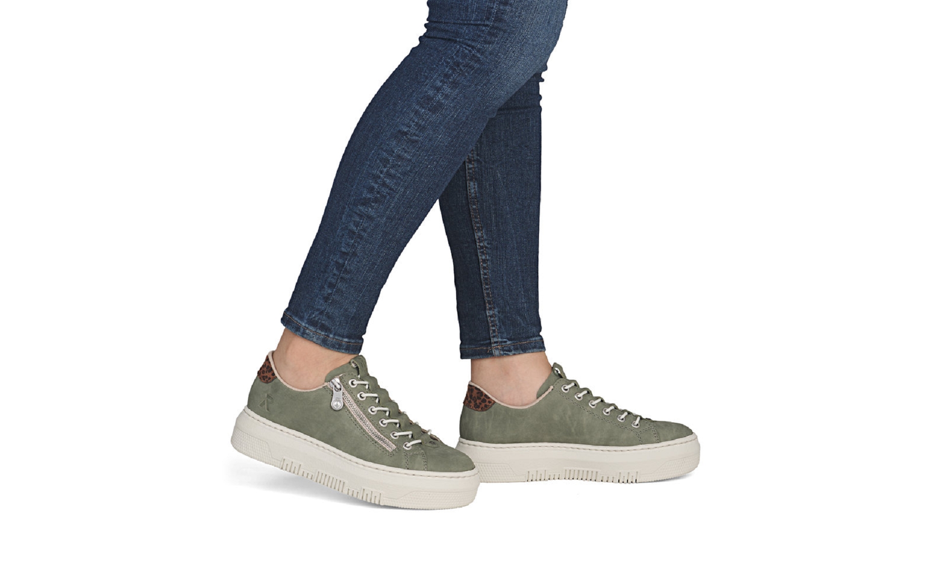 Tennis femme Rieker M1952 52 vert et léopard.
