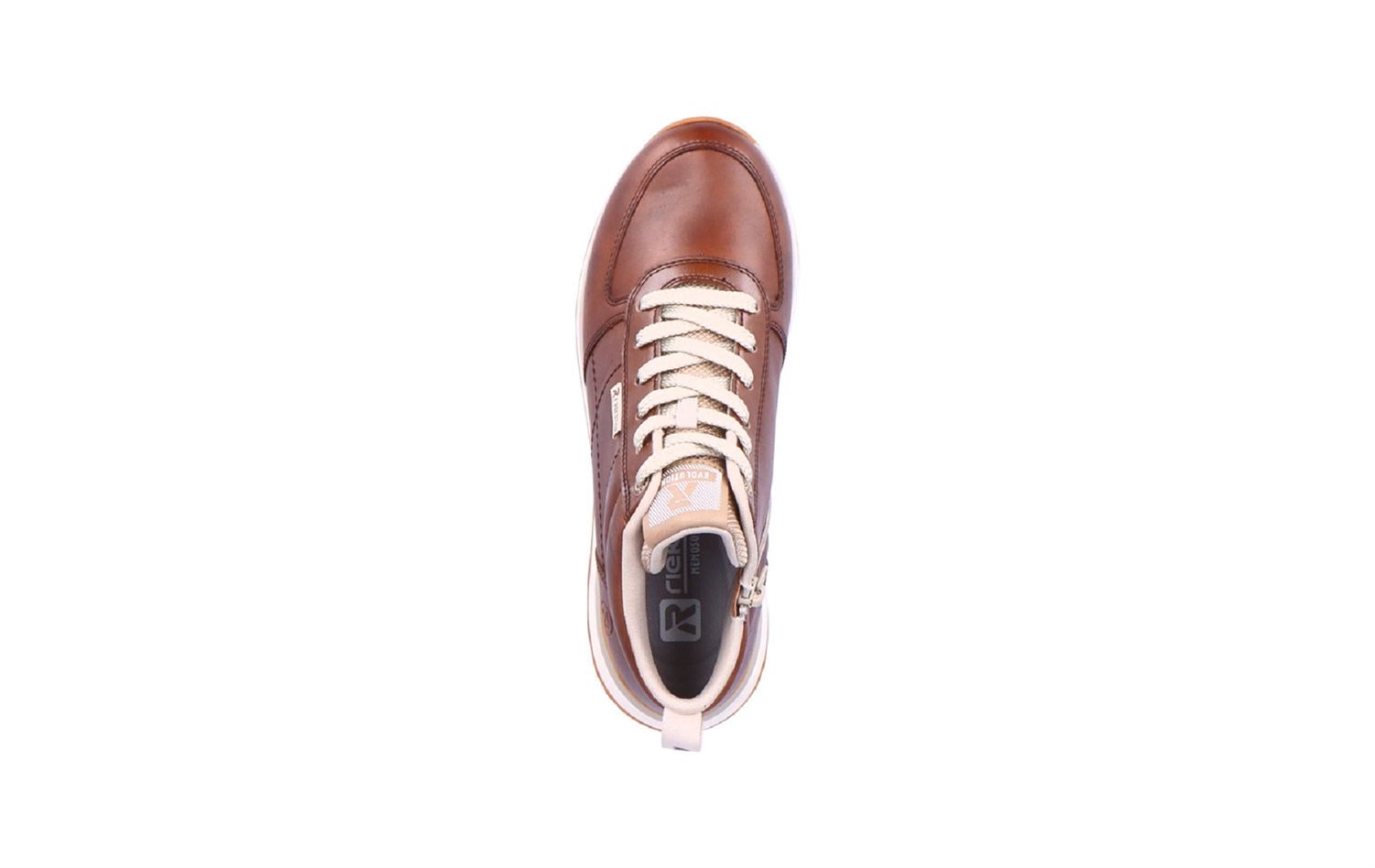 RIEKER R-Evolution 42570 22 est une tennis femme en cuir et textile marron.