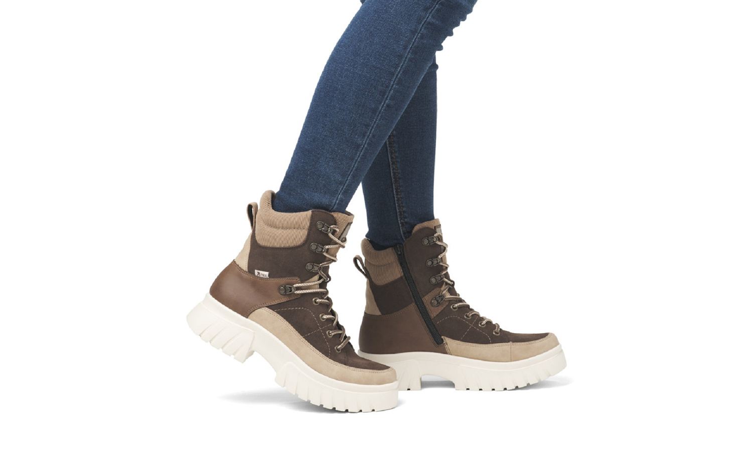 RIEKER R-Evolution W1817 25 est une bottine femme en cuir marron.