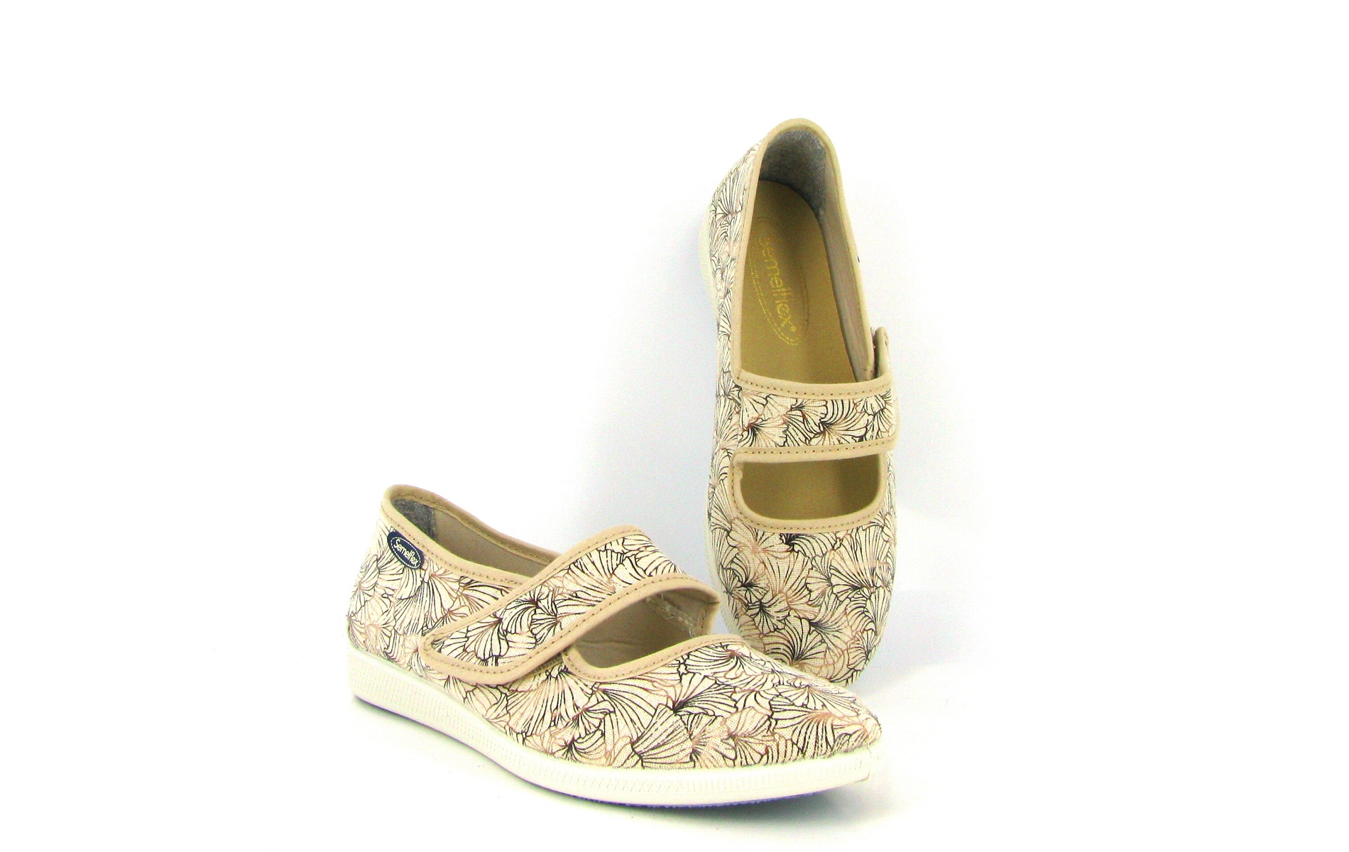 Chausson femme ouvert en textile Semelflex, à velcros pour un bon maintien