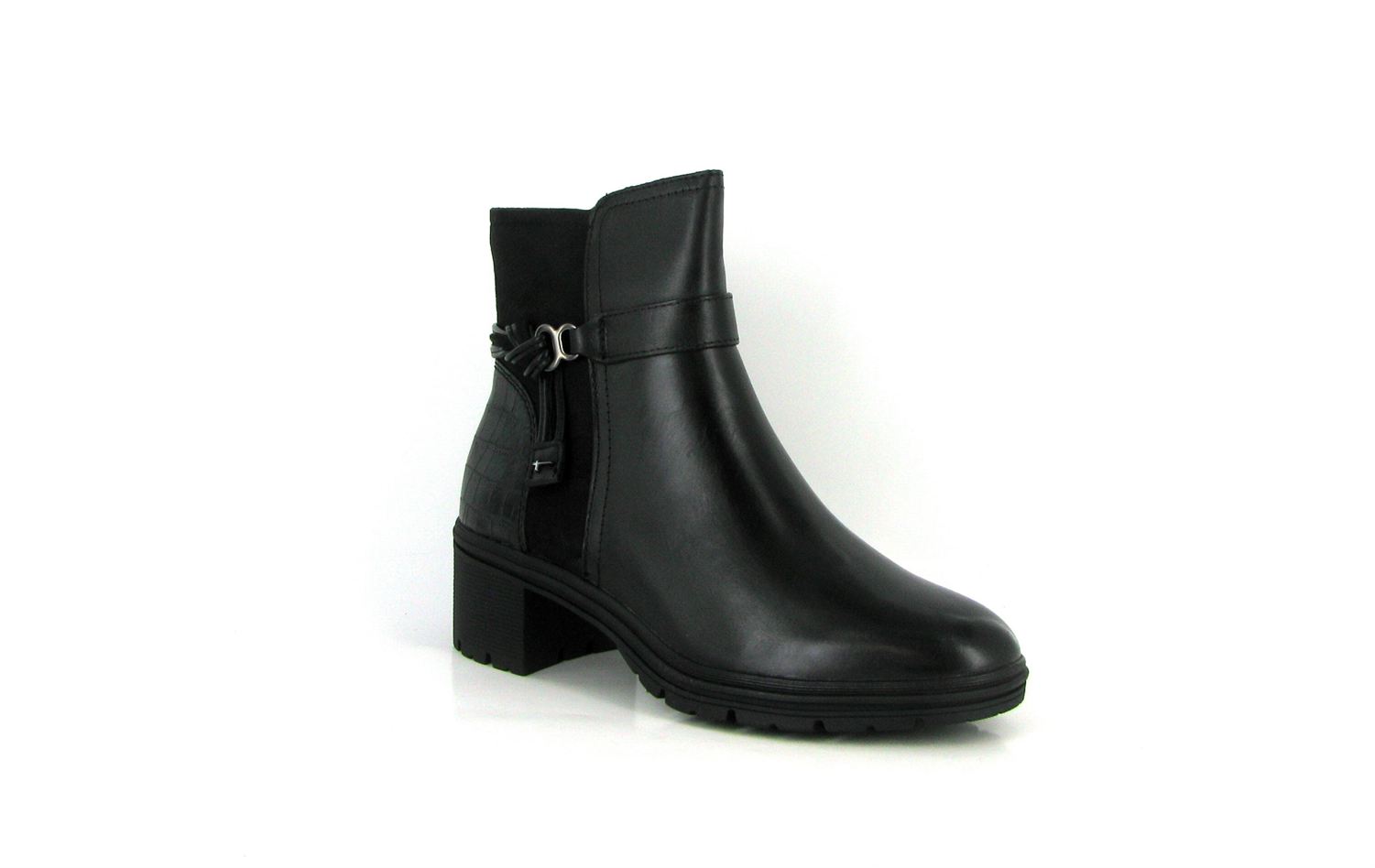 Rayon : FEMMECatégorie : CHAUSSURESFamille : BOTTINES ET BOOTSType de Fermeture : ZIPChaussant : NORMALAutre : TALON 4CMMatière : CuirCouleur : NoirDoublure : TEXTILESemelle : ELASTOMERERéférence : E420001